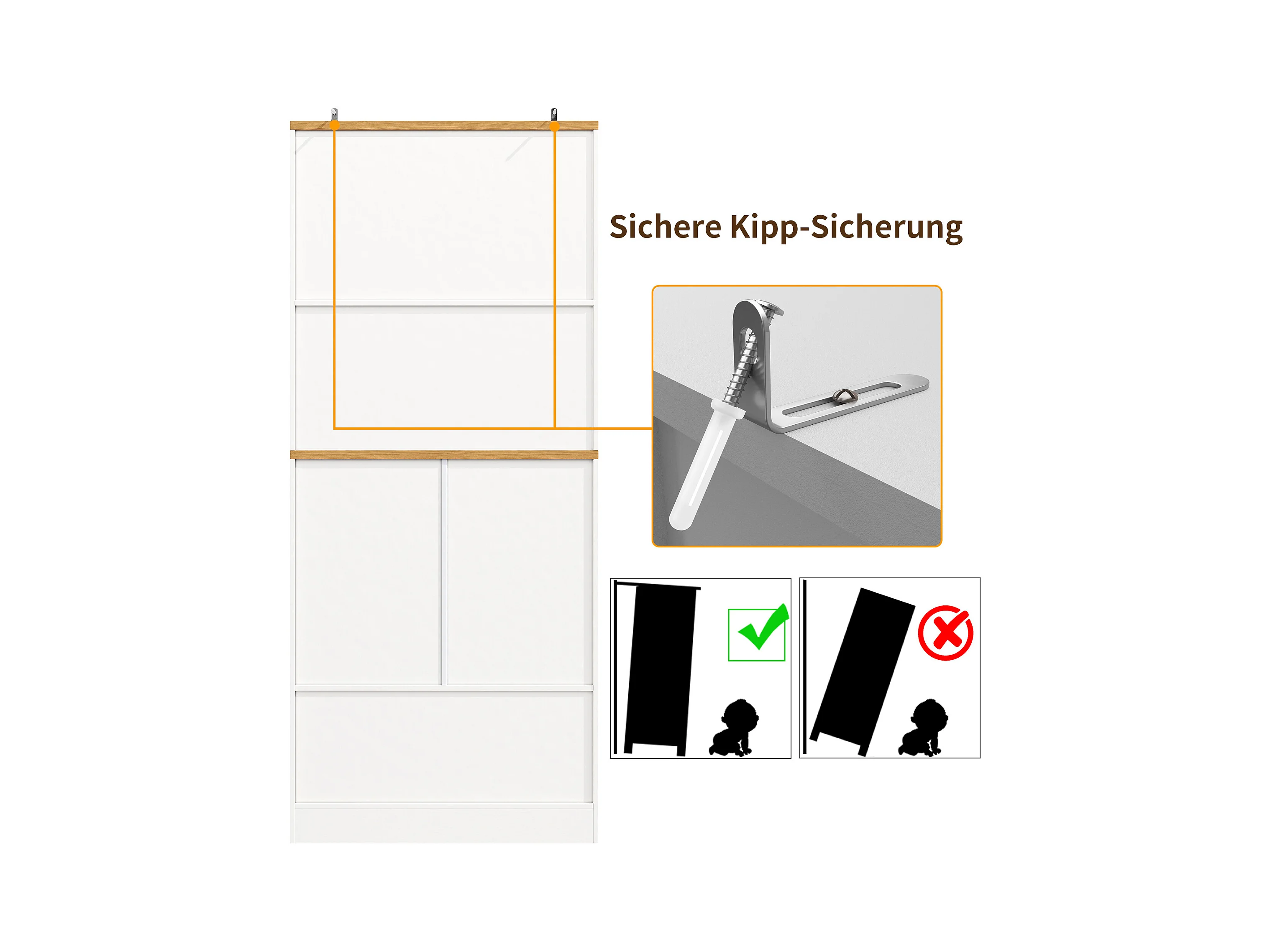 Buffet Dzorte, Buffet du salon, Commode de salon, Garde-manger de cuisine, 72x40 h185 cm, Blanc et Chêne clair