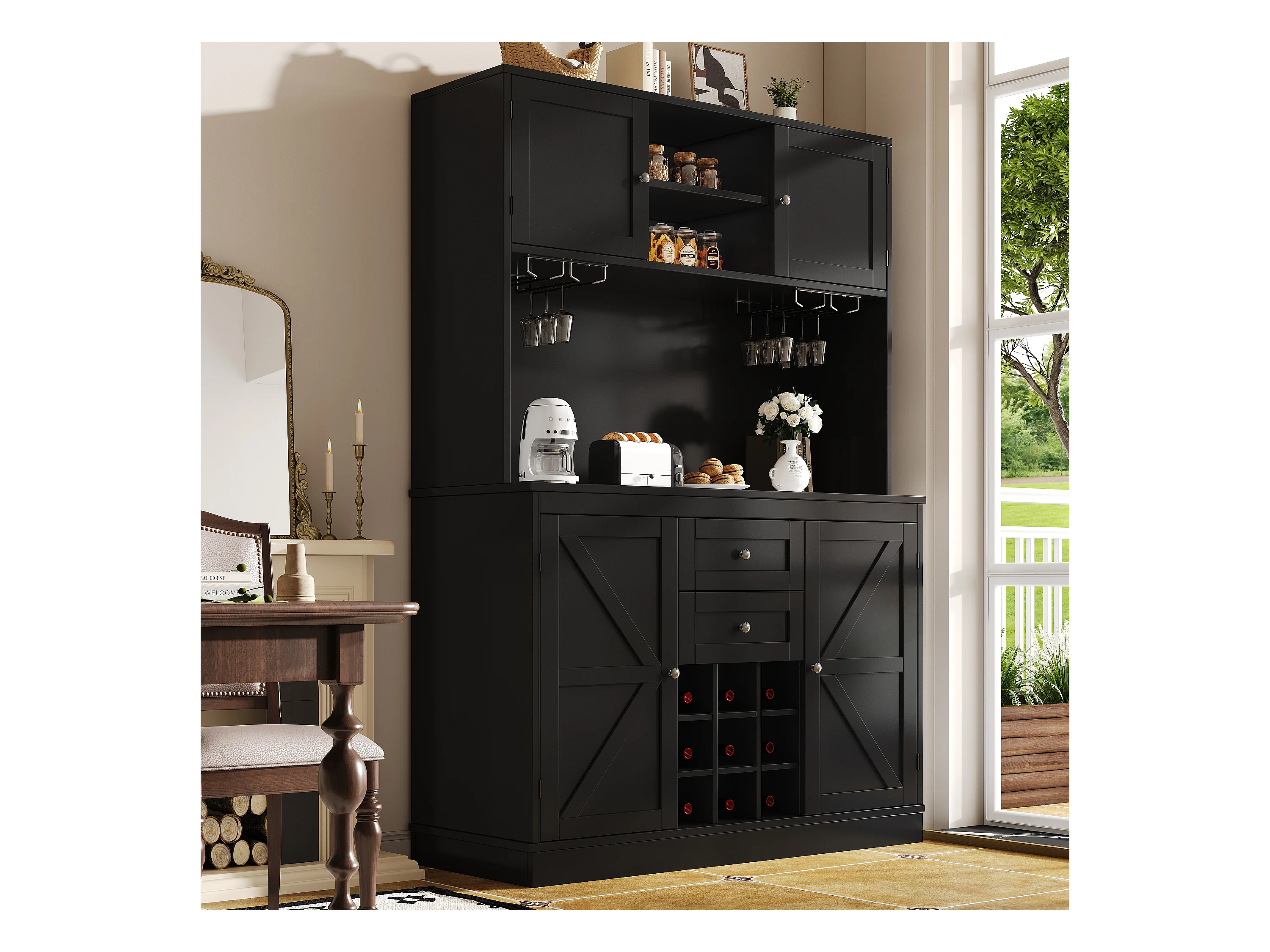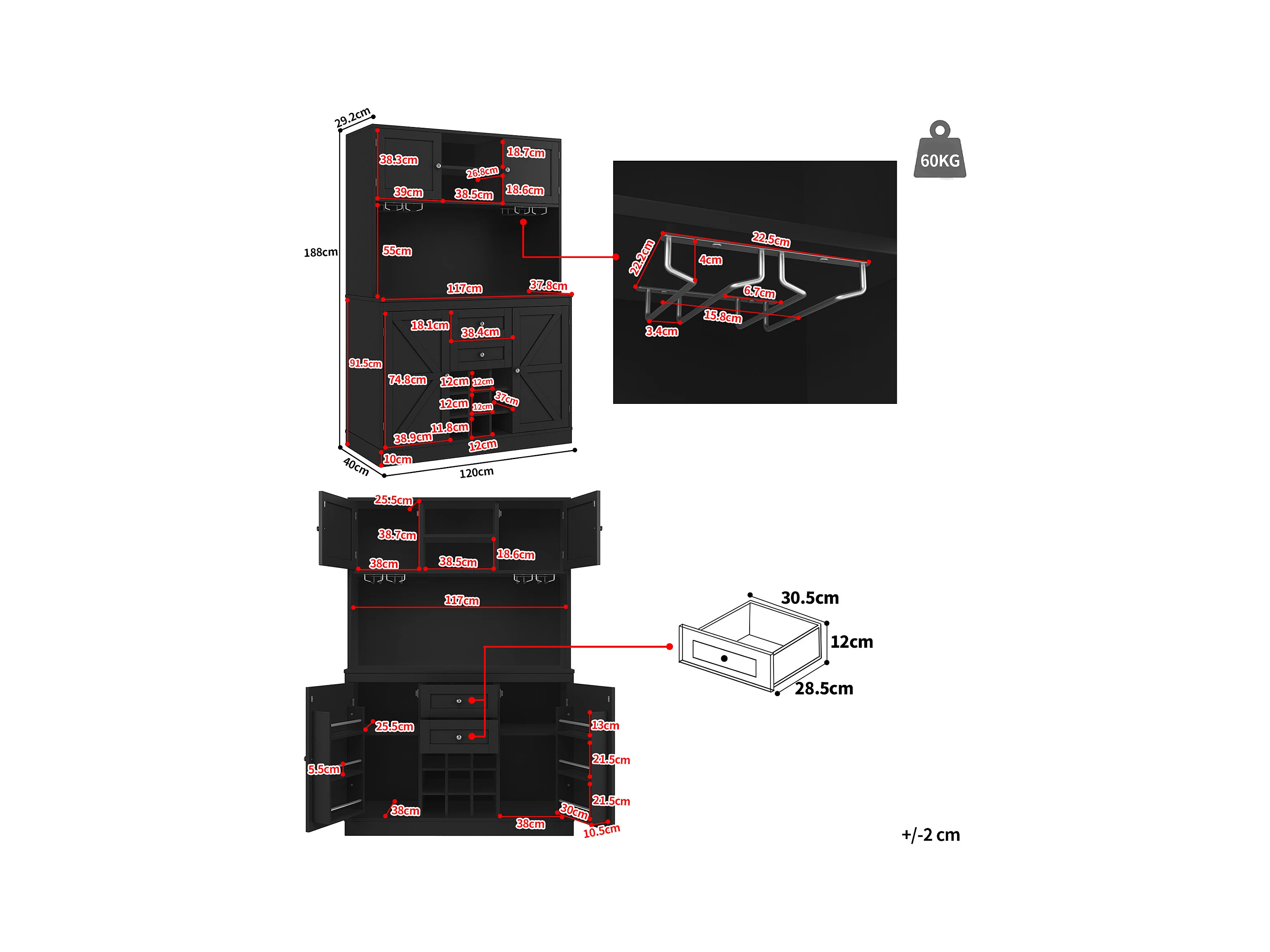 Buffet de cuisine avec étagères réglables et porte-bouteilles, MDF, noir (120x40x188 cm)