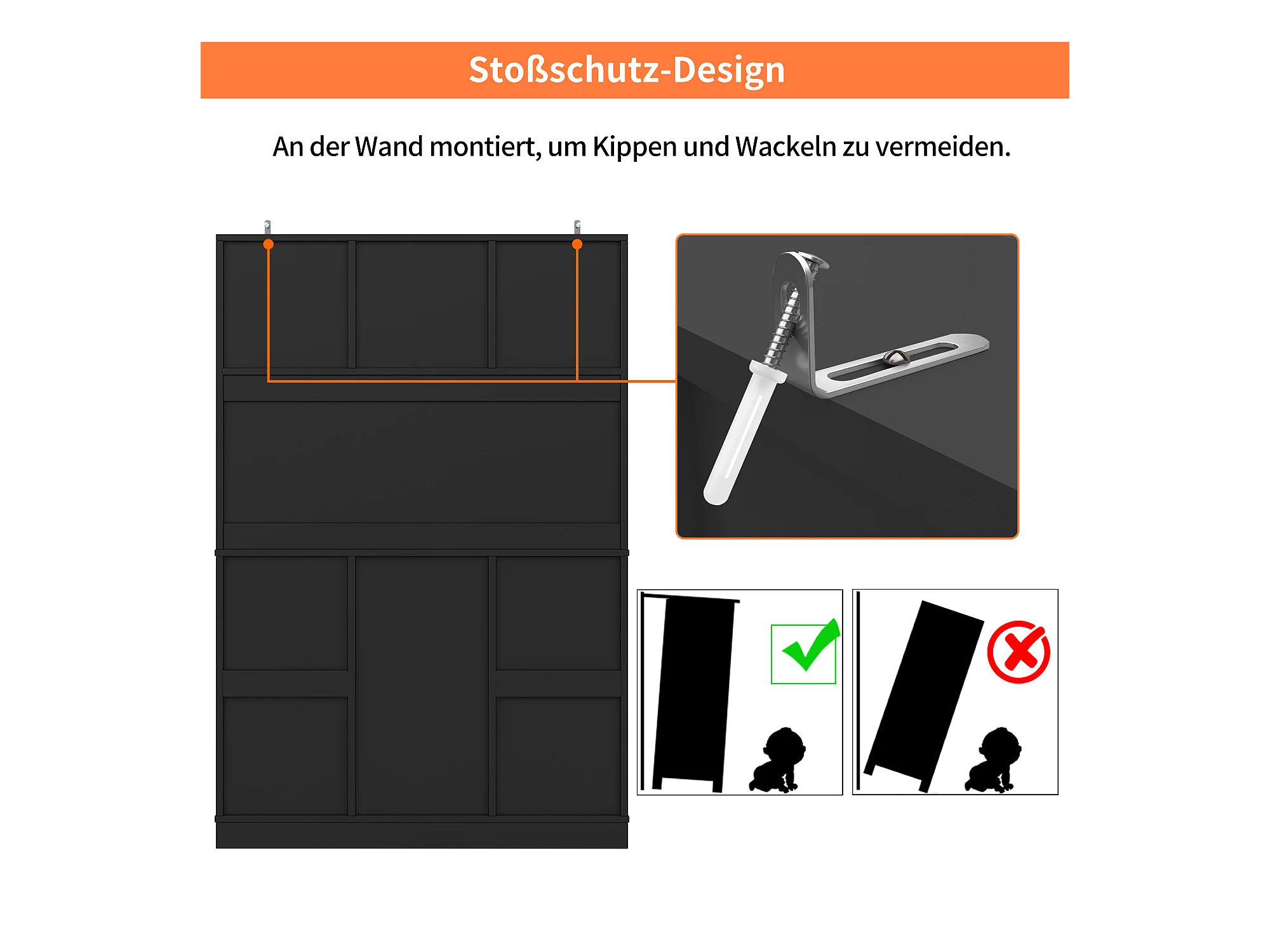 Armoire de rangement 182 cm, avec 4 portes et 1 tiroir, étagère réglable, MDF, noir (80x40x182 cm)