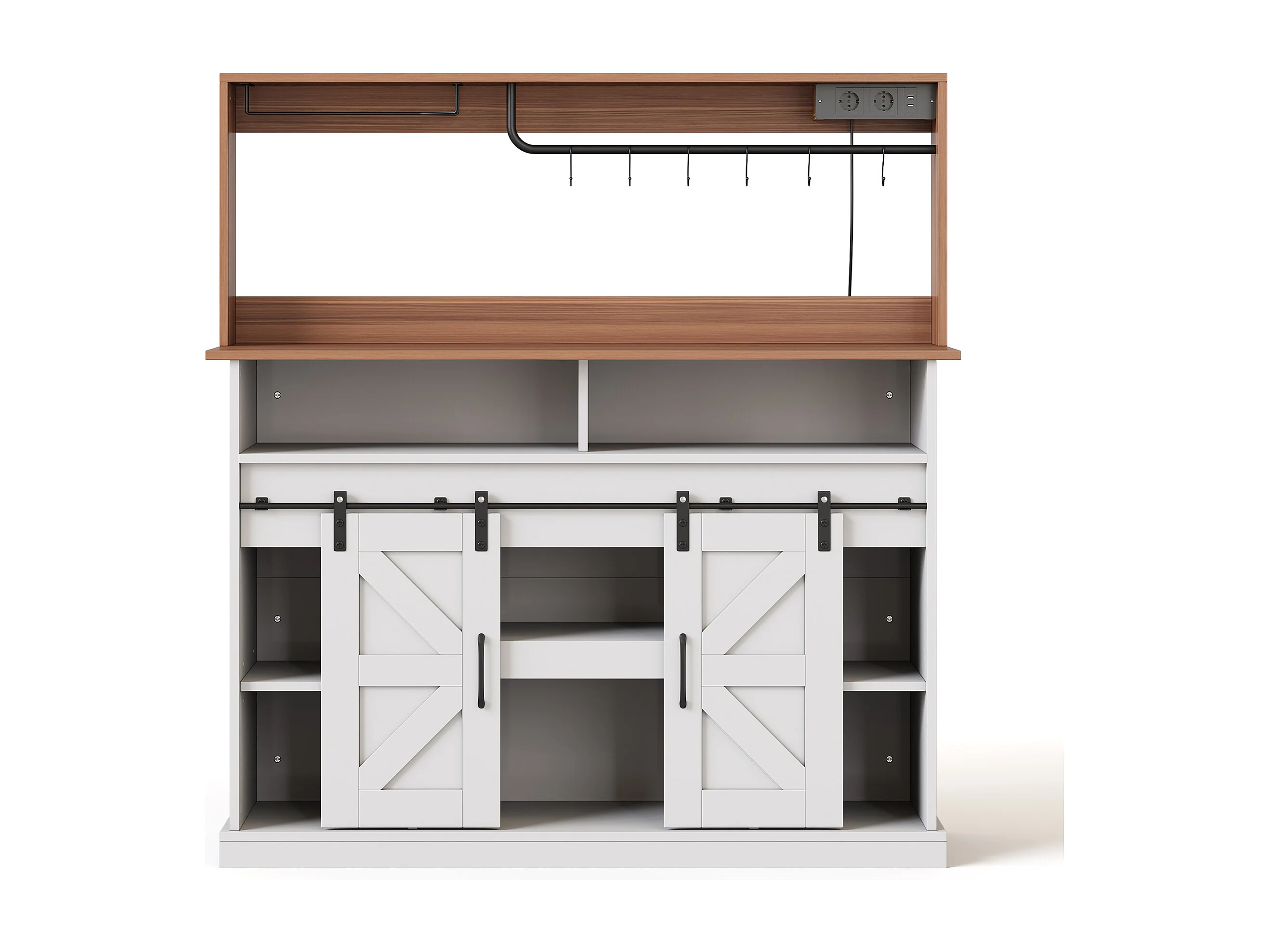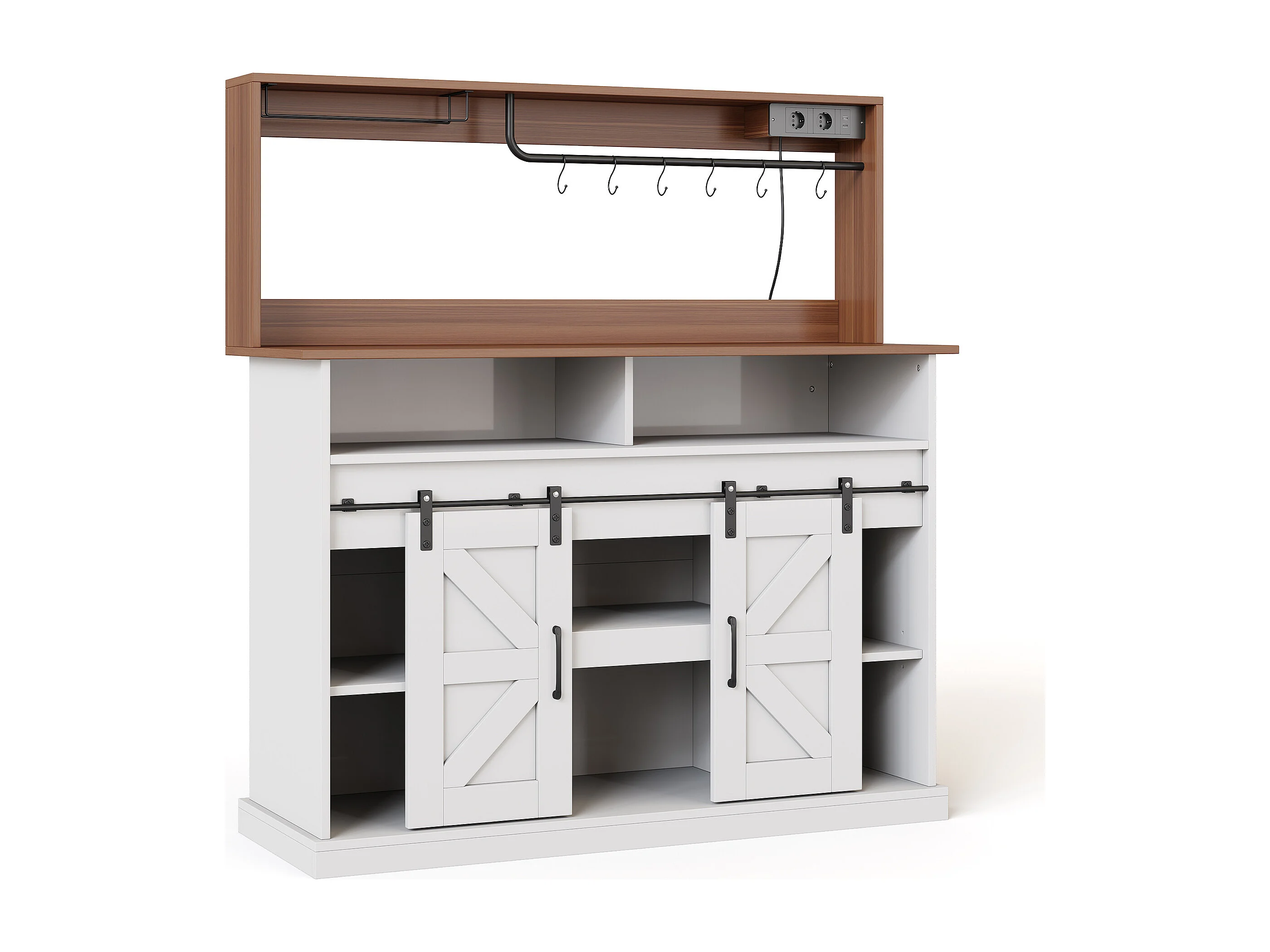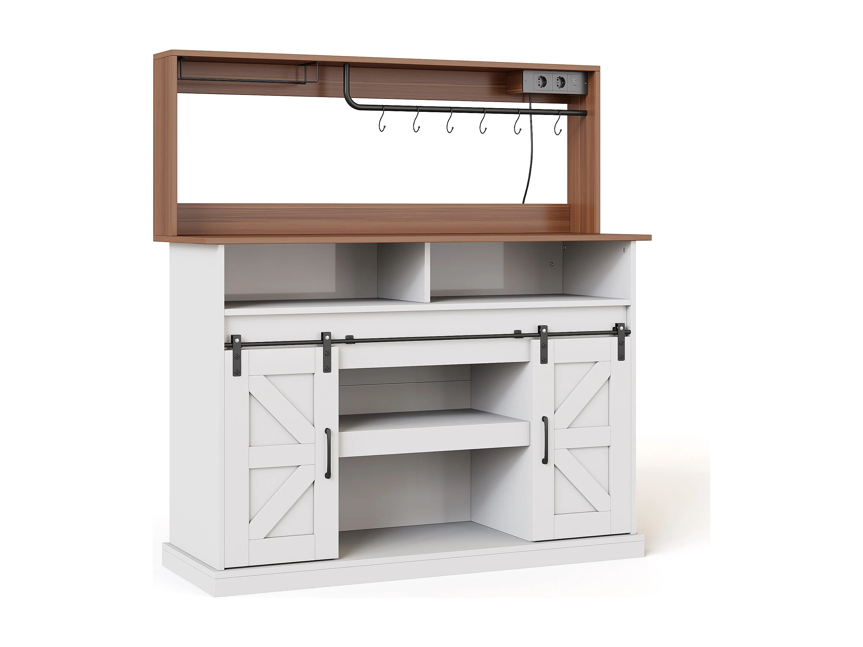 Buffet de cuisine avec portes coulissantes et prises - Couleur blanc et bois