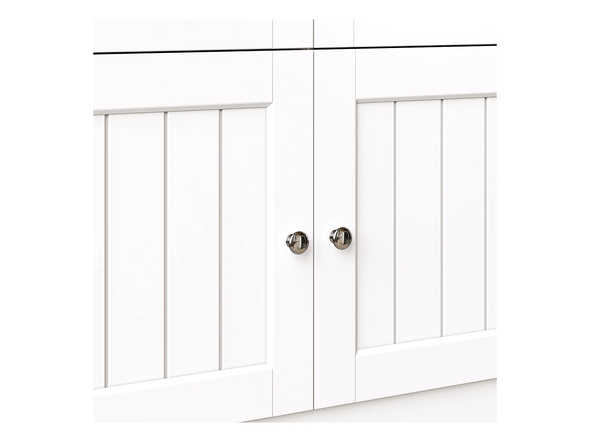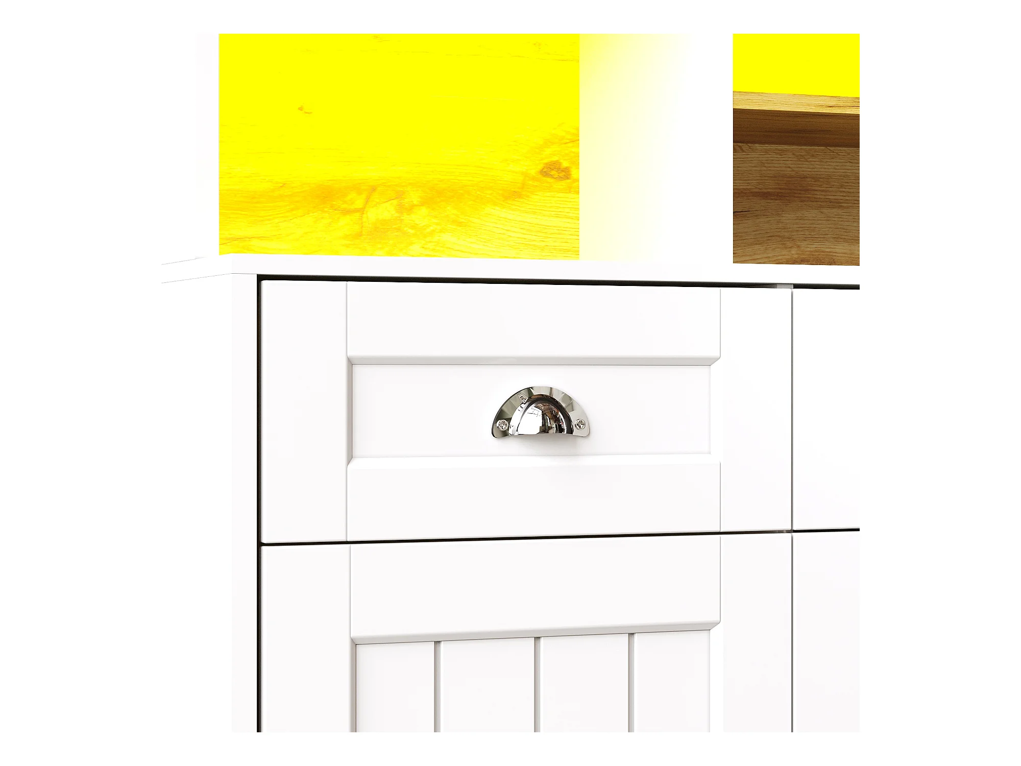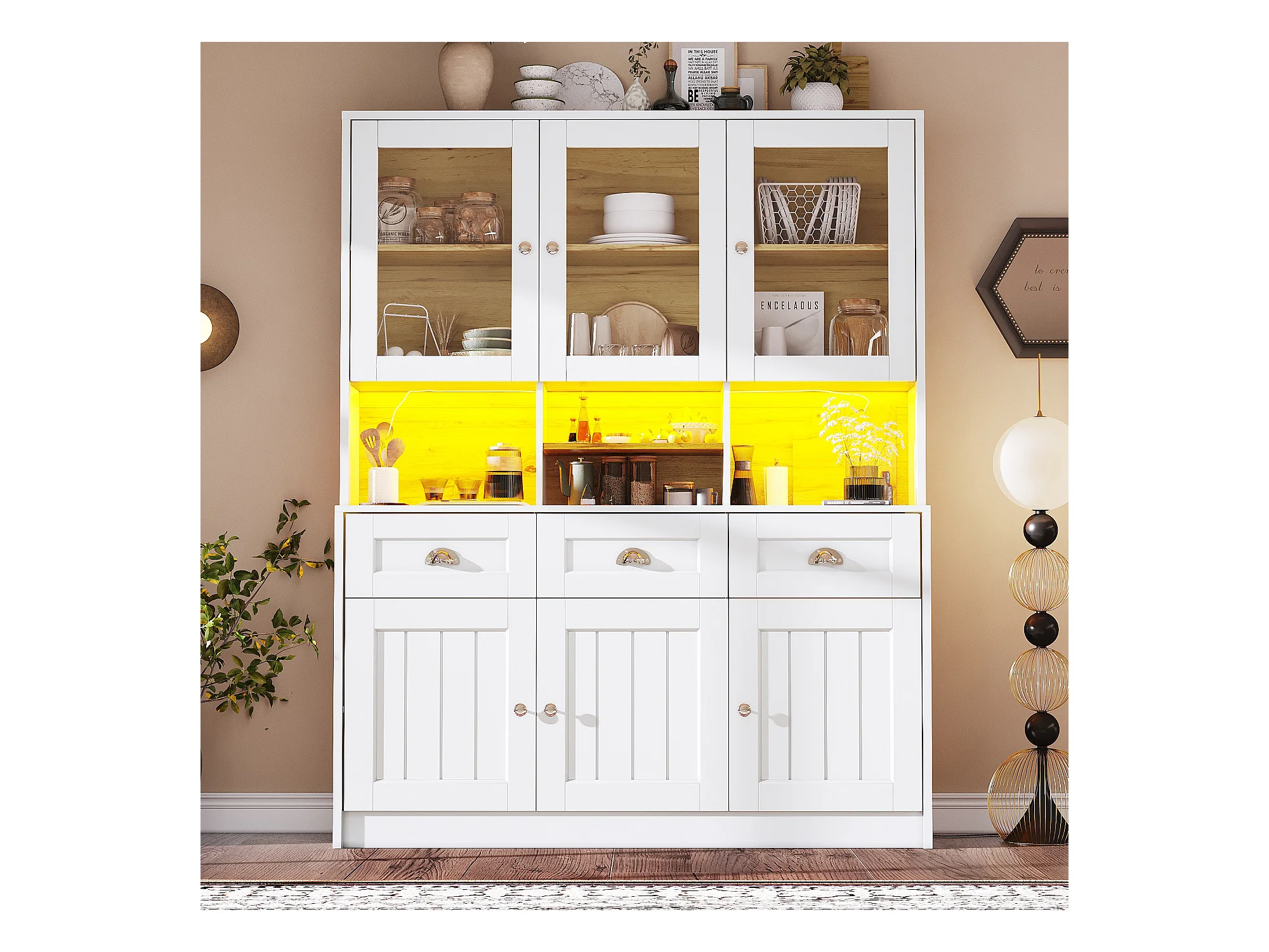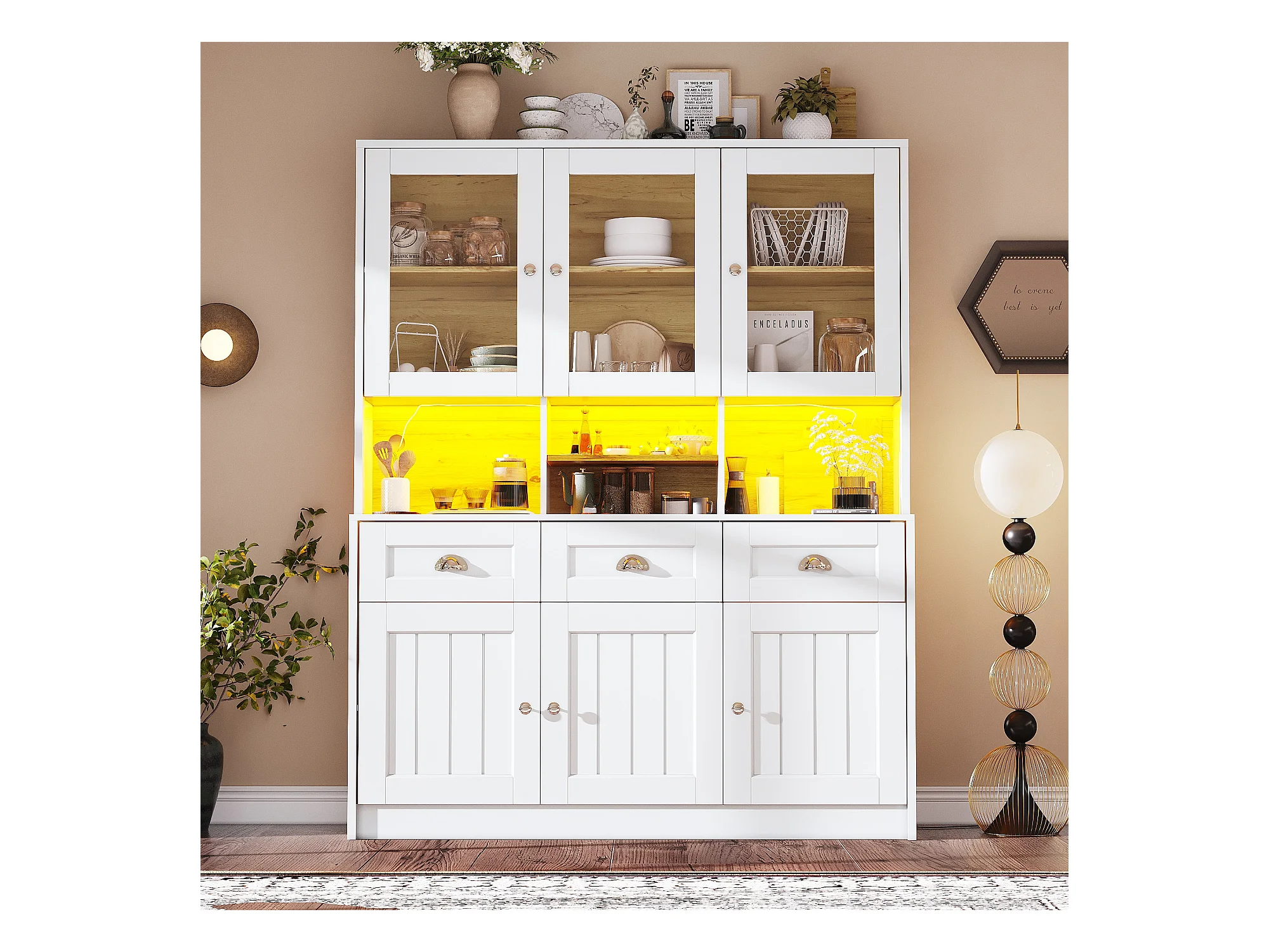 Buffet de cuisine blanc avec 3 portes, 3 portes vitrées, 3 tiroirs et lumières LED, MDF