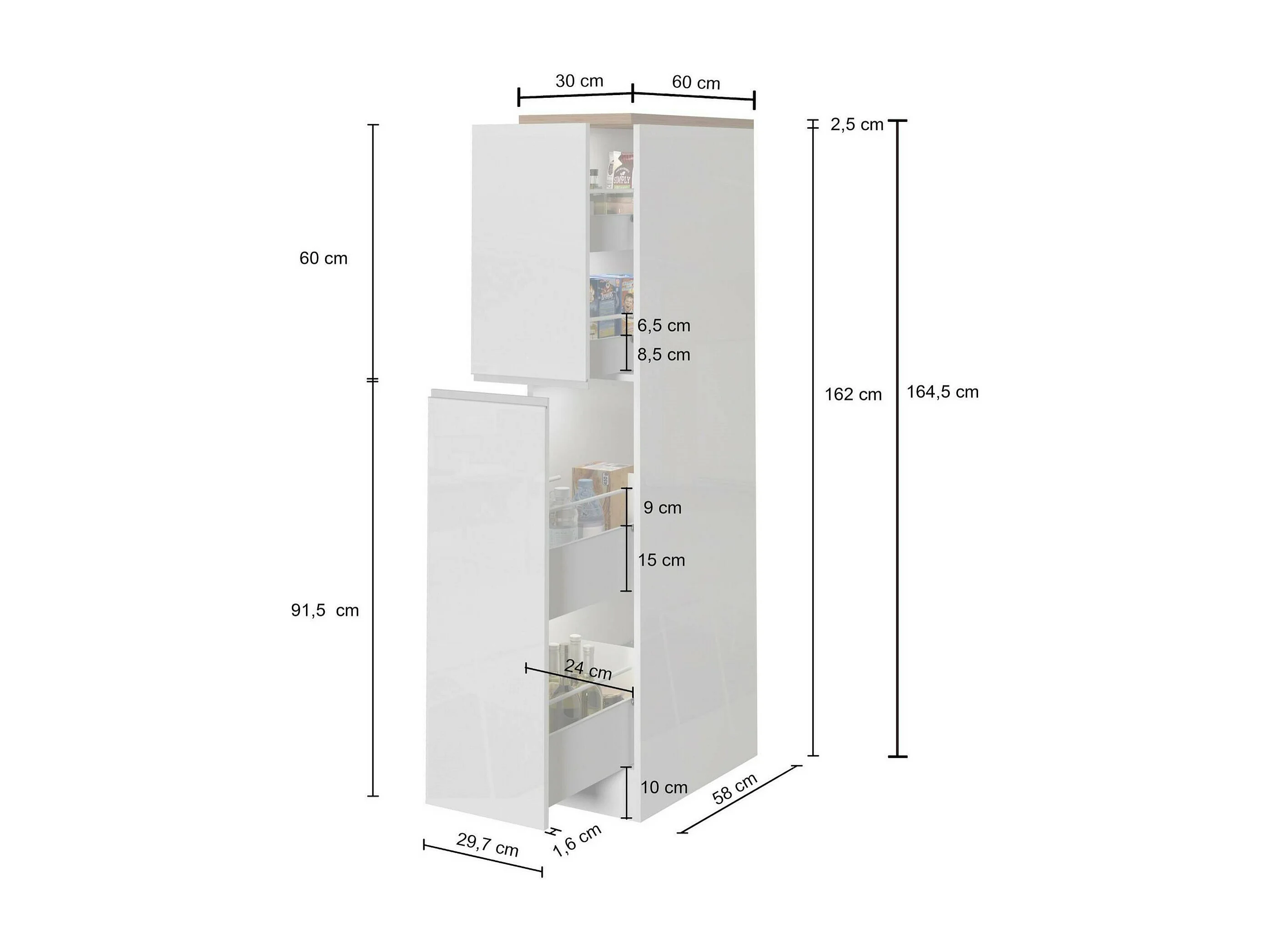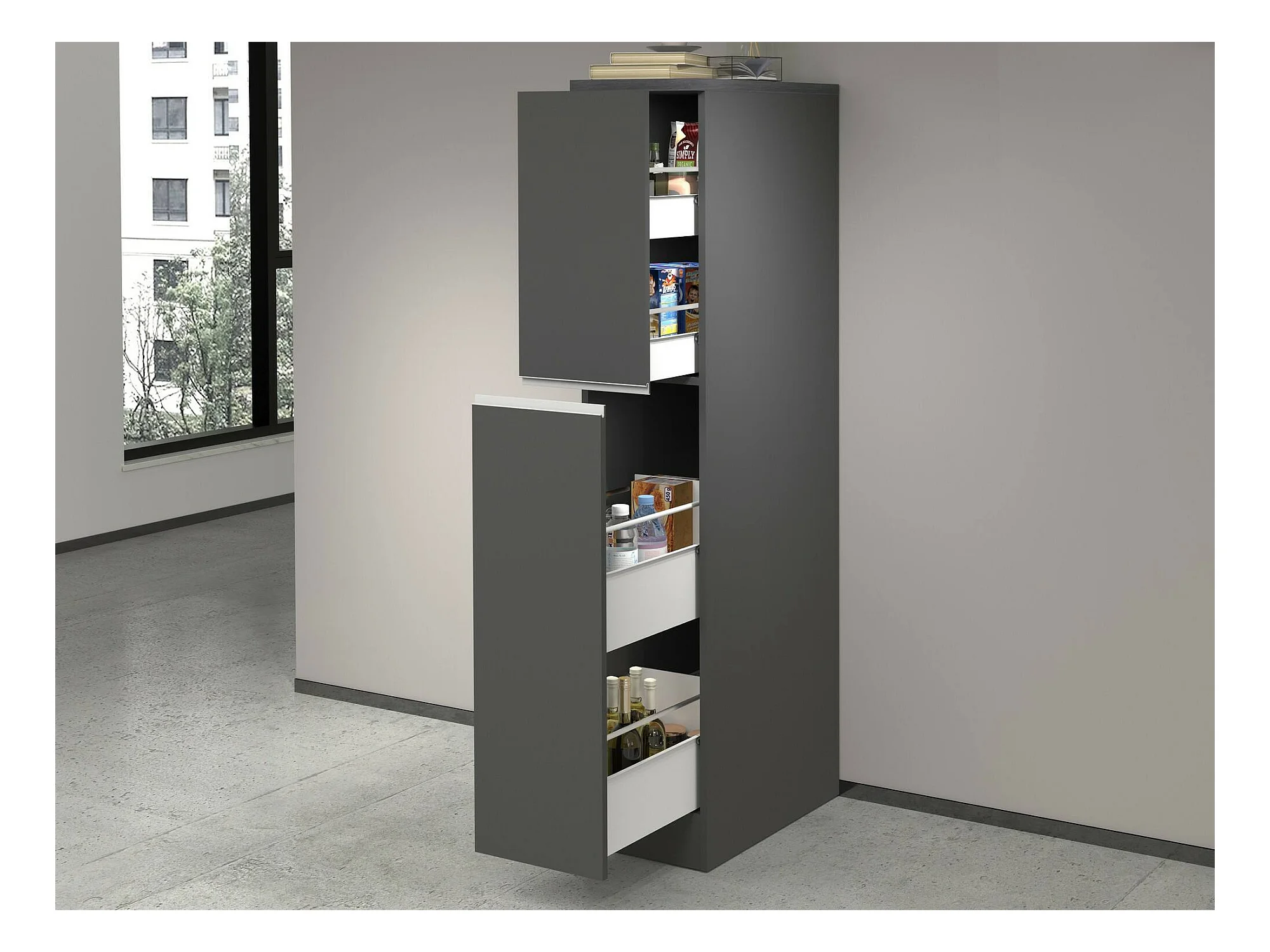 Buffet de Cuisine Dcasiragh Anthracite et Ardoise 30x60x165 cm - Meuble de Rangement Polyvalent, 100% Made in Italy