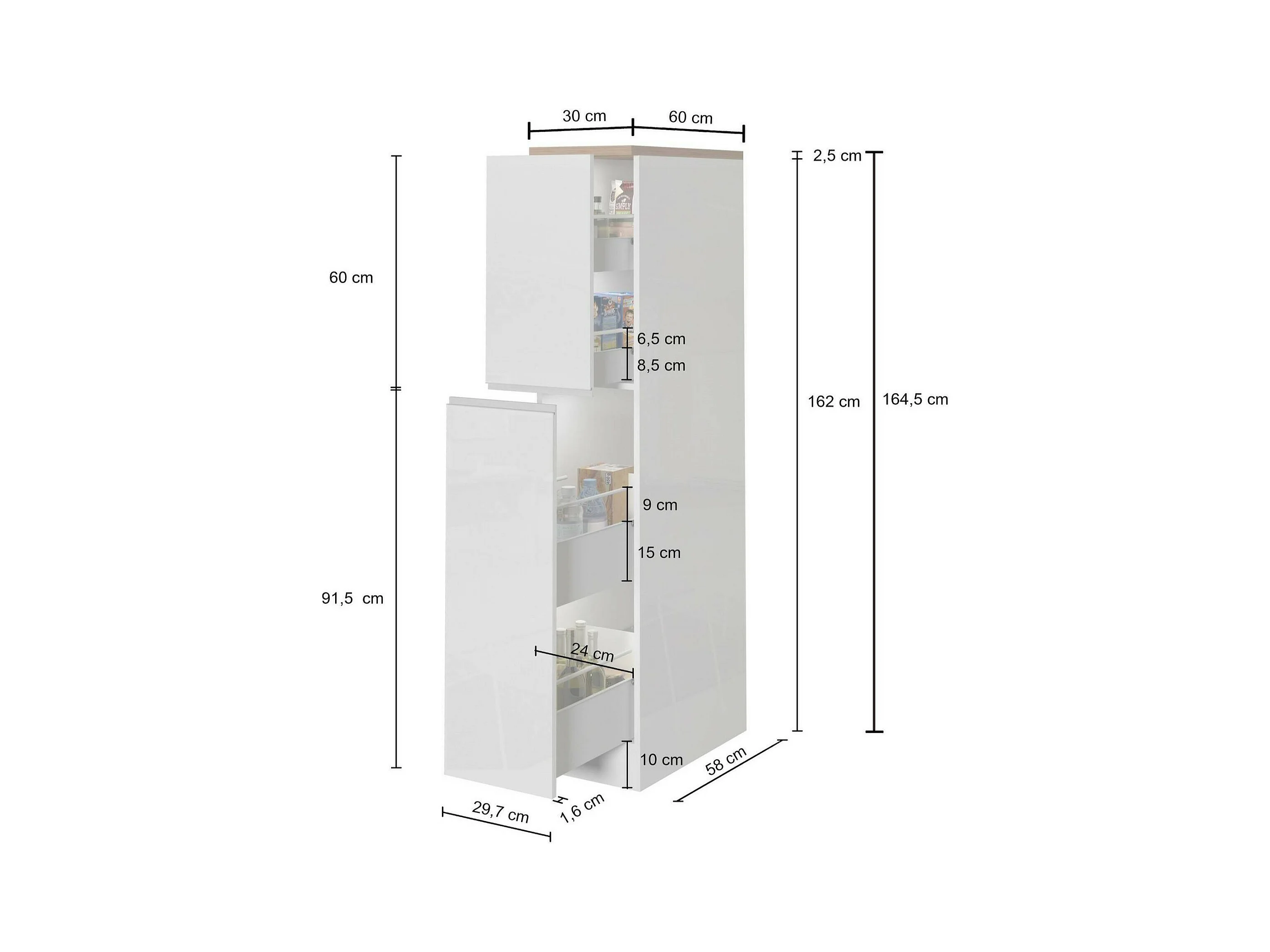 Küchen-Vorratsschrank Dcasasol, Mehrzweckschrank, 2-türiger Kühlschrankschrank, 100 % Italy, 60 x 60 x 165 cm, Anthrazit und Eiche