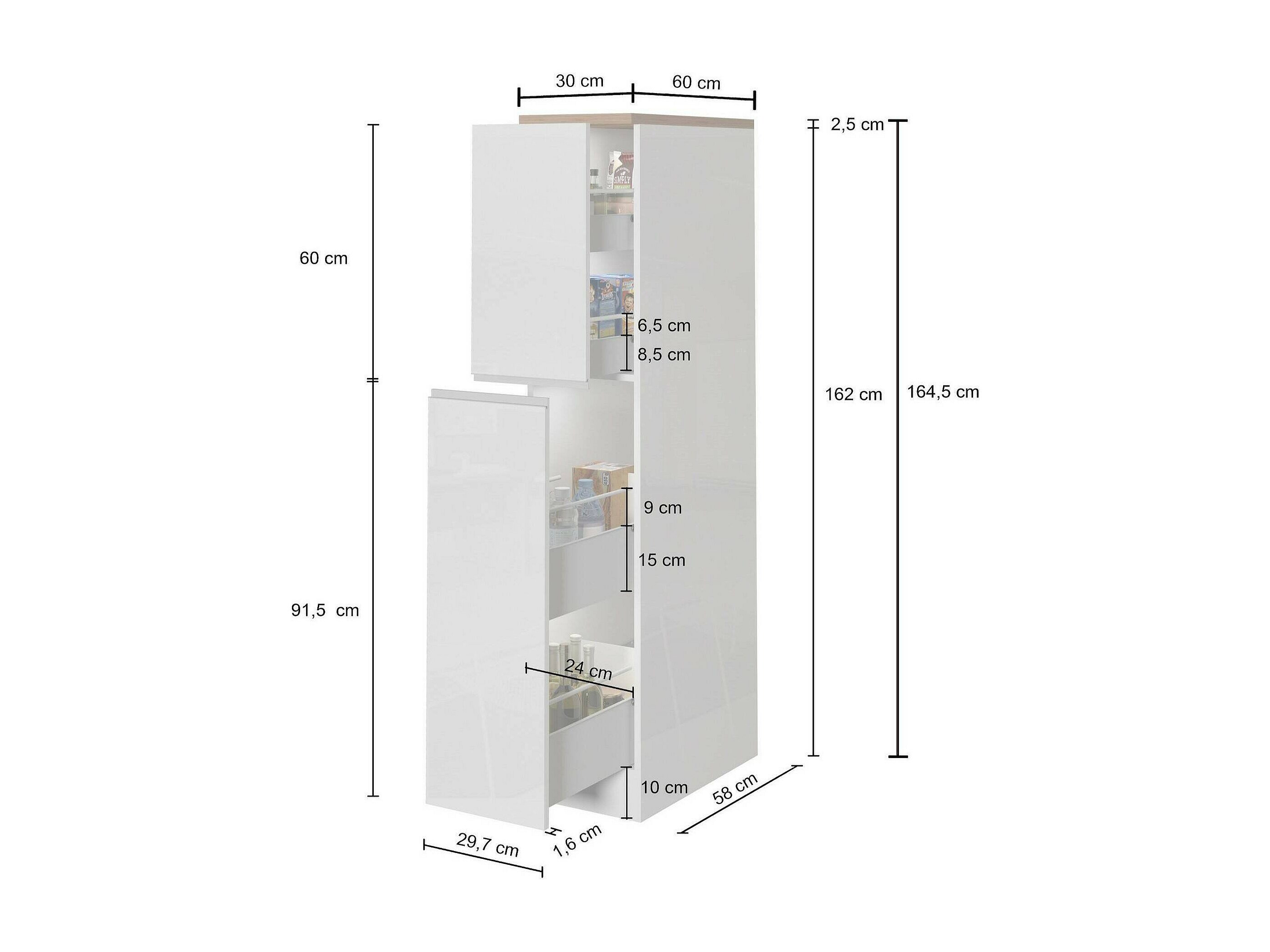 Küchenschrank Dcasiragh, Mehrzweckschrank, Küchenzeile Schrank, Multifunktionales Kühlregal, 100 % Made in Italy, 30 x 60 x 165 cm, Anthrazit und Eiche