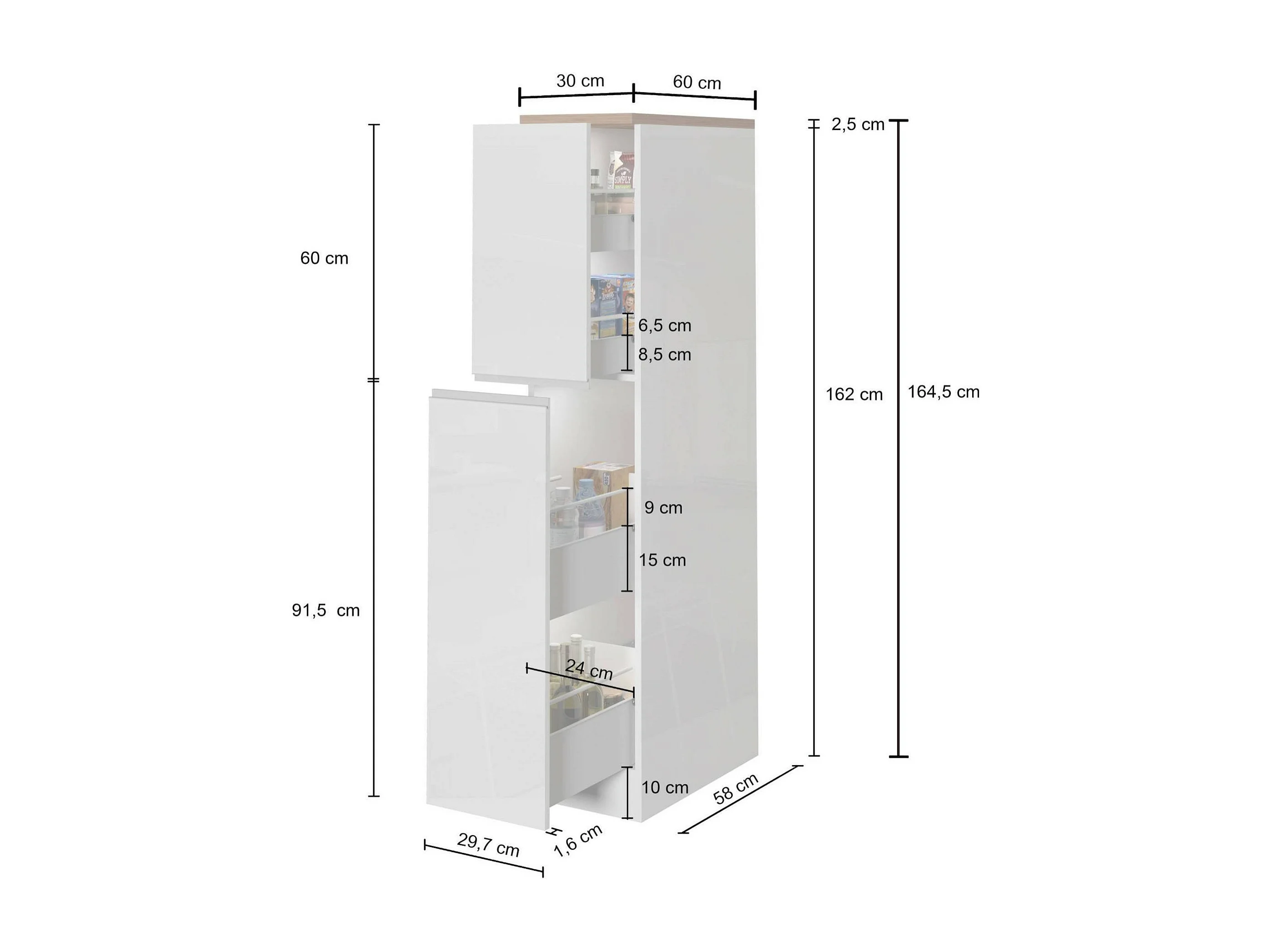 Buffet de Cuisine Dcasiragh, Blanc brillant et chêne
