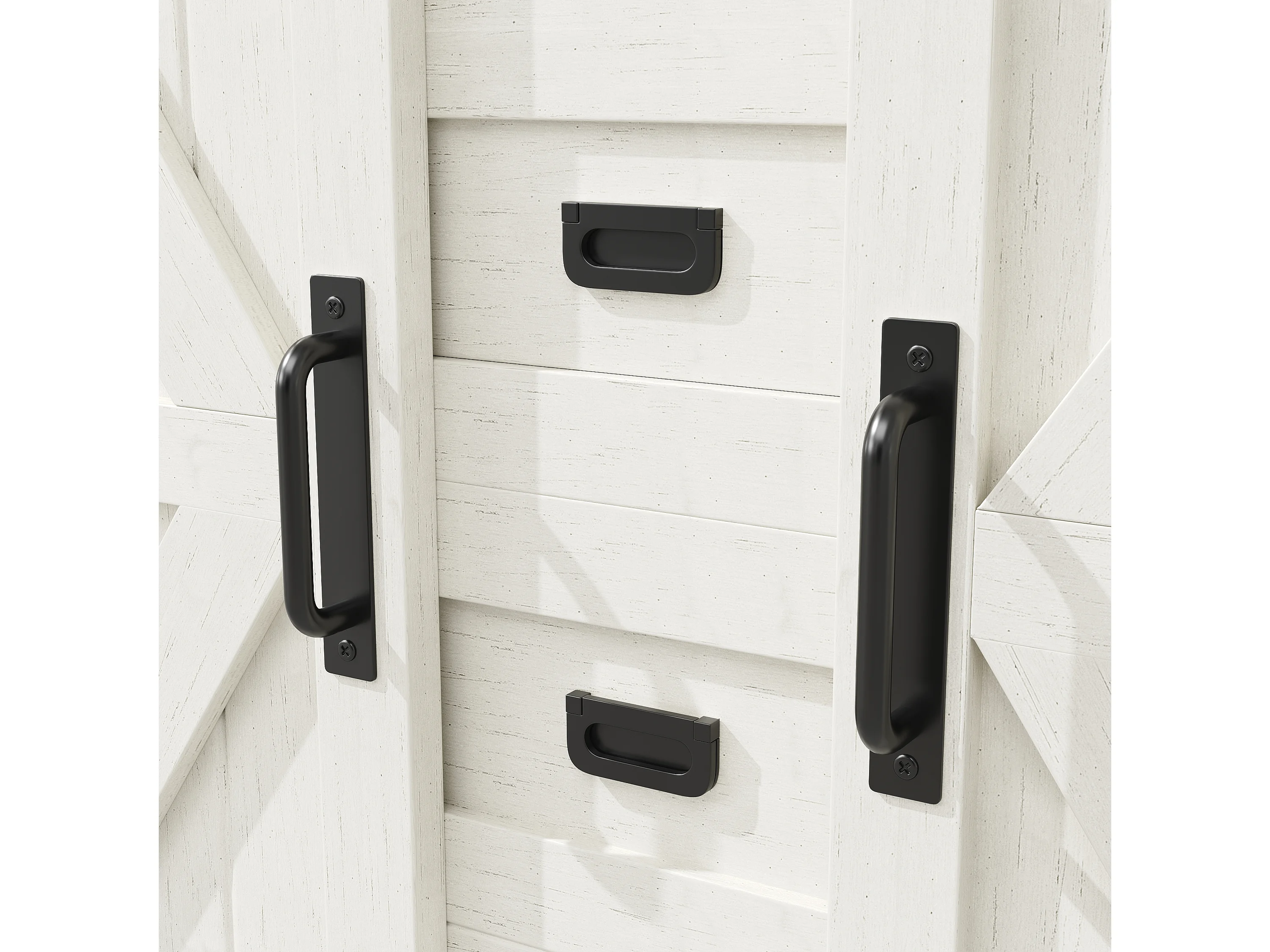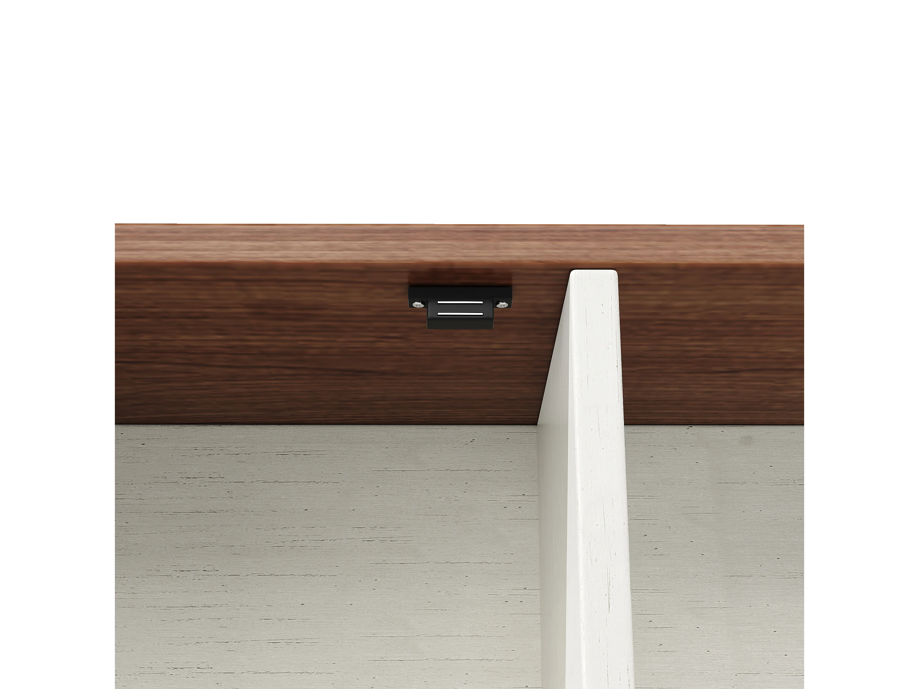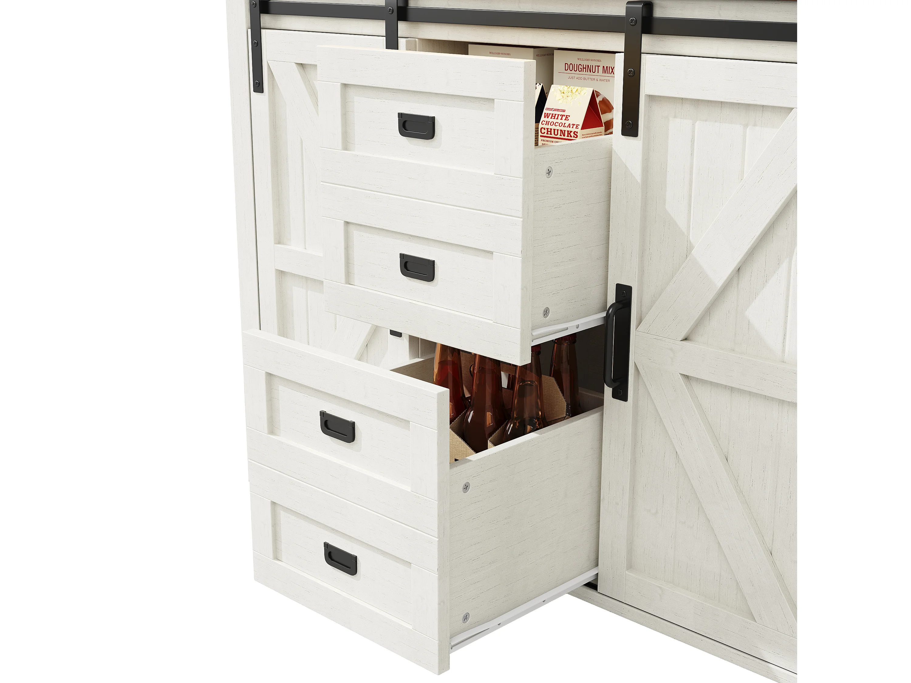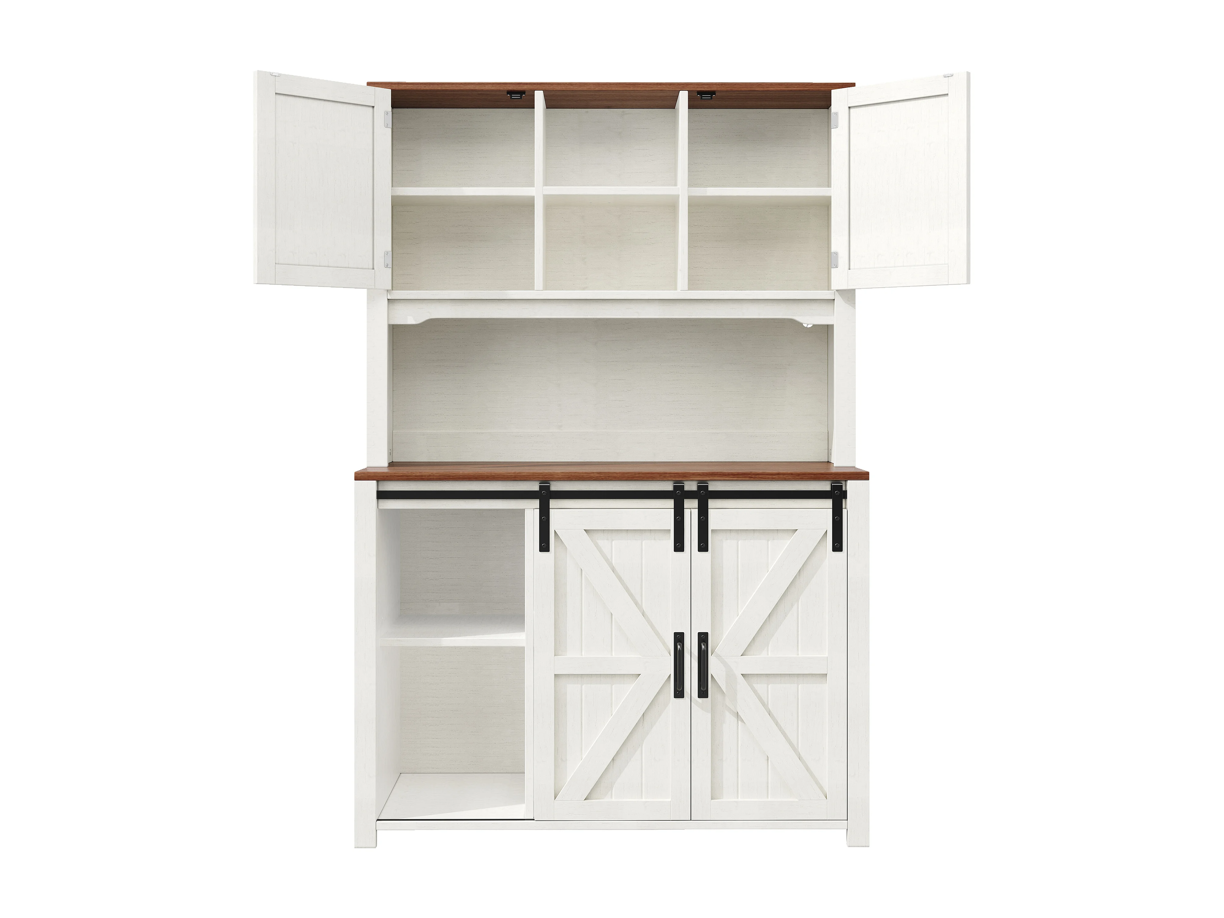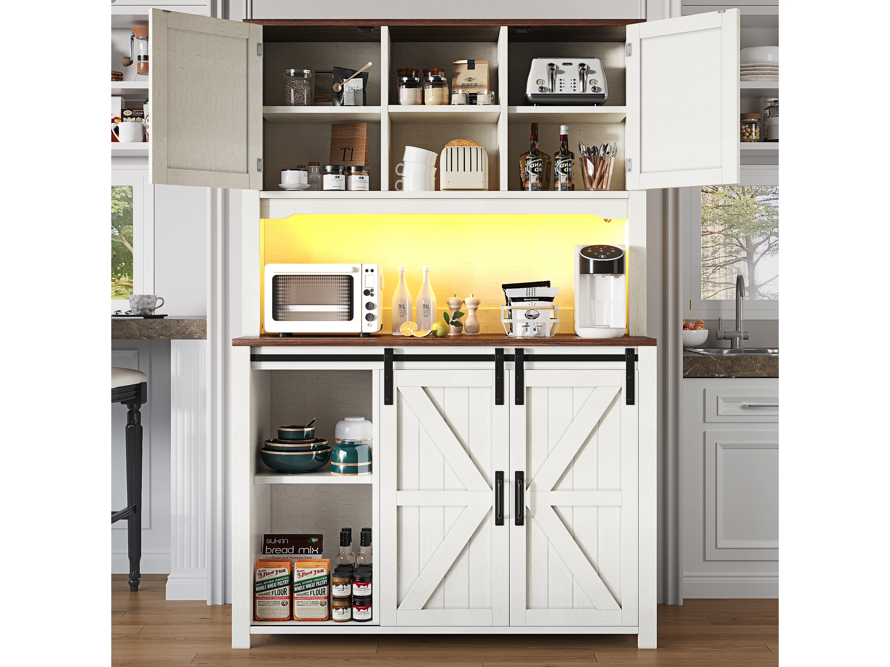 Buffet de cuisine haut avec portes coulissantes ,2 tiroirs et LED - Plateau en bois foncé - Blanc