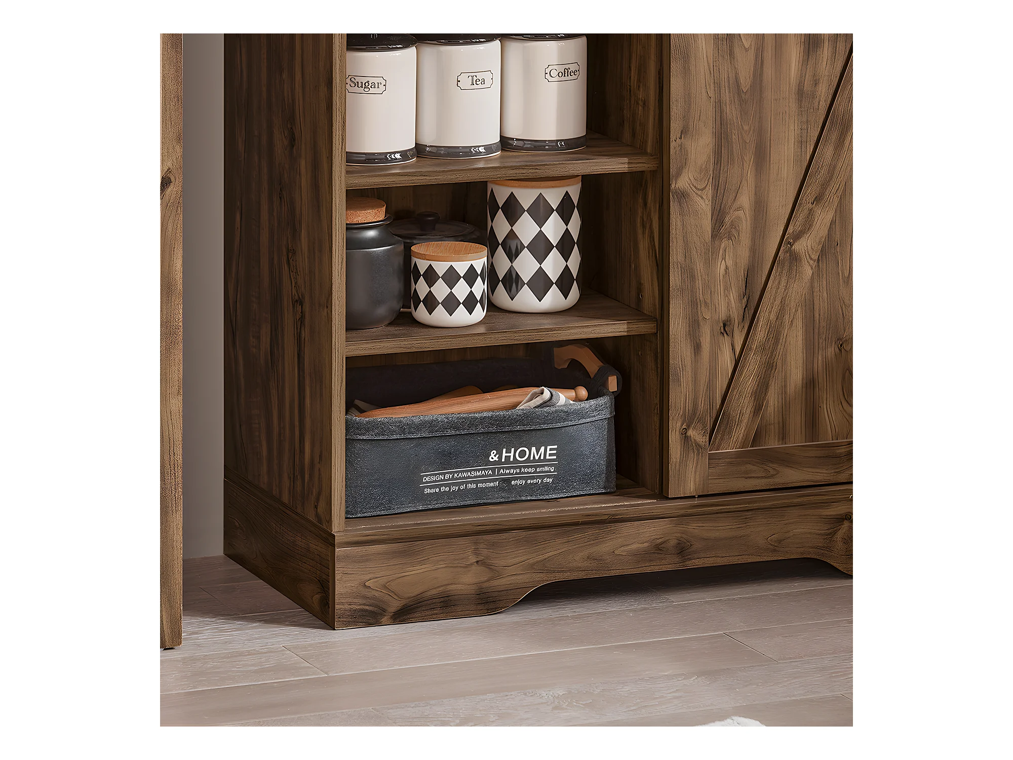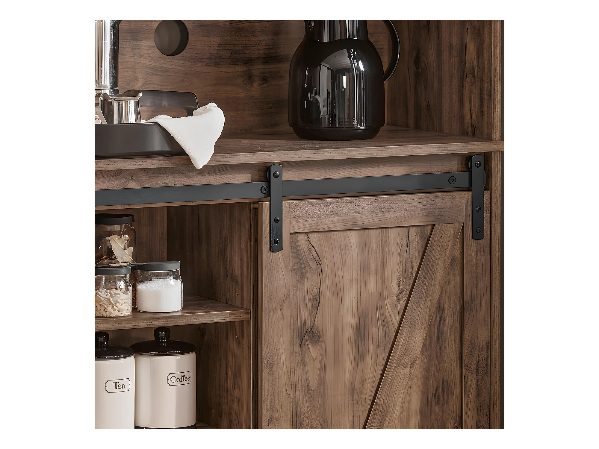 Buffet de Cuisine Meuble de Rangement avec Porte de Grange Coulissante, FSB83-N