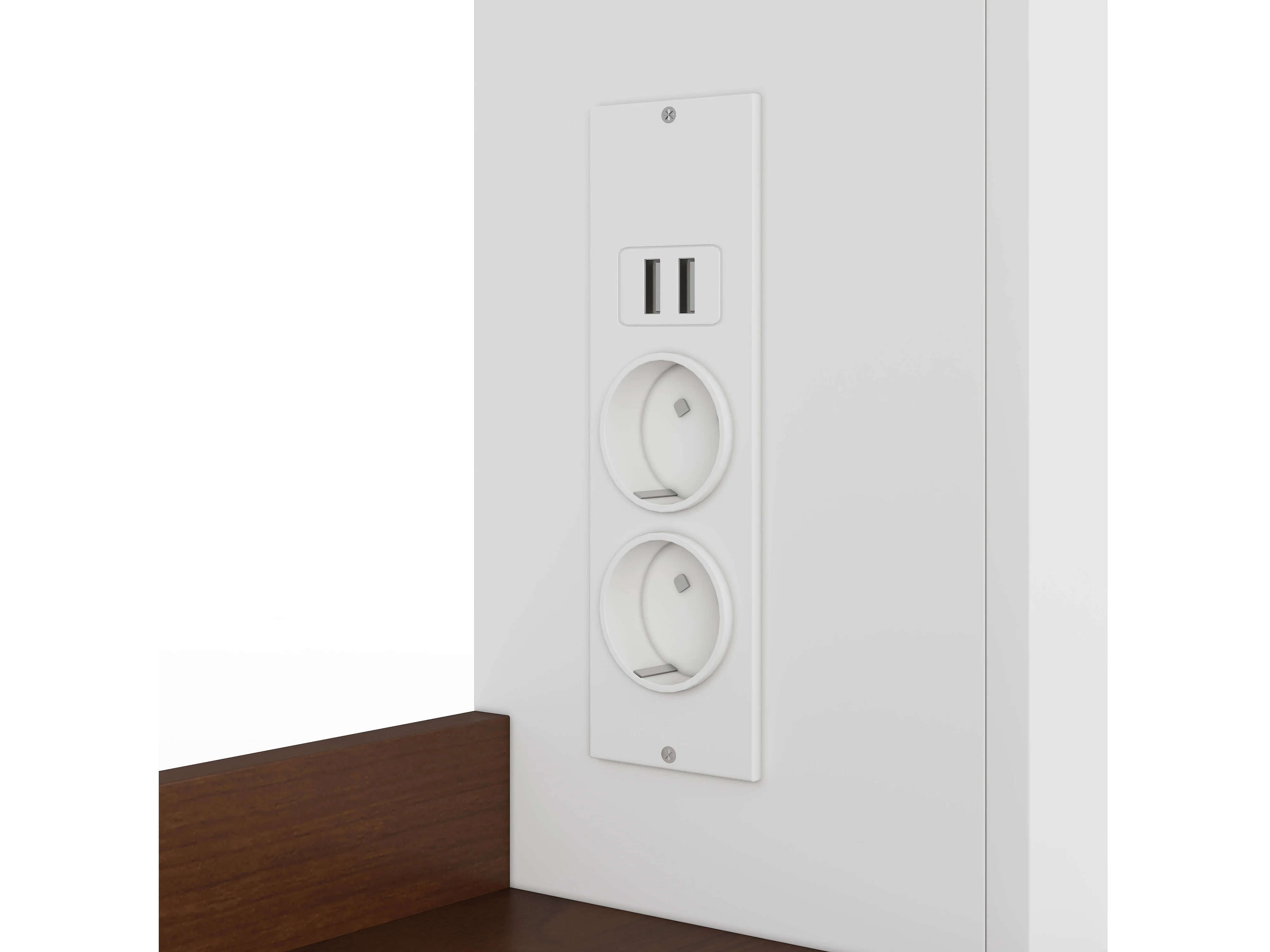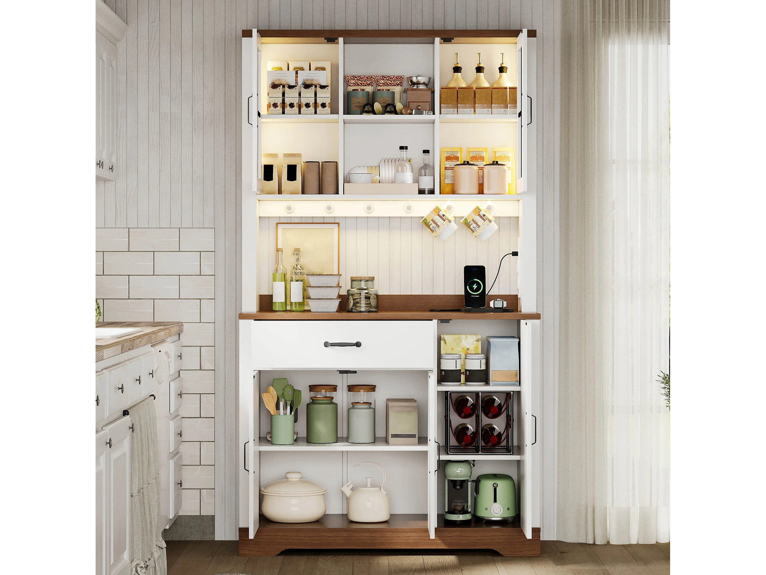 Buffet de cuisine moderne 105x40x185cm - avec éclairage LED et prise - avec étagère réglable - tiroirs et crochets - Blanc