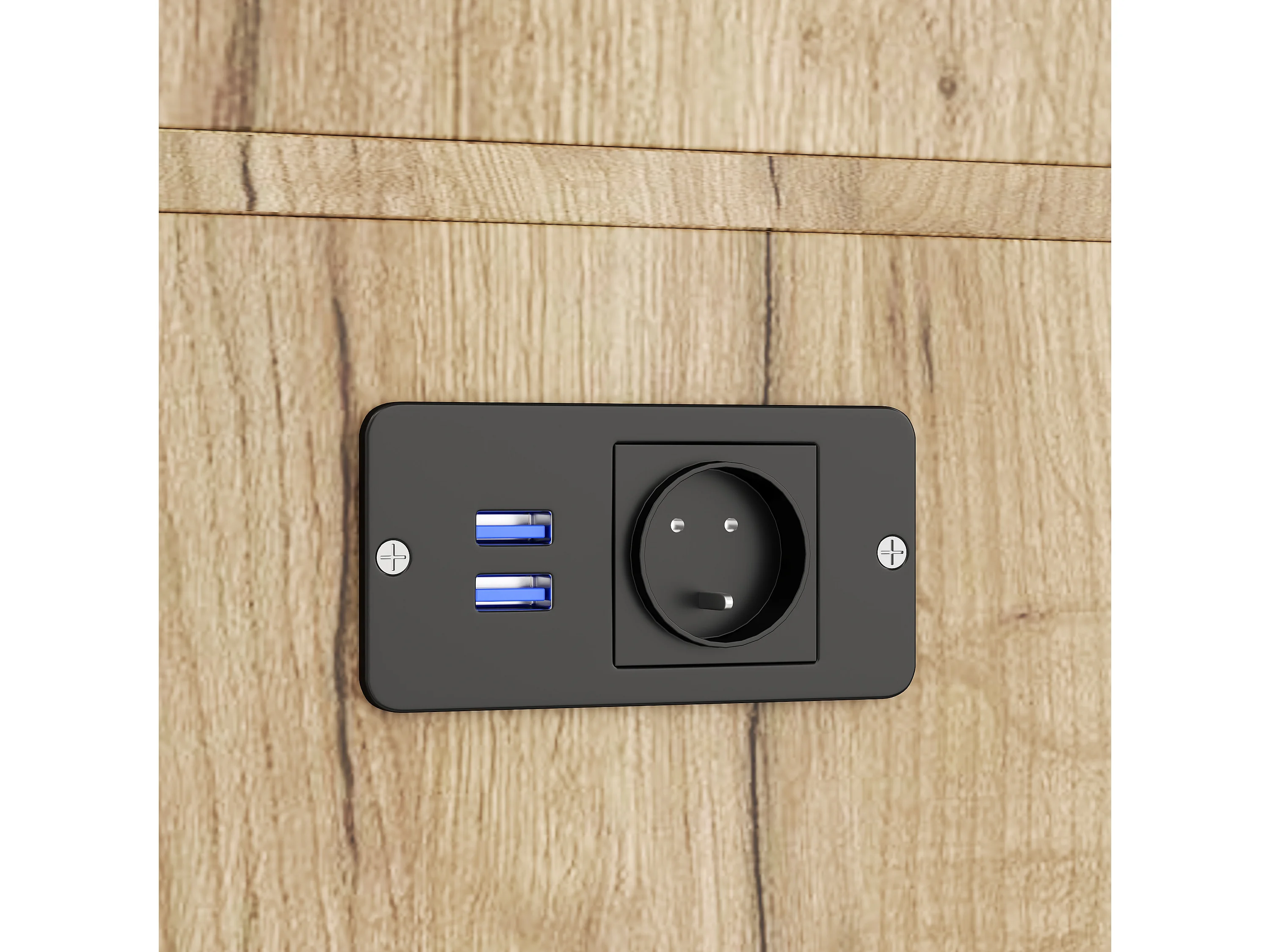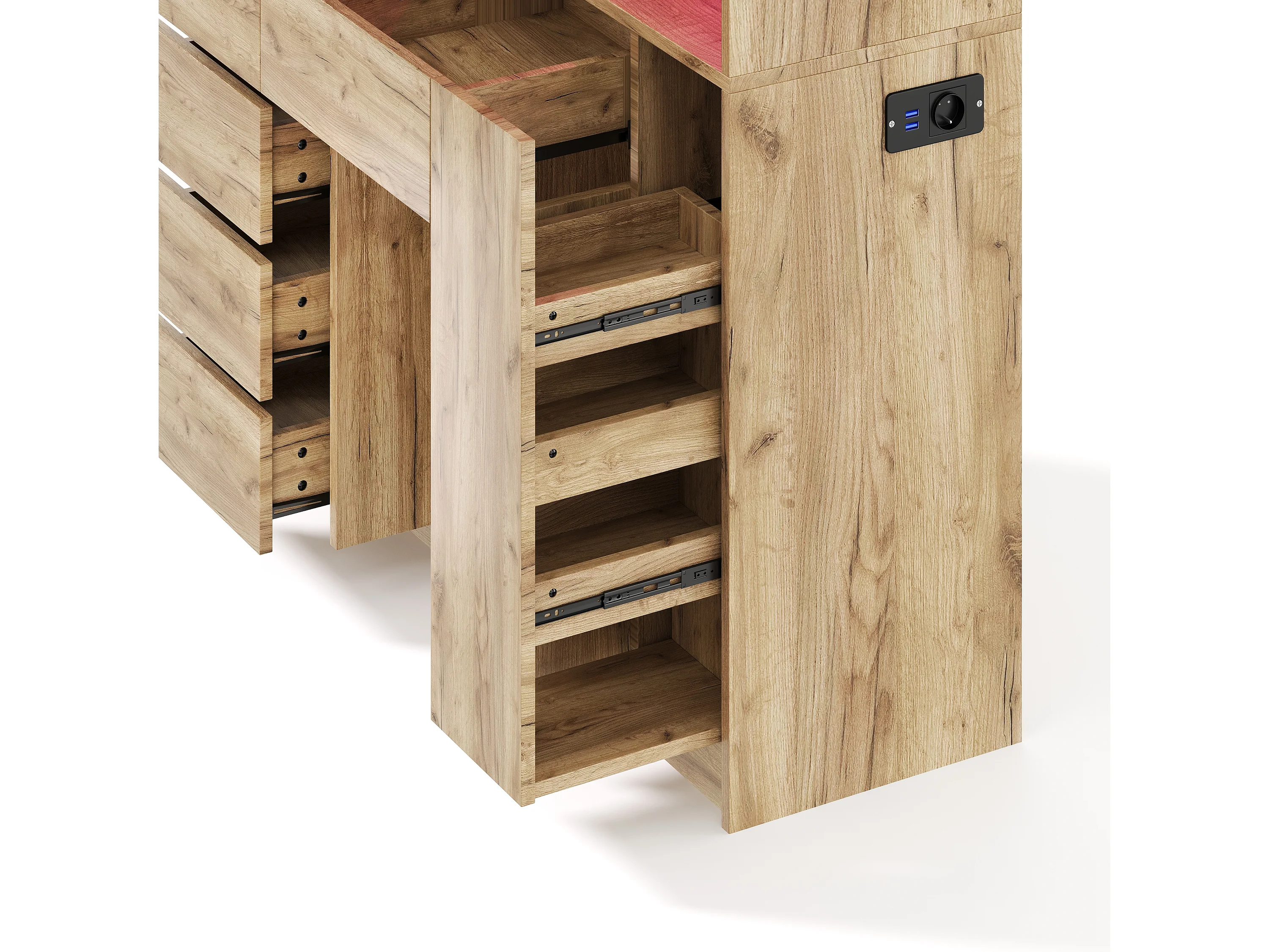Buffet de cuisine moderne 105x40x185cm - avec prise et LED - avec 6 tiroirs et 5 portes - avec étagère à épices - Naturel + Noir
