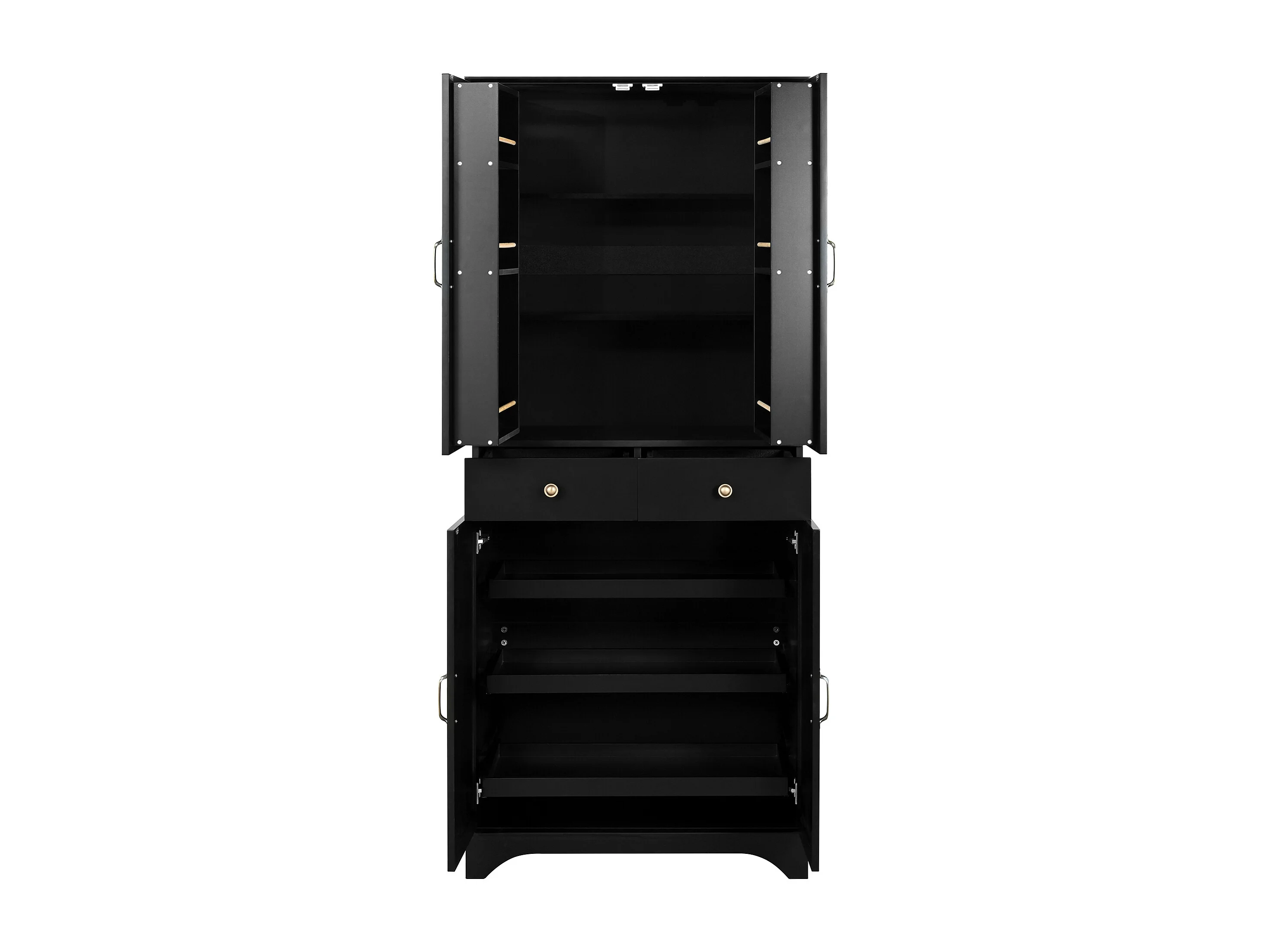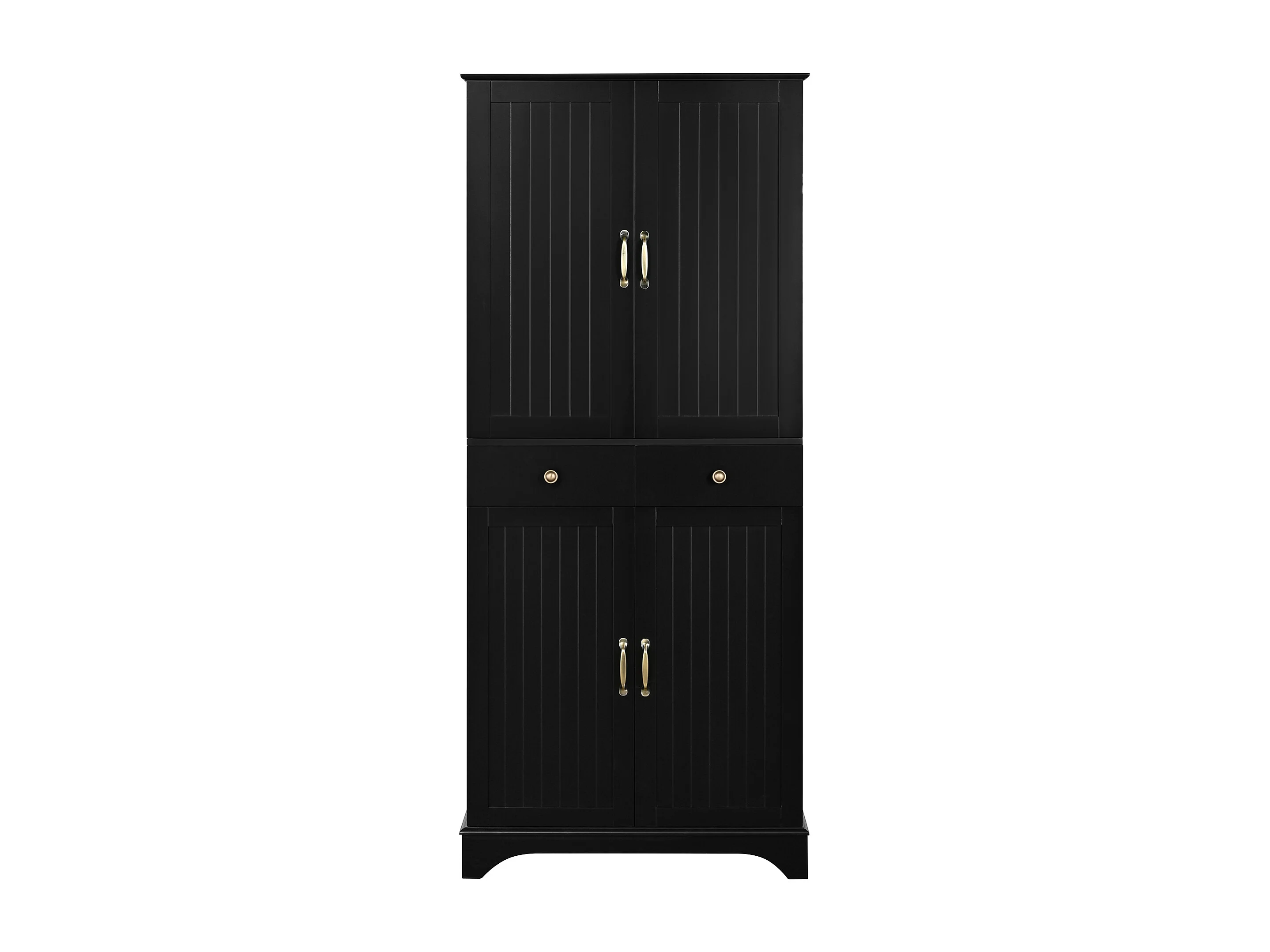 Buffet de cuisine moderne 77x40x181cm - étagère réglable - avec 2 tiroirs et 4 portes - Noir
