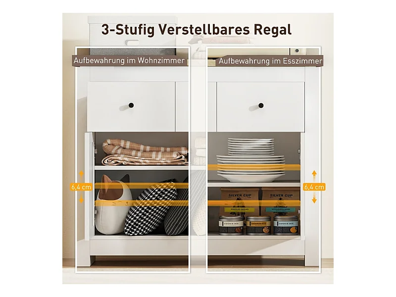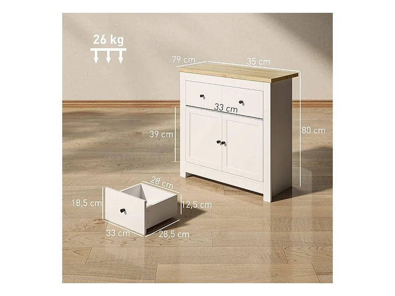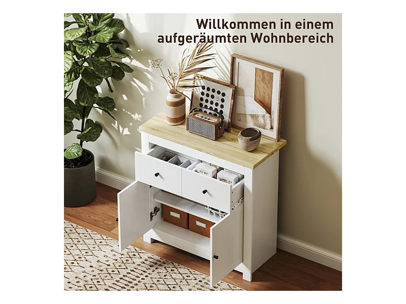 Buffet de rangement avec 2 tiroirs et portes à fermeture douce, bois, blanc (79x35x80 cm)