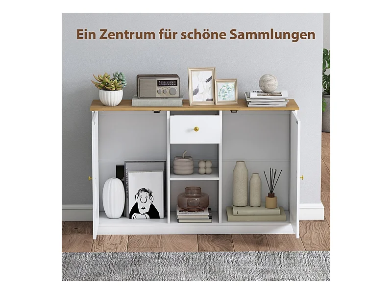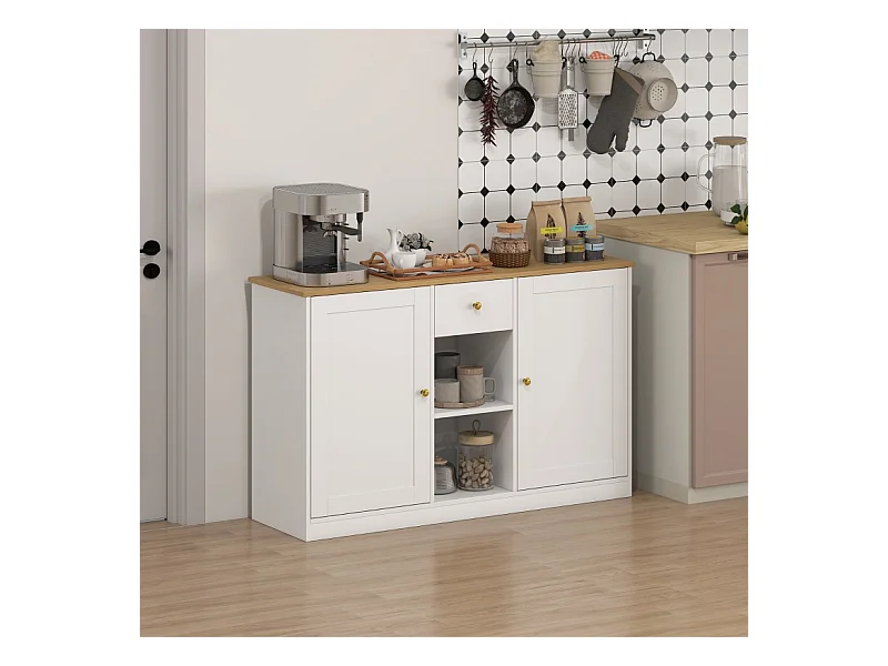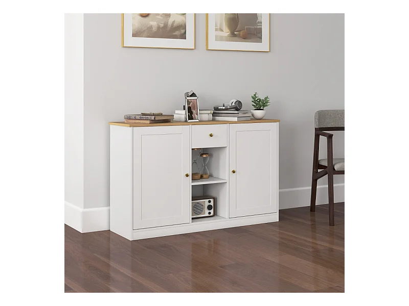 Buffet de rangement avec tiroir, 2 portes et 2 étagères ouvertes, bois, blanc (120x35x75.2 cm)
