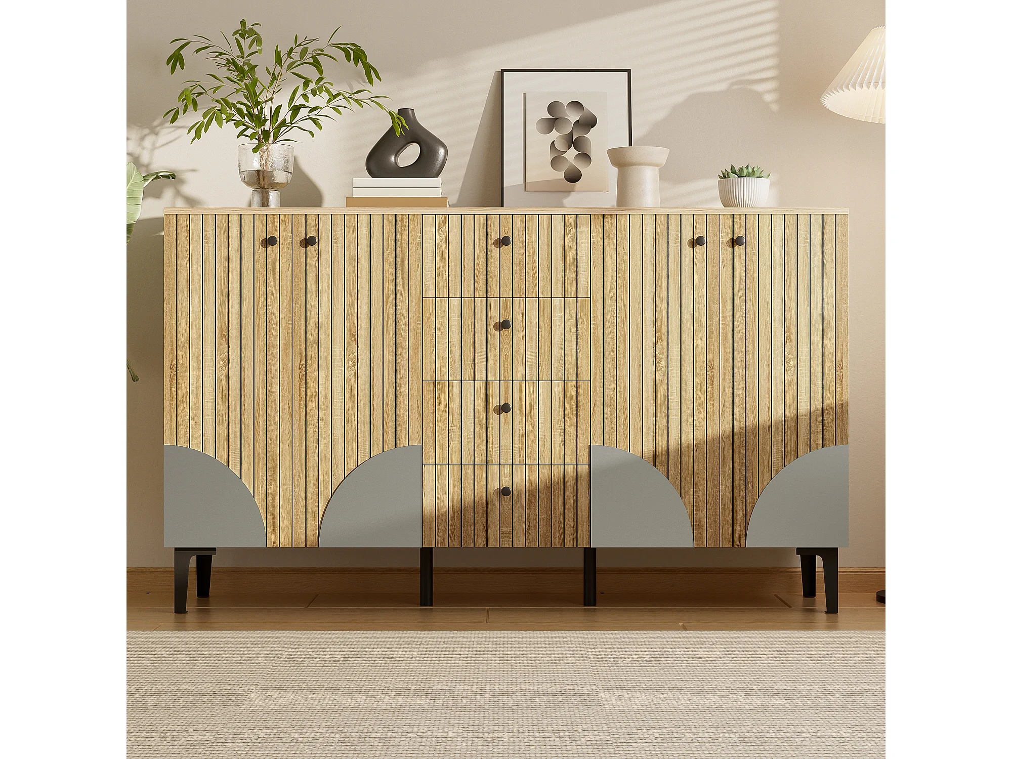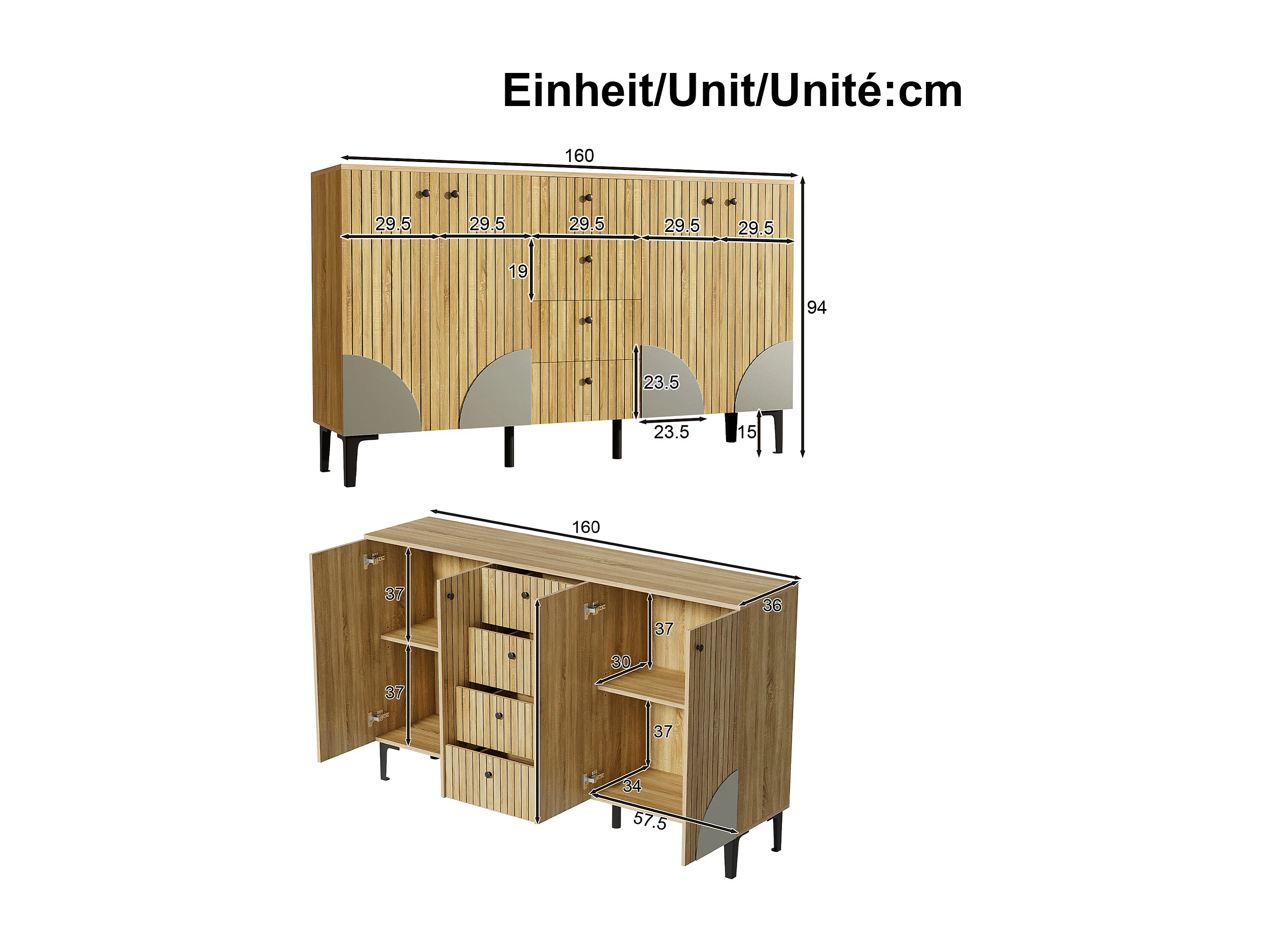 Buffet de rangement moderne en bois avec 4 portes et 4 tiroirs - 160 x 36 x 94 cm - aggloméré - naturel