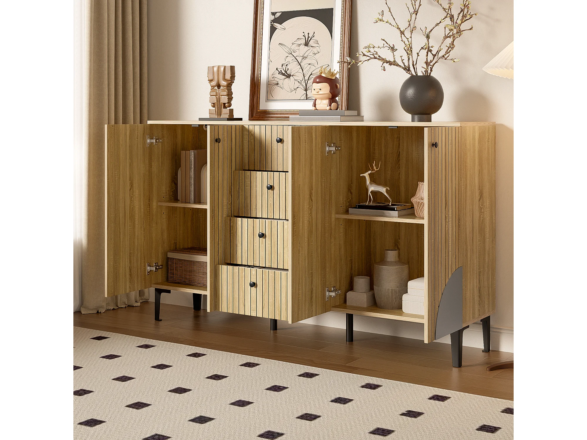 Buffet moderne 140x40x72 cm - 4 portes - Finition bois - Étagères réglables - Pieds en métal - MDF - Naturel