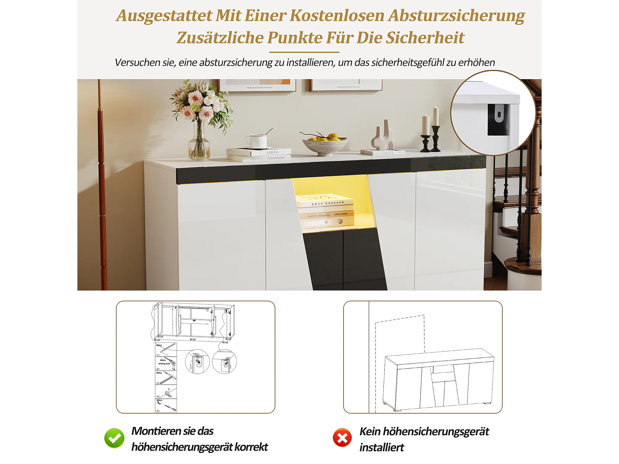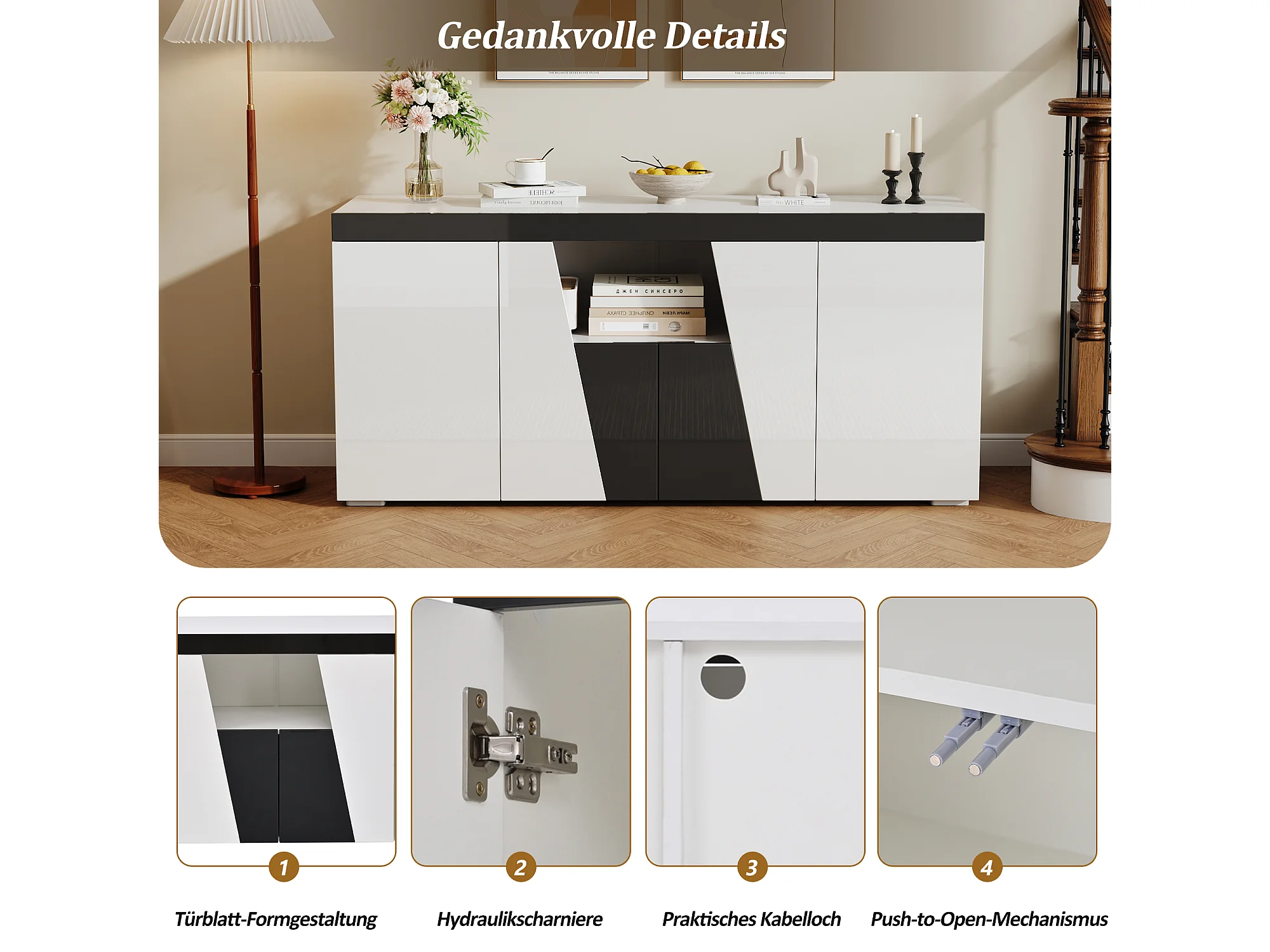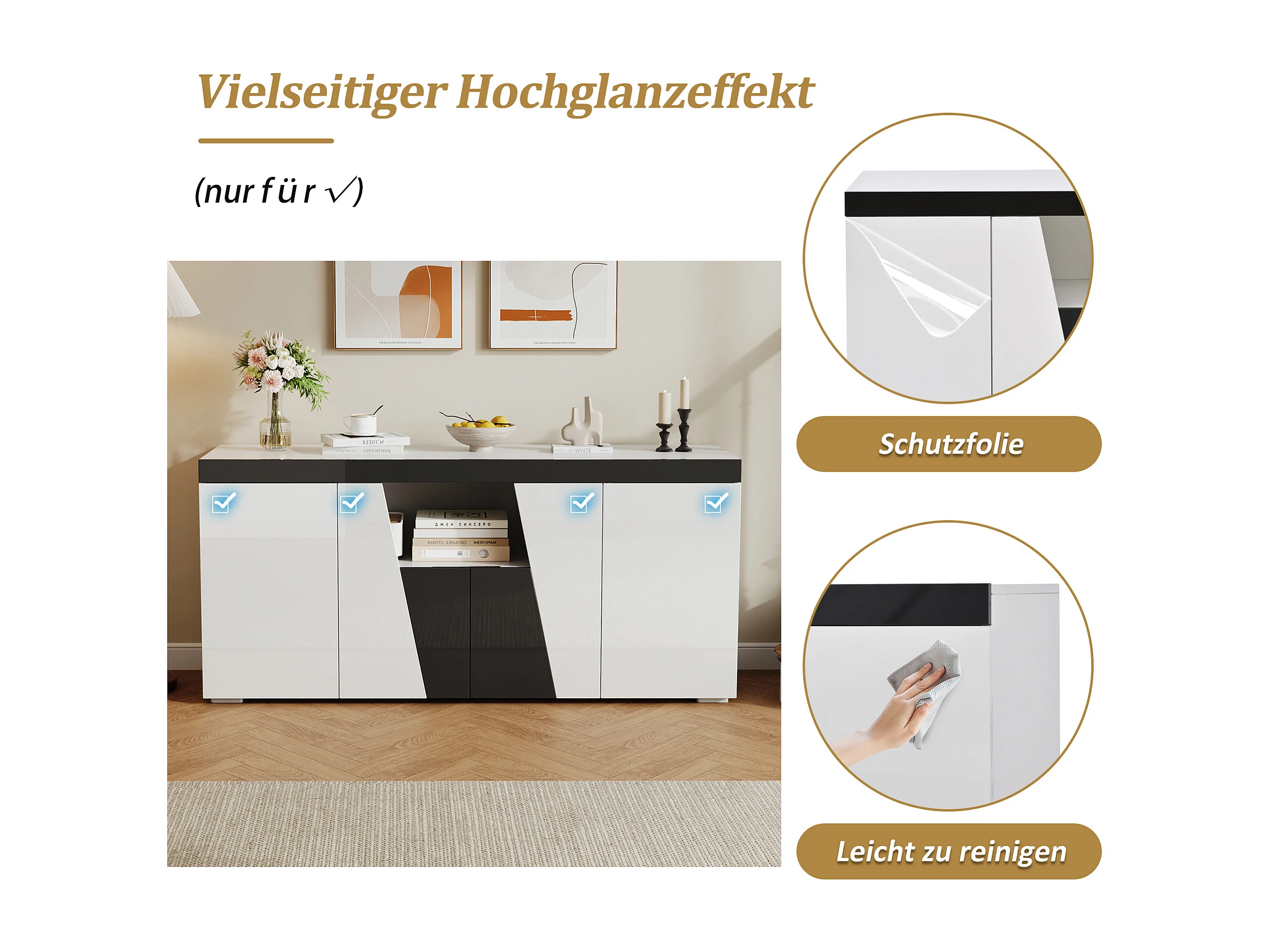 Buffet de salon - 140 x 40 x 65 cm - avec 4 portes + Leds - aggloméré - blanc