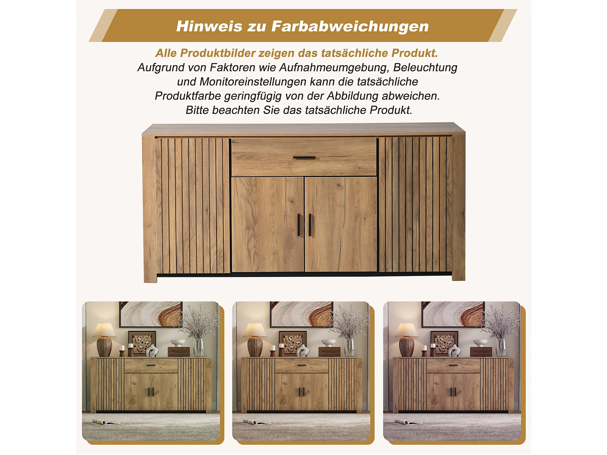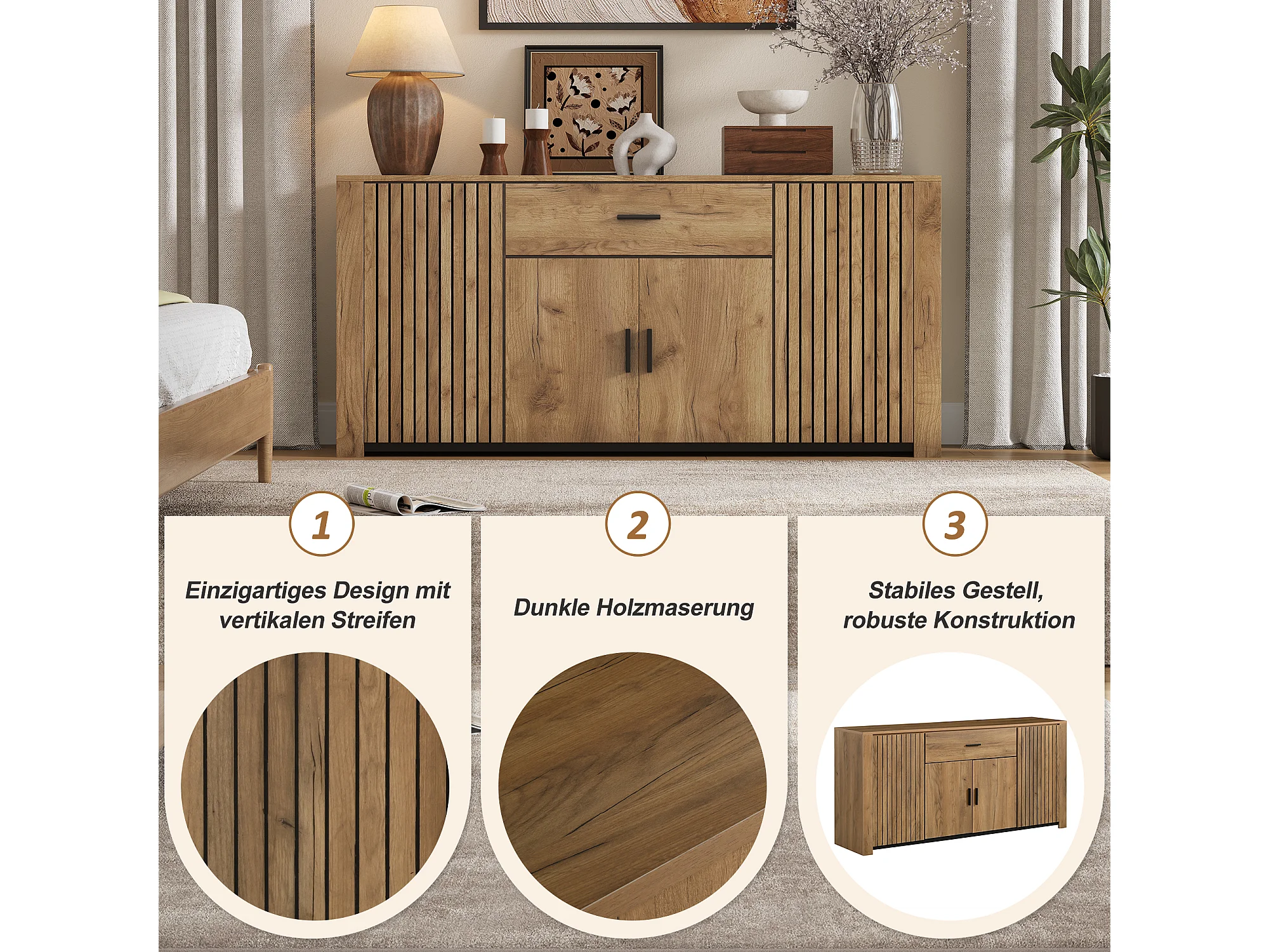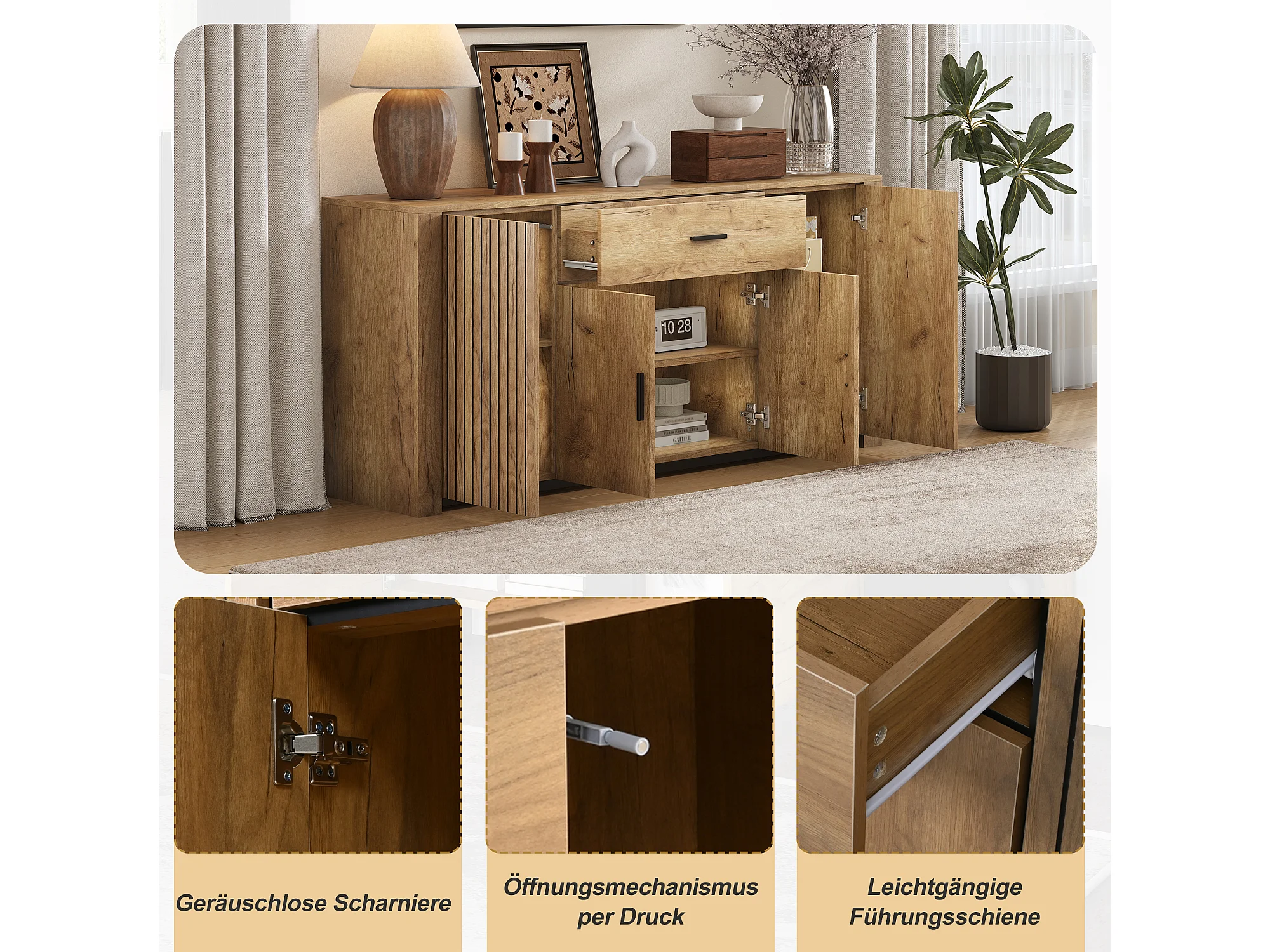 Buffet de salon - 160 x 40 x 75 cm - avec 4 portes + 1 tiroir - meuble de salle à manger - aggloméré - naturel