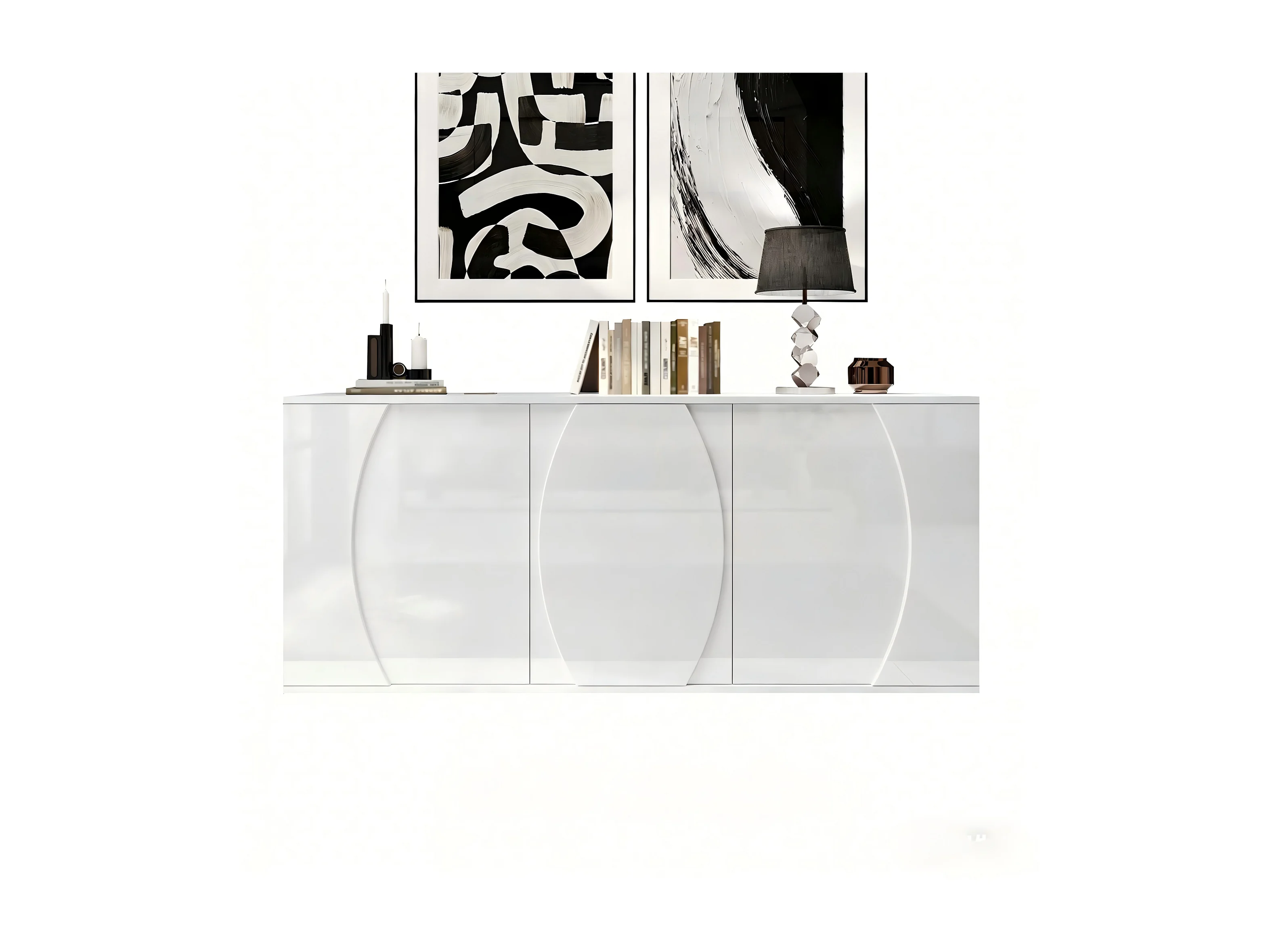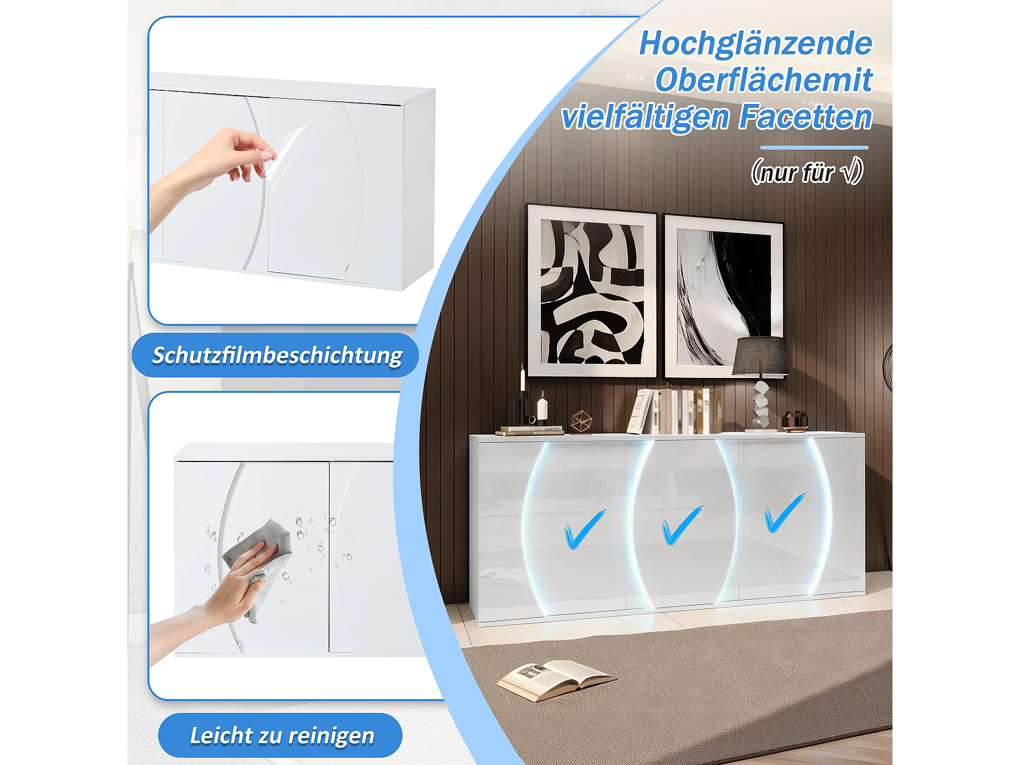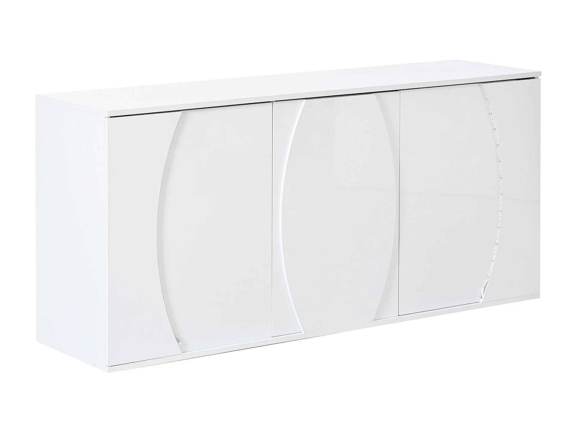 Buffet de salon laqué brillant - 150 x 40 x 70 cm - avec 3 portes + Leds - panneaux de particules - blanc
