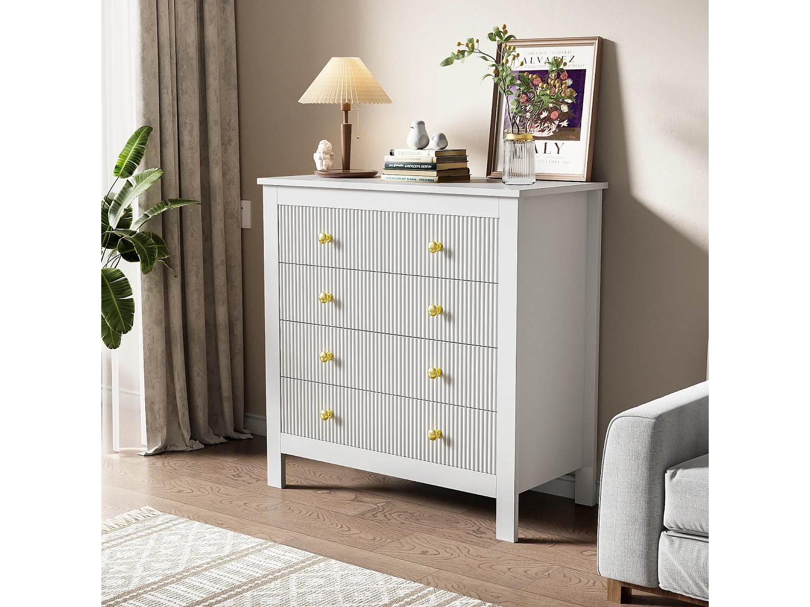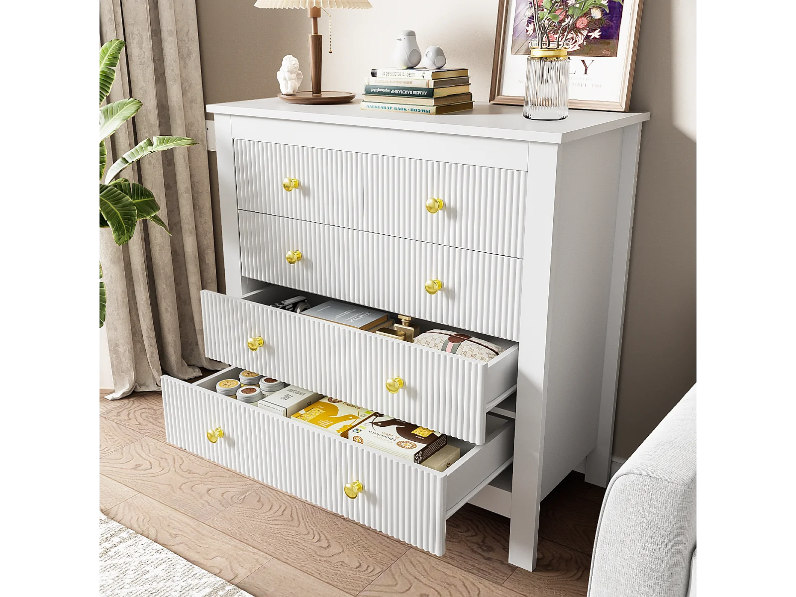 Buffet moderne minimaliste à 4 portes courbes, MDF, blanc (145x80x40 cm)