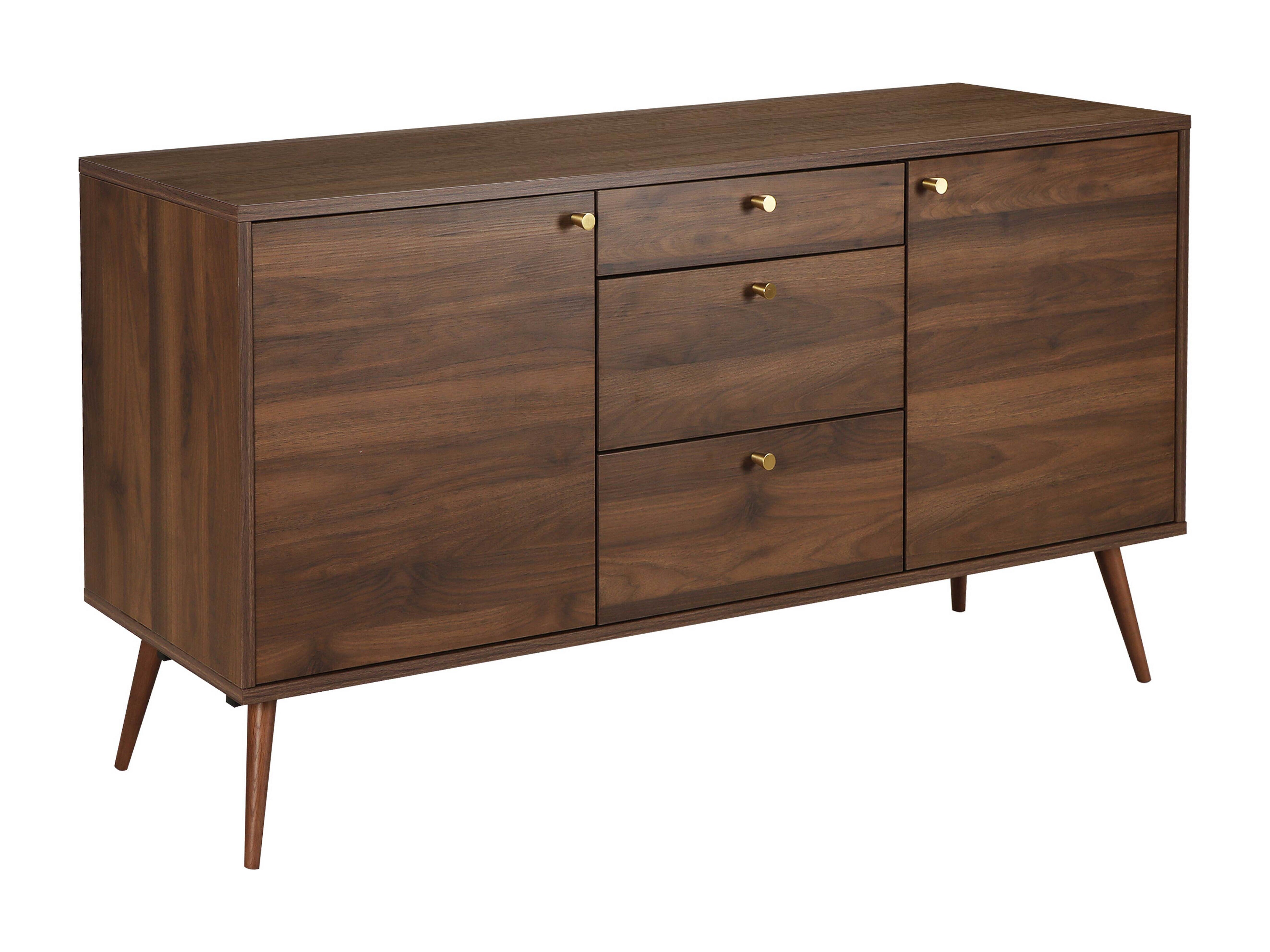 Buffet design effet bois foncé 2 portes 3 tiroirs 150 cm marron