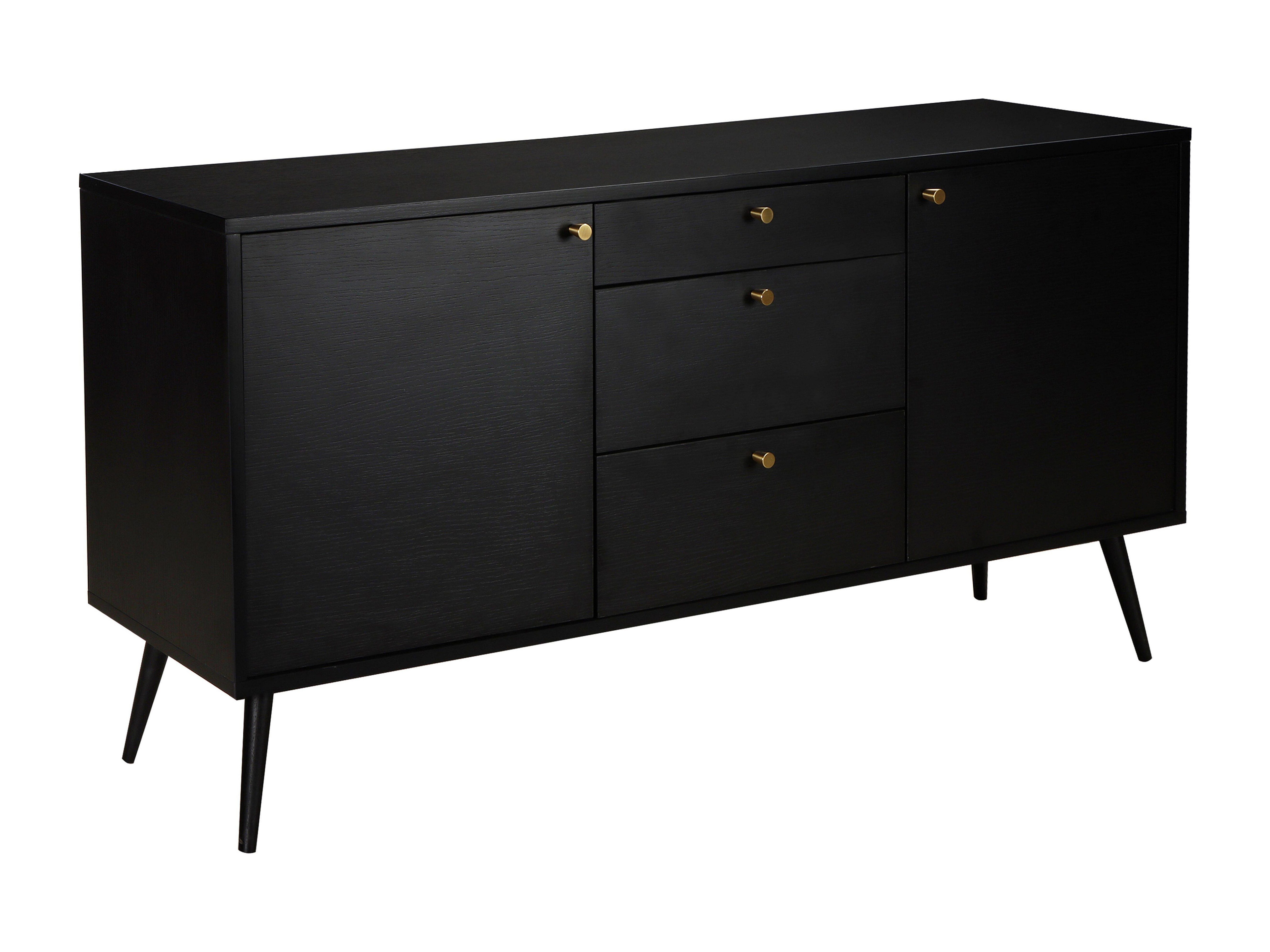 Buffet design effet bois foncé 2 portes 3 tiroirs 150 cm noir