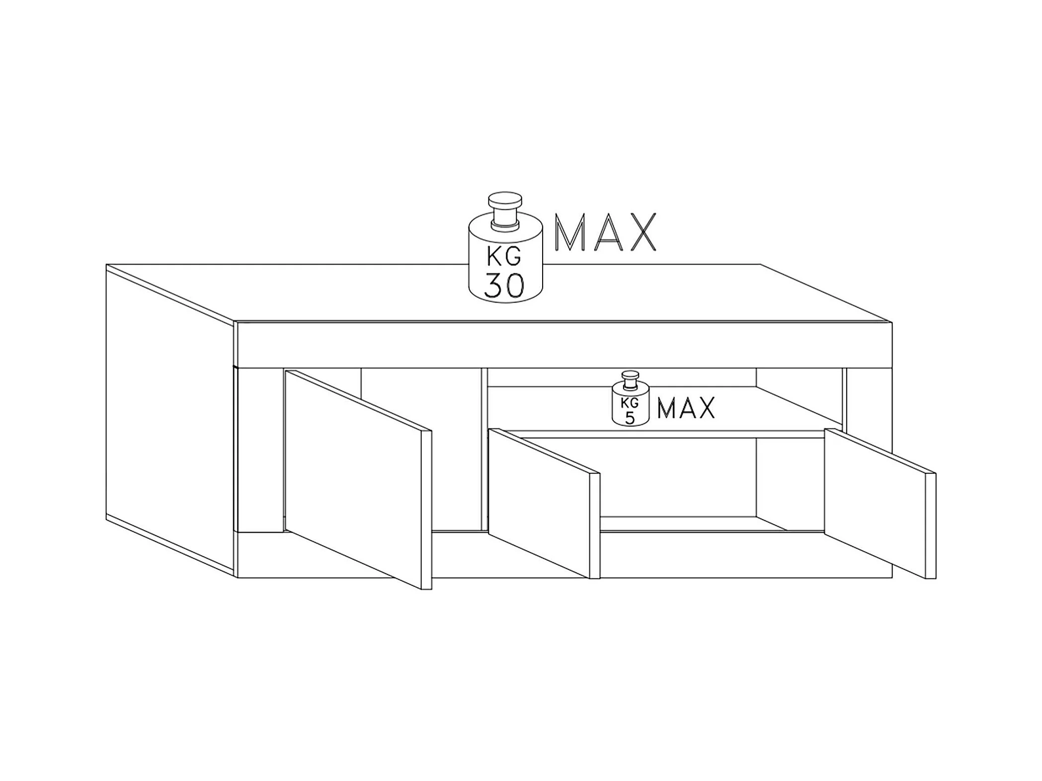 Buffet Bellevue, Buffet de salon, Meuble TV, Buffet pour salon, Armoire moderne avec 3 portes, 144x42h80 cm, Ciment et Blanc
