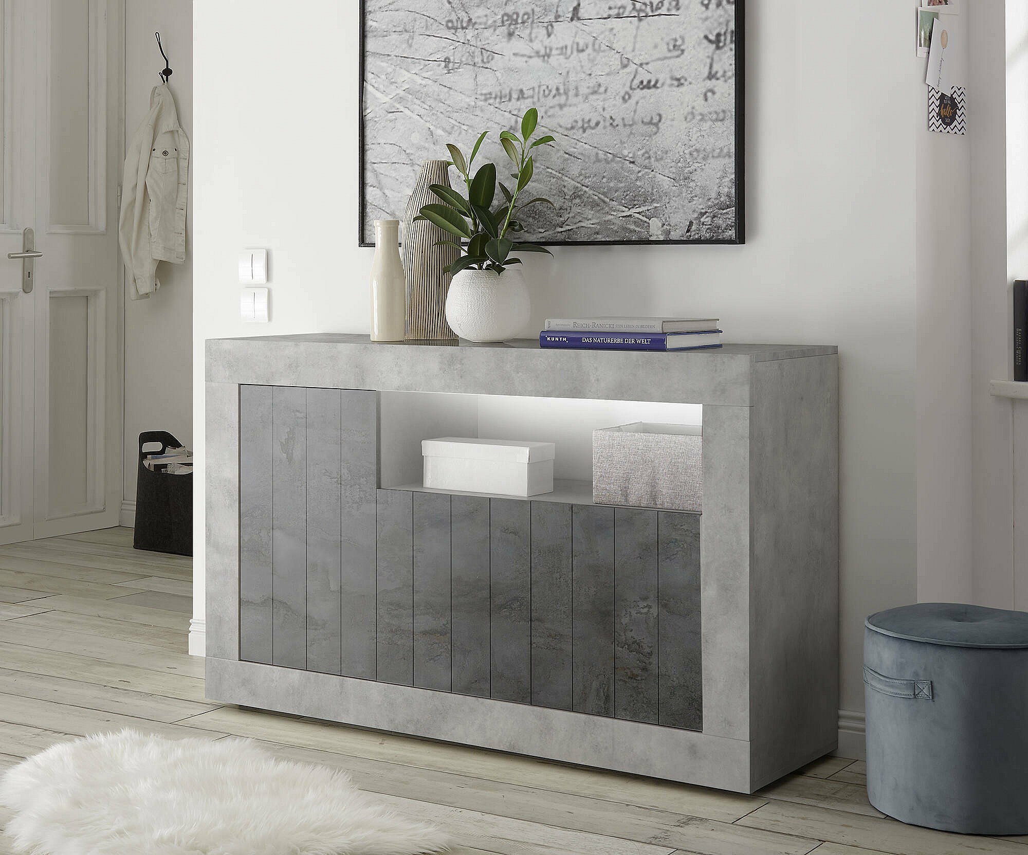 Buffet Noel, Buffet de cuisine 4 portes, Buffet de salon, 100% Made in Italy, 162x44h86 cm, Ciment