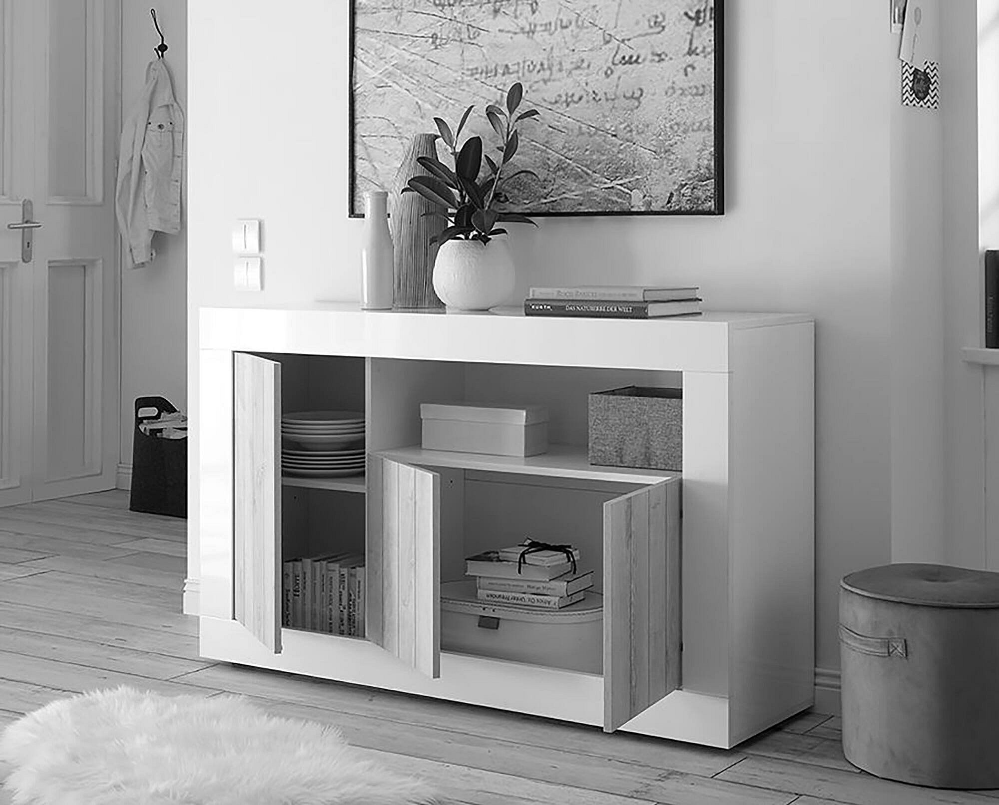 Buffet Dsalmas, Buffet du salon, Commode de salon, Garde-manger de cuisine, 121x50 h91 cm, Ciment et blanc