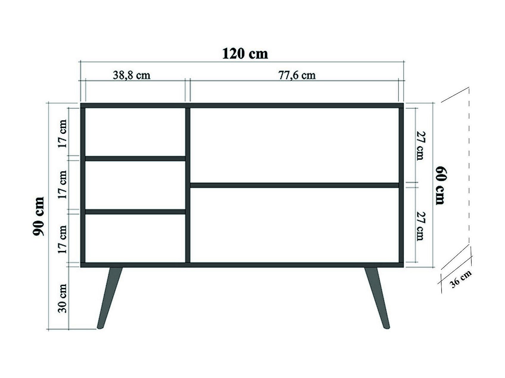 Buffet Dmarchizz, Buffet du salon, Commode de salon, Garde-manger de cuisine, 120x36 h90 cm, Chêne