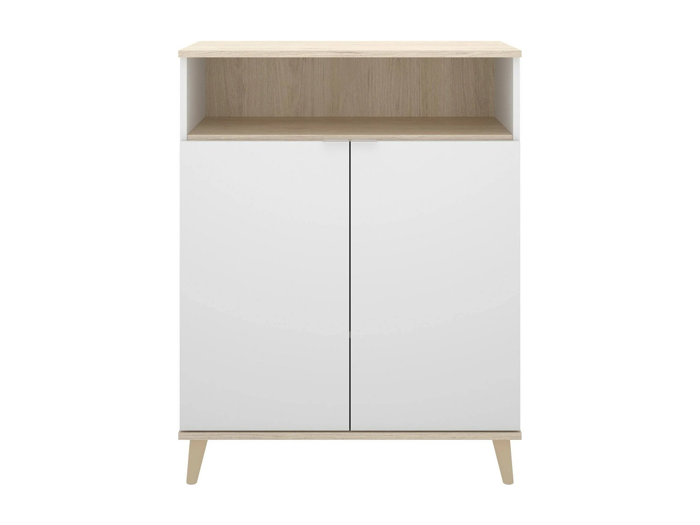 Buffet Dmossin, Buffet garde-manger de salon, Buffet de salon moderne avec 2 portes, 80x40h102 cm, Blanc et Chêne