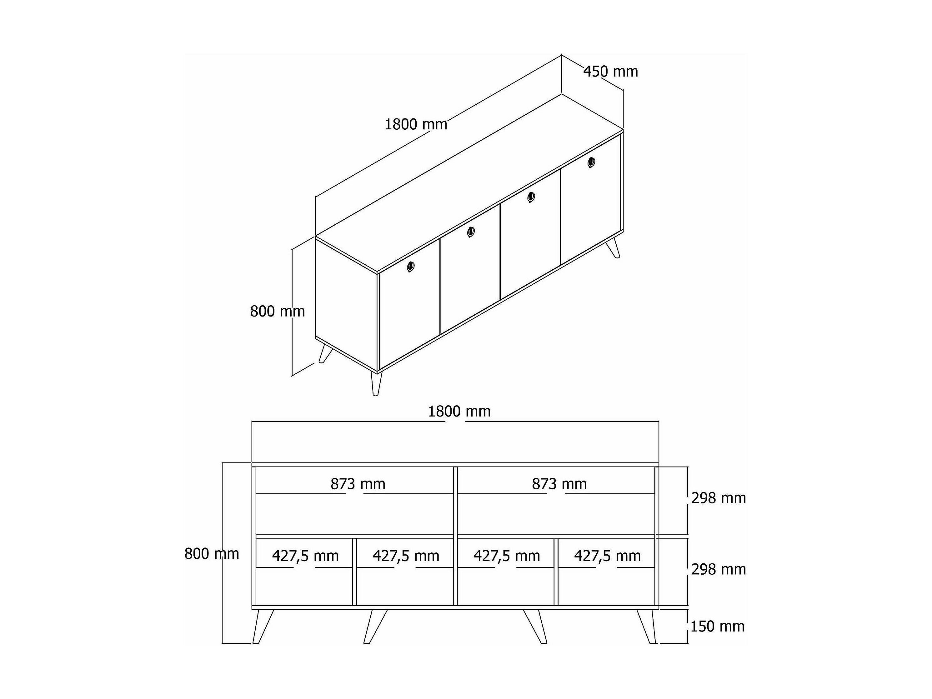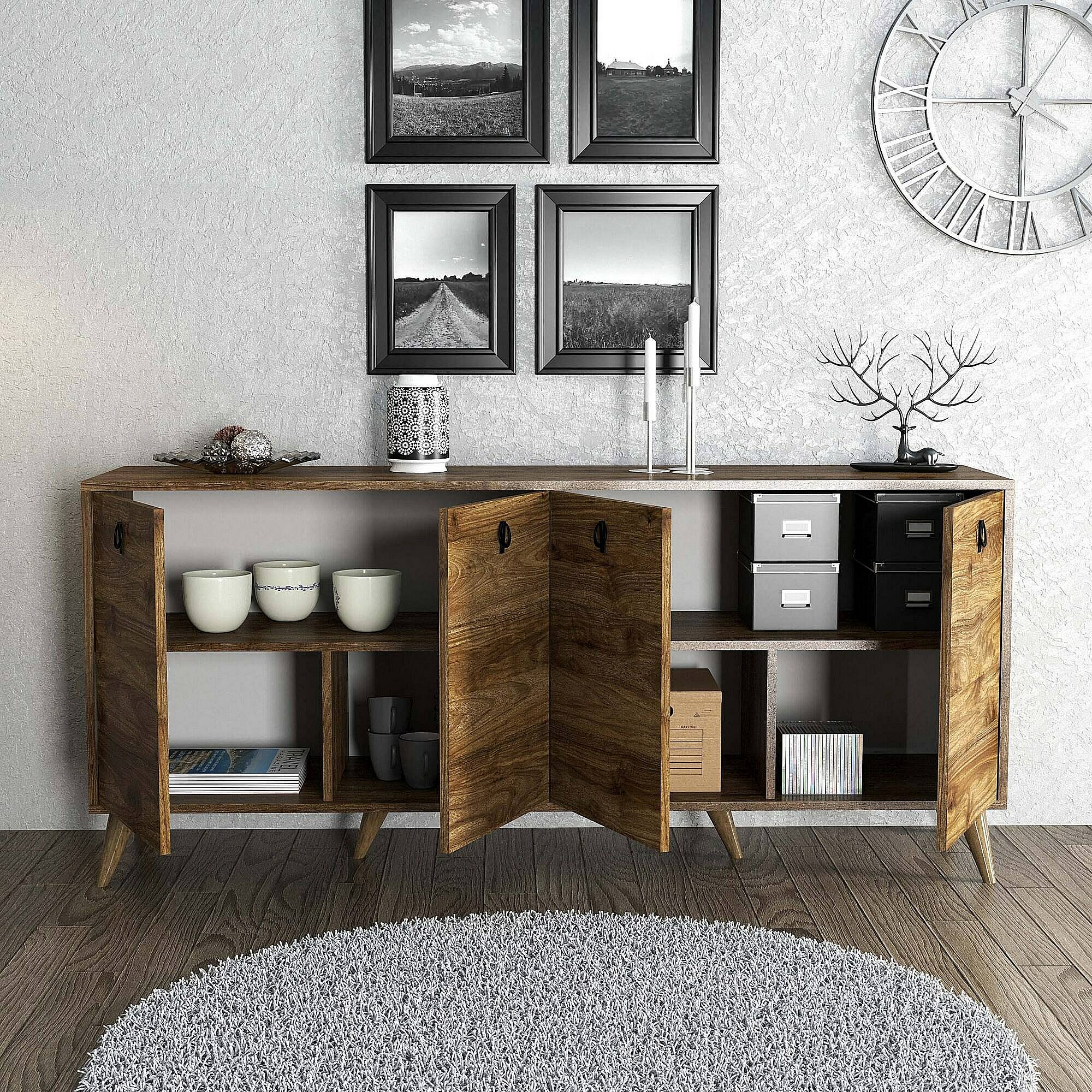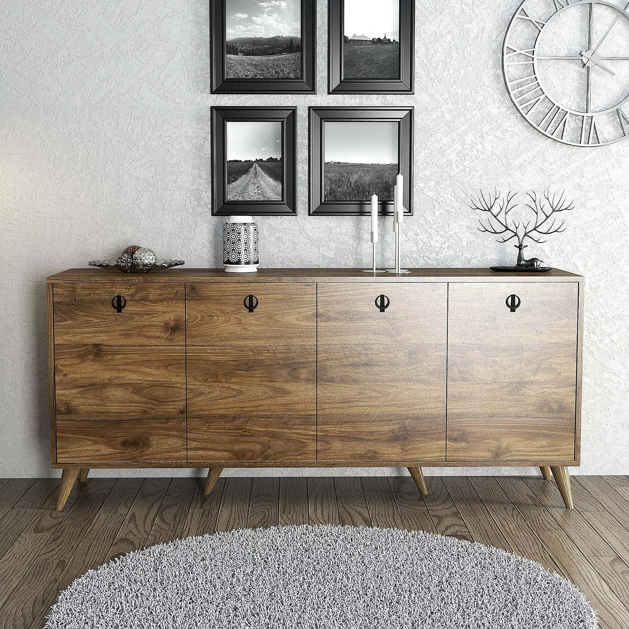 Buffet Dmutarell, Buffet du salon, Commode de salon, Garde-manger de cuisine, 180x45 h80 cm, Noyer