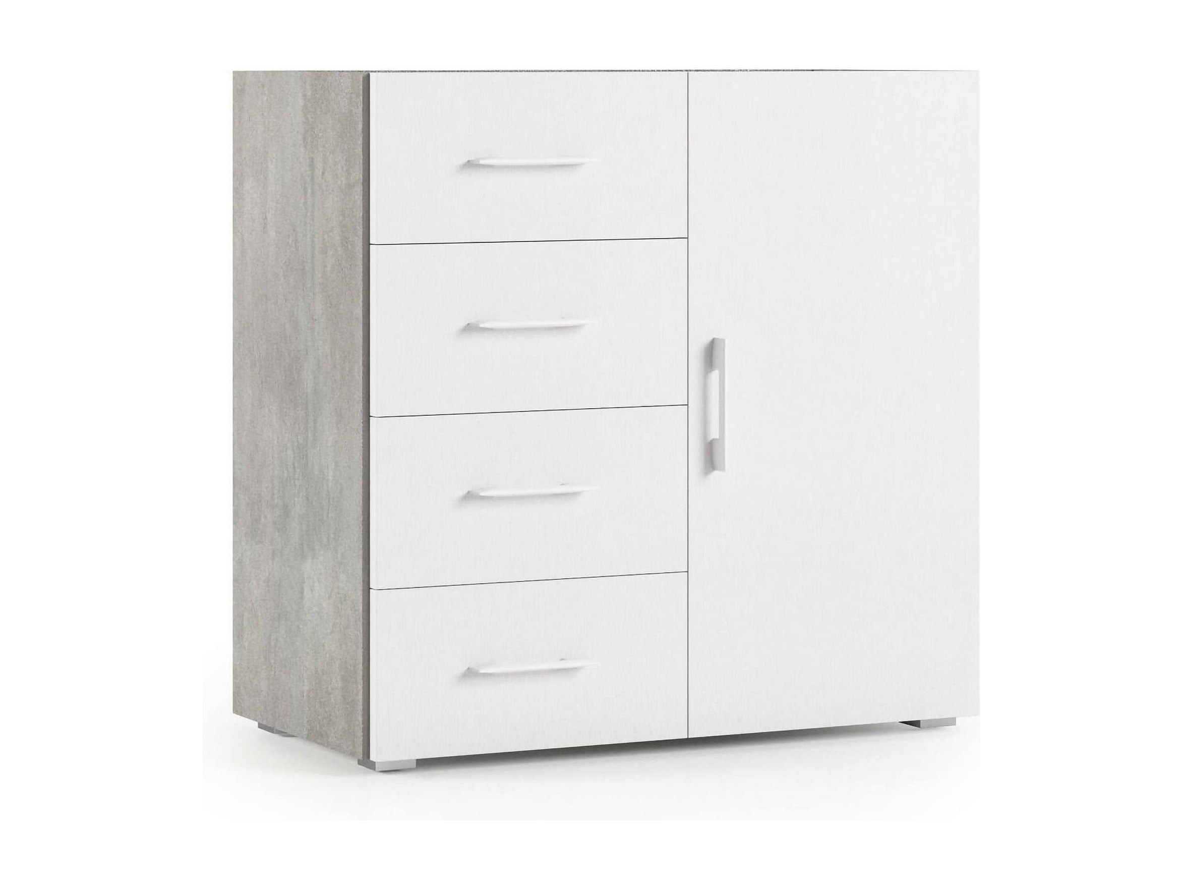 Buffet Dnag, Buffet avec 1 porte et 4 tiroirs, Buffet de salon, Armoire polyvalente avec étagères, 100% Made in Italy, 90x41h87 cm, Blanc et Ciment