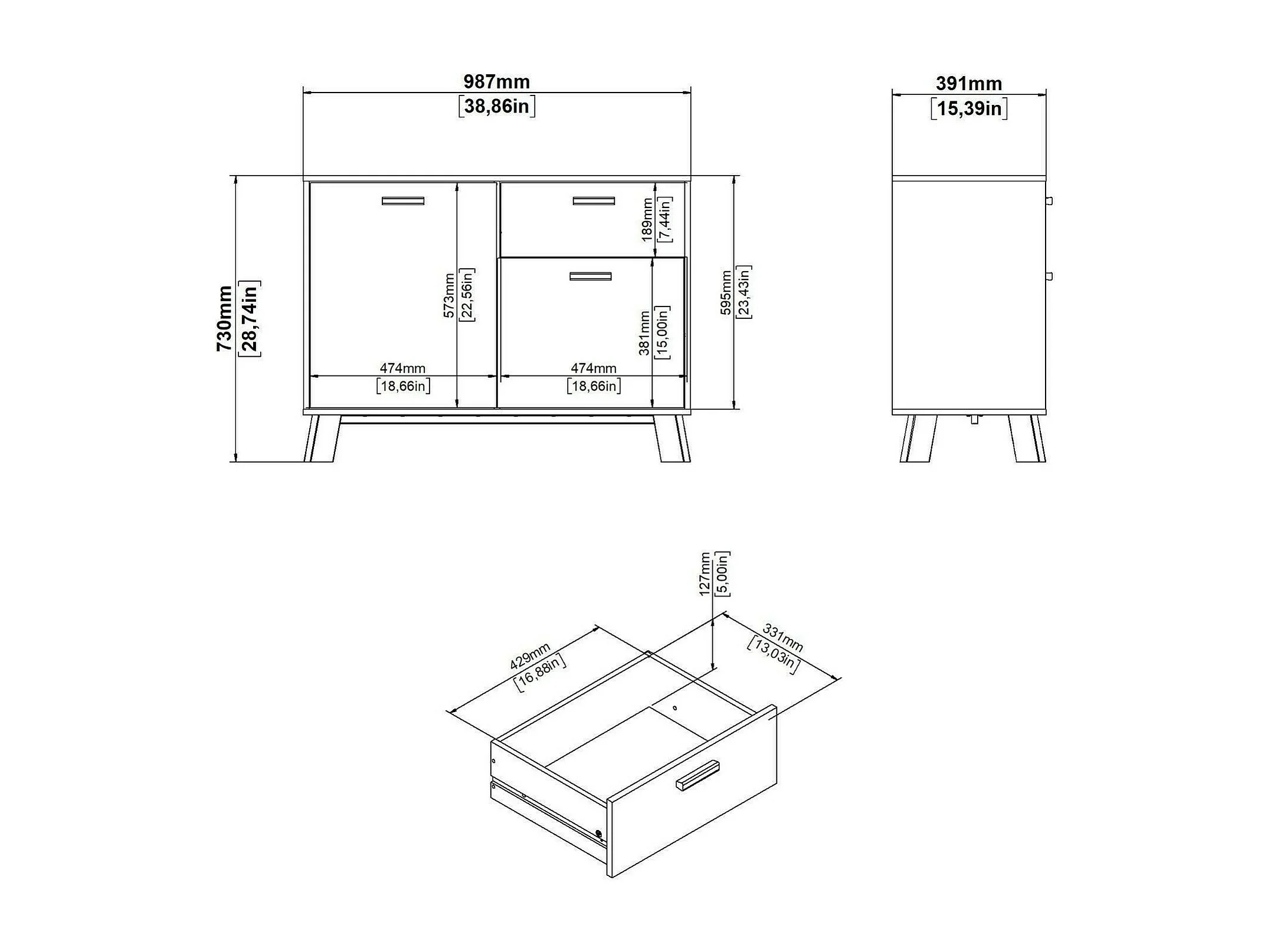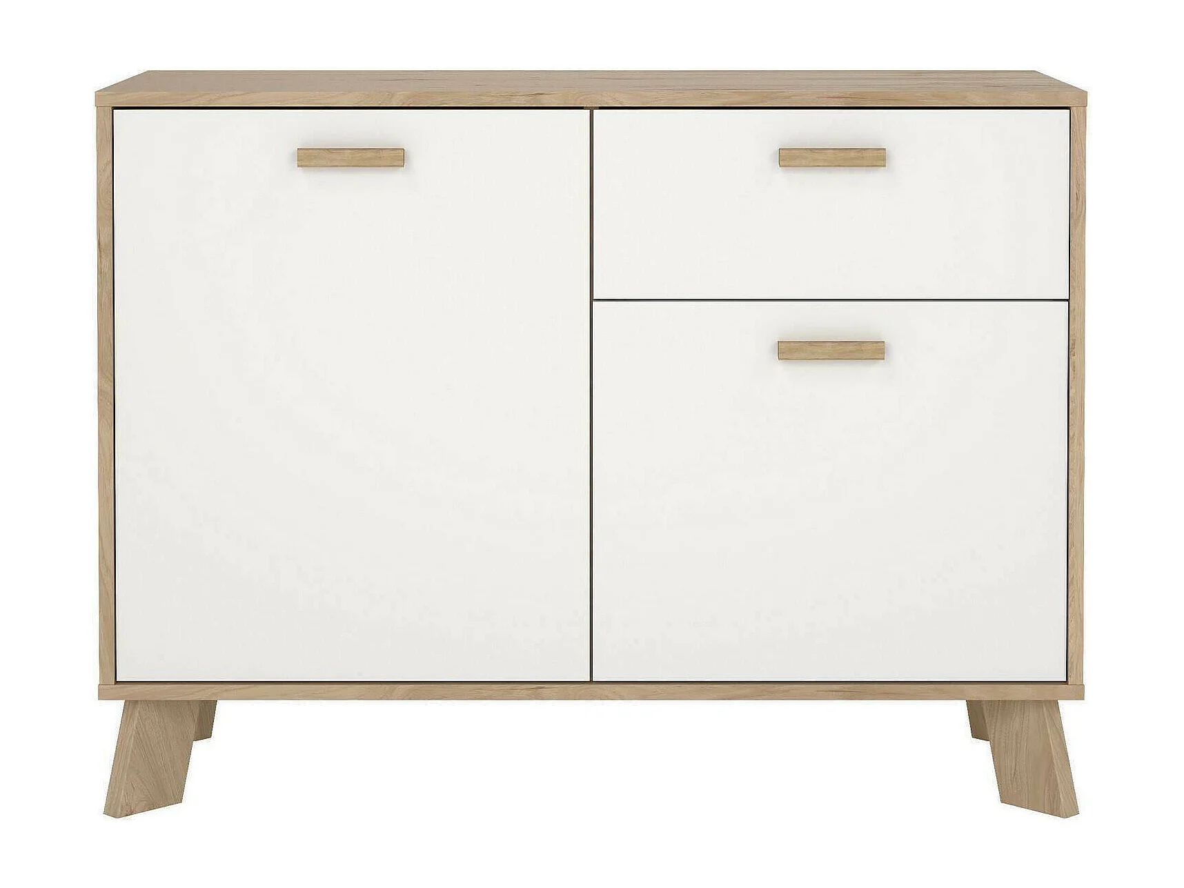 Buffet Drinco, Buffet du salon, Commode de salon, Garde-manger de cuisine, 99x39 h73 cm, Chêne clair et Blanc