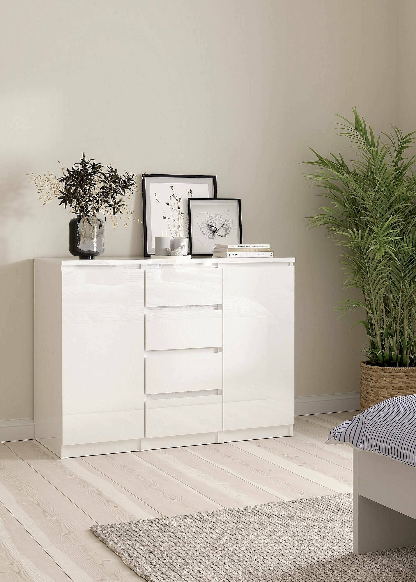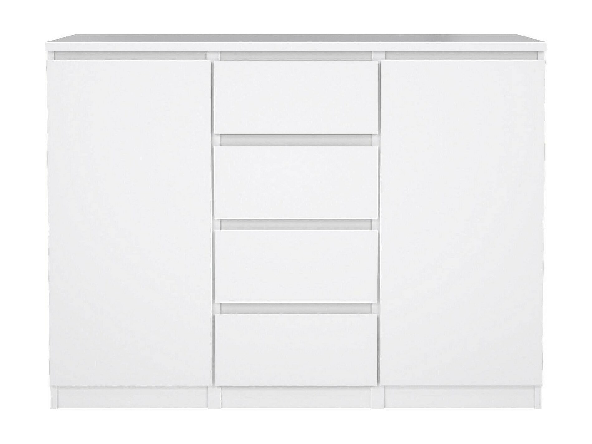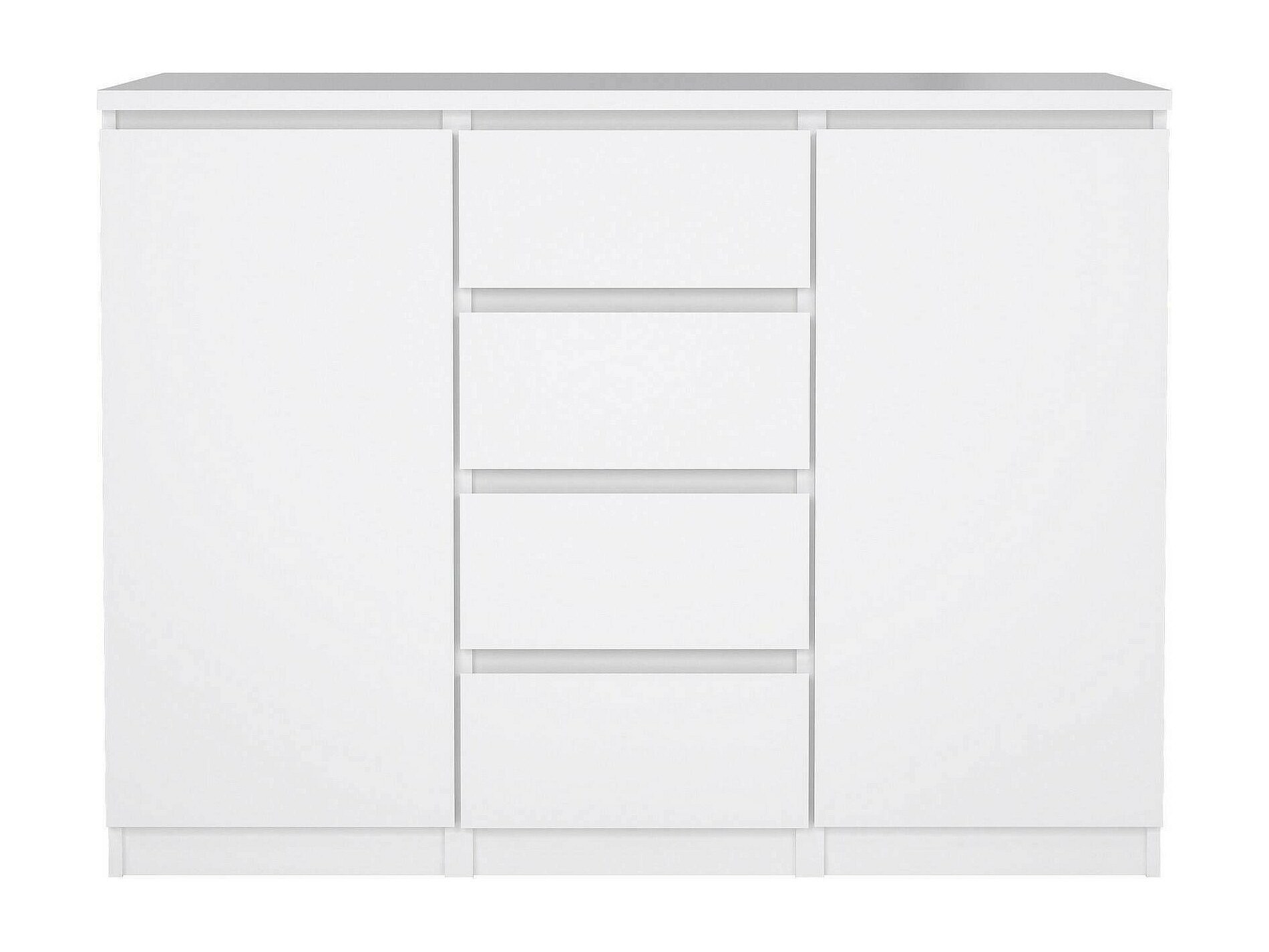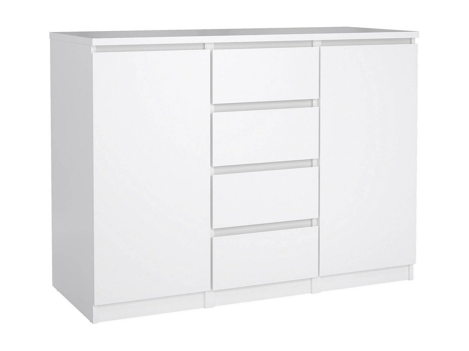 BUFFET - Buffet du salon, Commode de salon, Garde-manger de cuisine, 121x50 h91 cm, Blanc. STRUCTURE ET UTILISATION - Meuble de salon polyvalent, pratique et peu encombrant, au design élégant et fonctionnel - Il peut également être utilisé comme meuble TV où vous pourrez ranger vos décorations préférées - Ce meuble multifonctionnel est parfait pour décorer la salle à manger , salon, couloir, entrée ou bureau contenant soigneusement vaisselle, verres, nappes, couverts, livres, documents ou objets de décoration. QUALITÉ ET DESIGN - Meuble au design moderne et élégant, parfait pour meubler un environnement contemporain et lumineux - Idéal pour ceux qui recherchent des solutions fonctionnelles et peu encombrantes, ce produit est parfait pour les maisons et les appartements de toutes tailles - Garantie de deux ans à compter de la date d'achat. CARACTÉRISTIQUES TECHNIQUES - Accessoire d'ameublement polyvalent, conçu pour une intégration facile avec d'autres meubles - Emballage résistant, conçu pour le commerce électronique - Matériau: Panneau de particules mélaminé - Informations supplémentaires: Article certifié EPA 40 CFR TSCA - Libération de formaldéhyde conforme aux directives IOS/MAT/0181/EN 16580 - Démonté - Equipé d'un kit de montage - Deux portes battantes - Quatre tiroirs. DIMENSIONS EN CM - Buffet : Longueur: 120,8 Largeur: 50 Hauteur: 90,7 - Dimensions supplémentaires: Ouverture tiroir : 33 cm - Ouverture porte : 37 cm