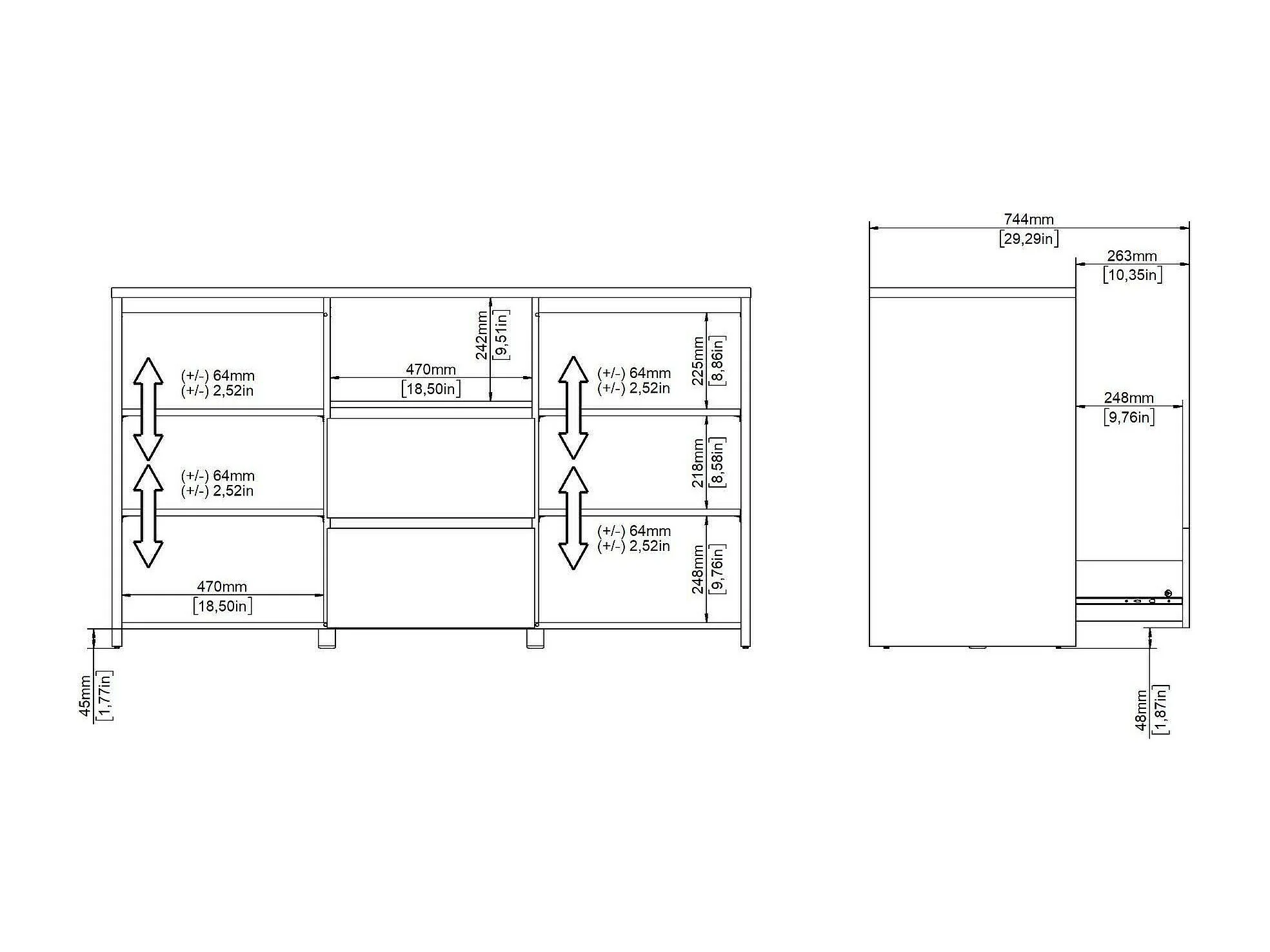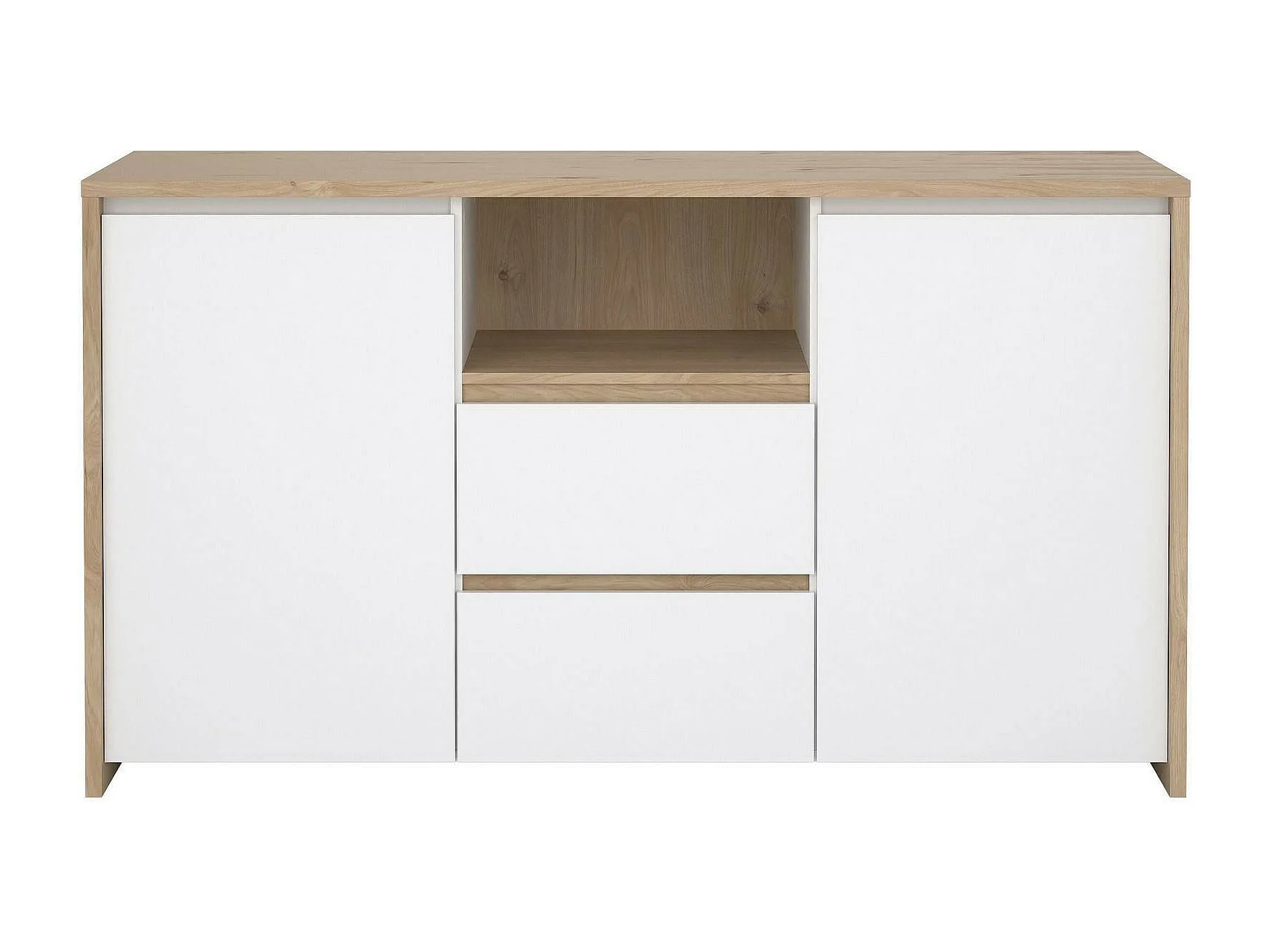Buffet Dsalva, Buffet du salon, Commode de salon, Garde-manger de cuisine, 149x48 h84 cm, Chêne clair et Blanc
