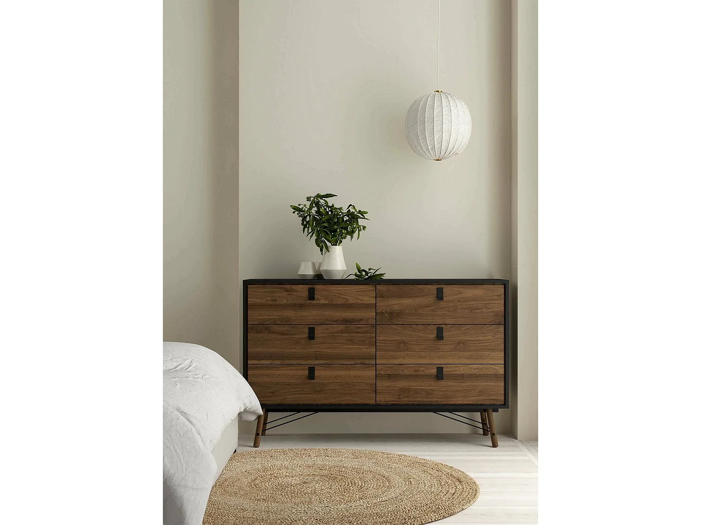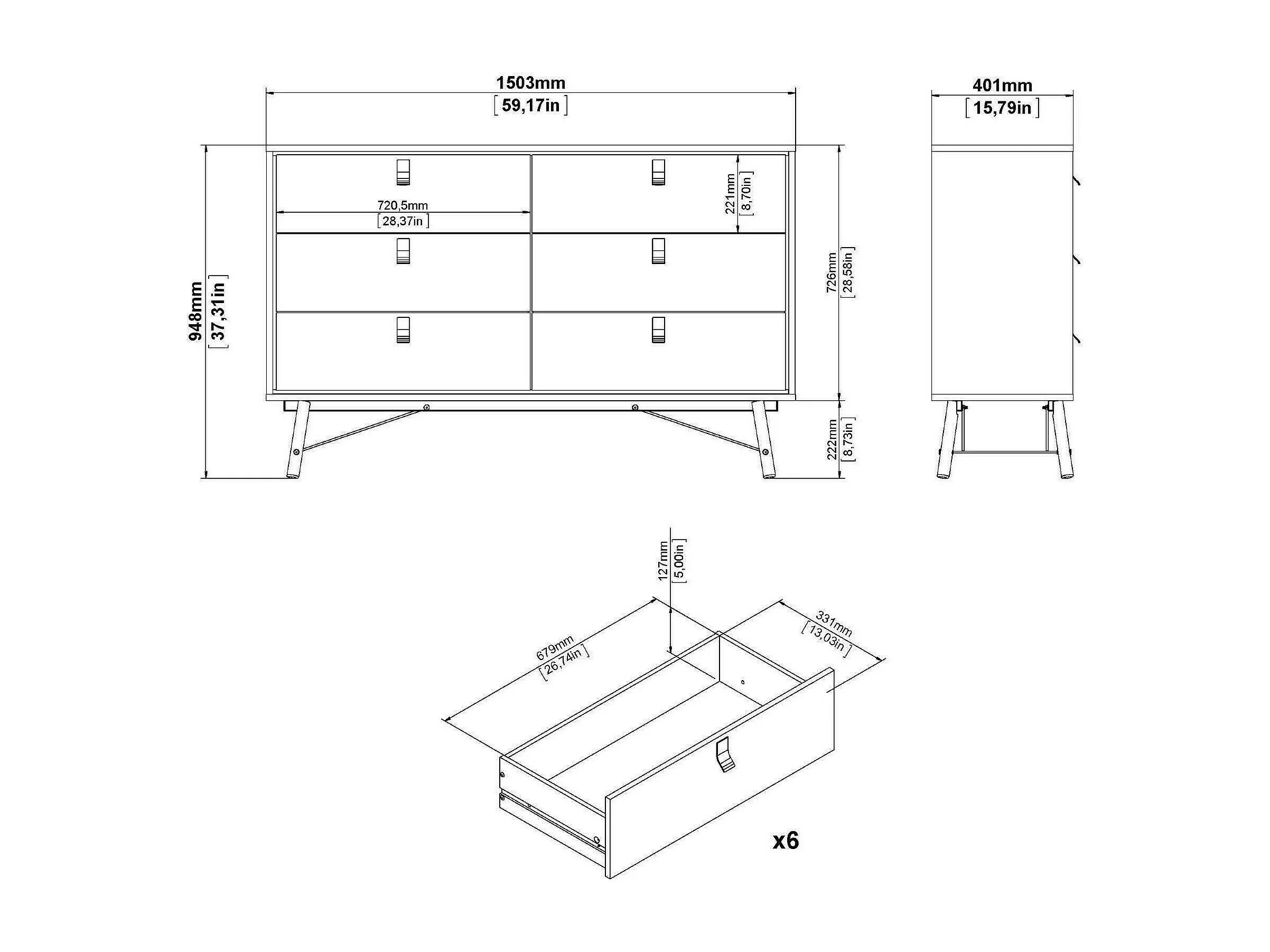 Buffet Dsalvett, Buffet du salon, Commode de salon, Garde-manger de cuisine, 150x40 h95 cm, Noir et Noyer