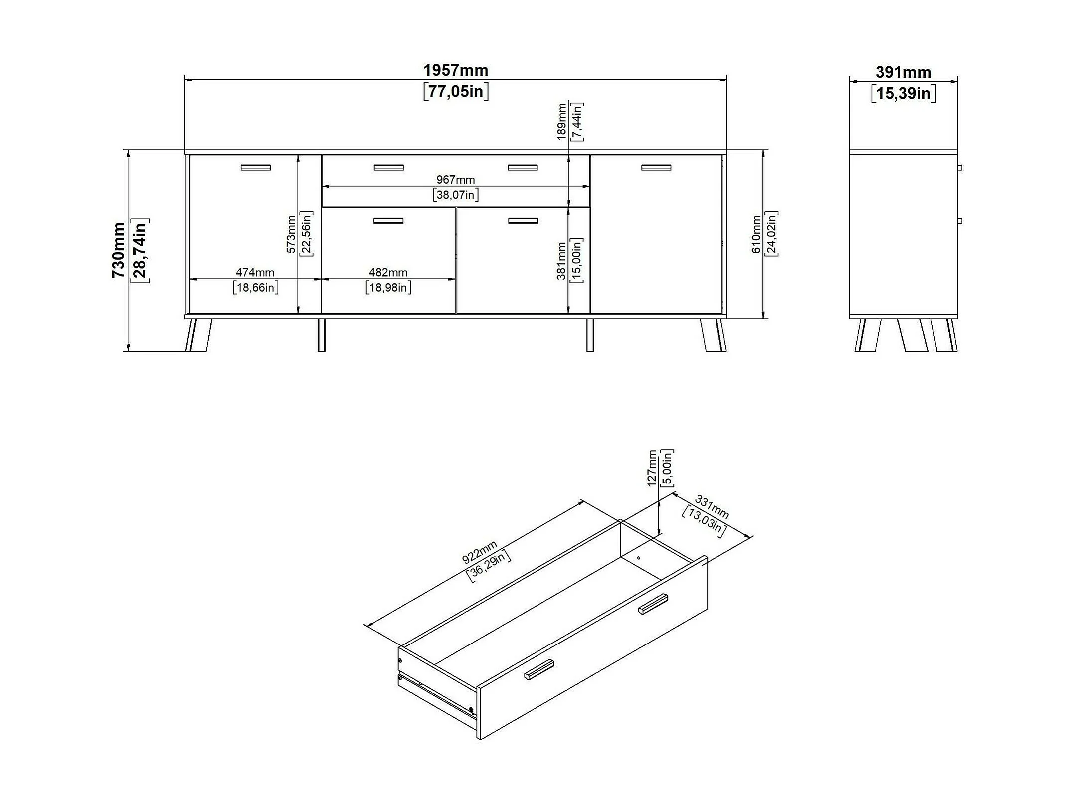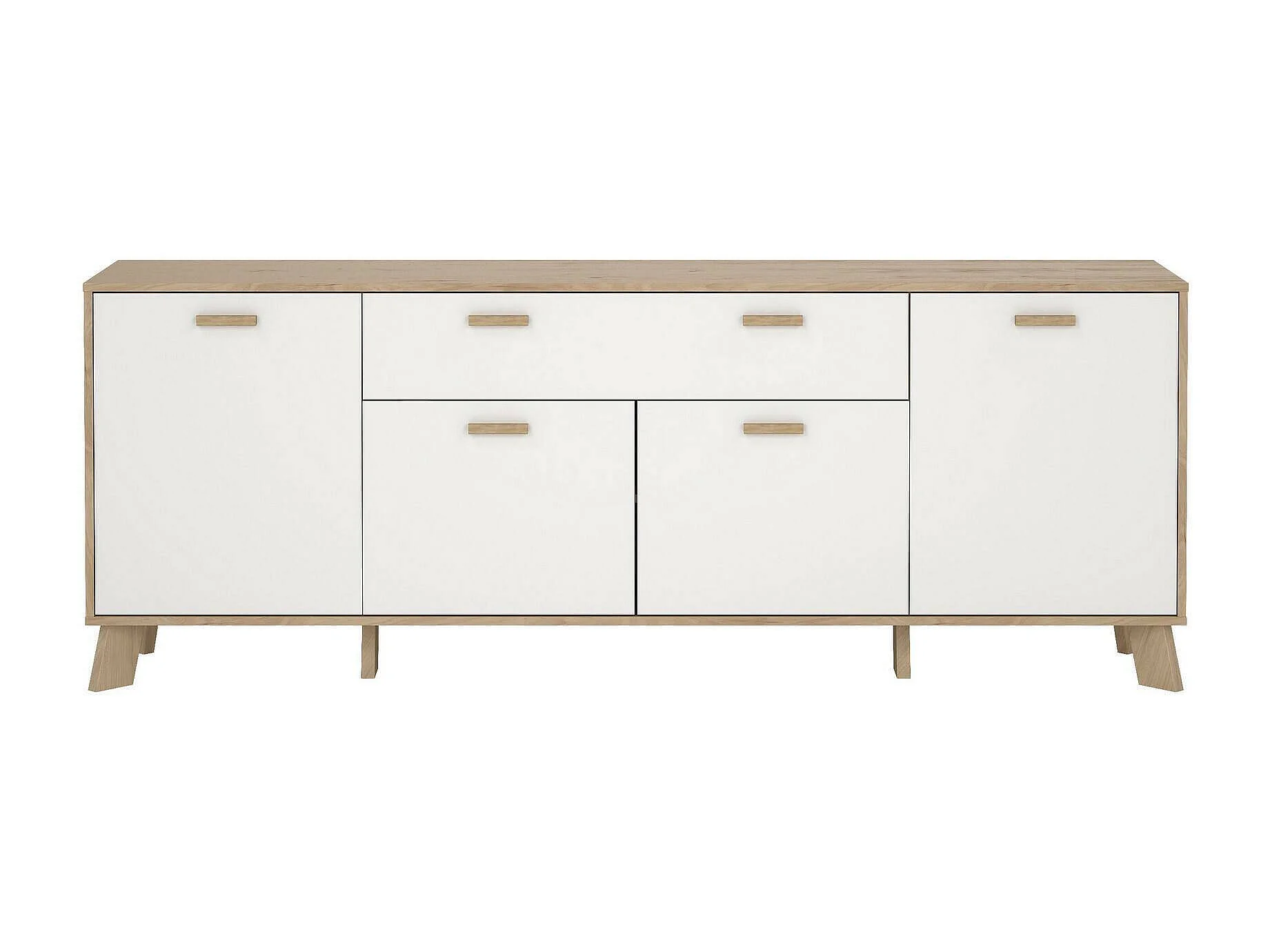 Buffet Dsalvion, Buffet du salon, Commode de salon, Garde-manger de cuisine, 196x39 h73 cm, Chêne clair et Blanc