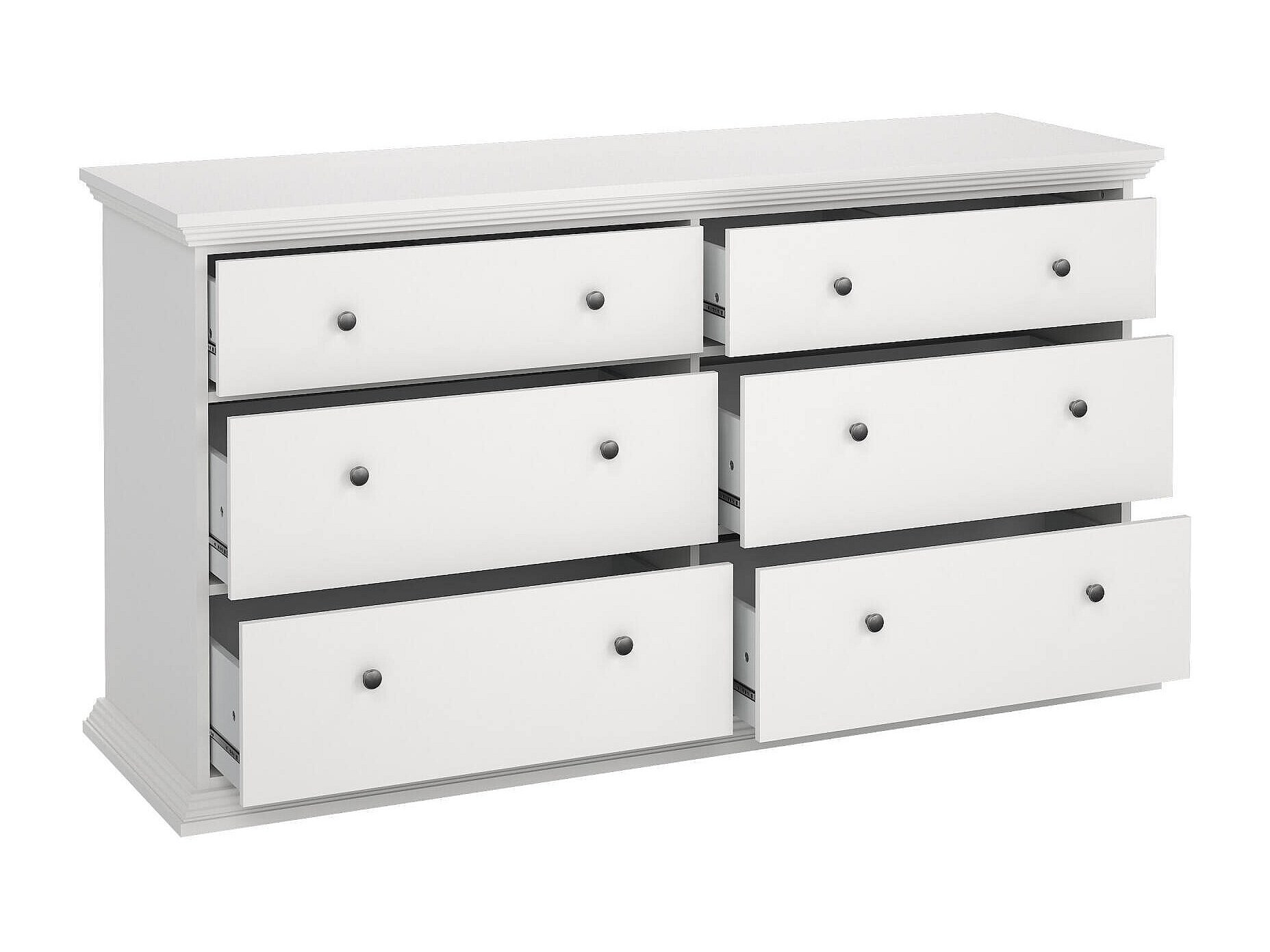 Commode Mauro, Commode 6 tiroirs, Commode de chambre, 100% Made in Italy, Blanc brillant, 155x40h82 cm
