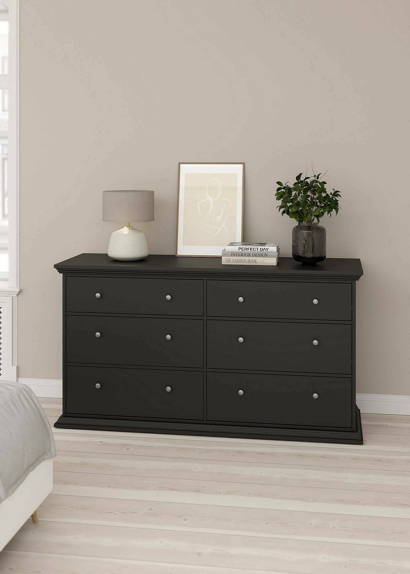 Commode avec 6 tiroirs - 120 x 40 x 77 cm - Panneaux de particules - pour salon, chambre - Couleur noir