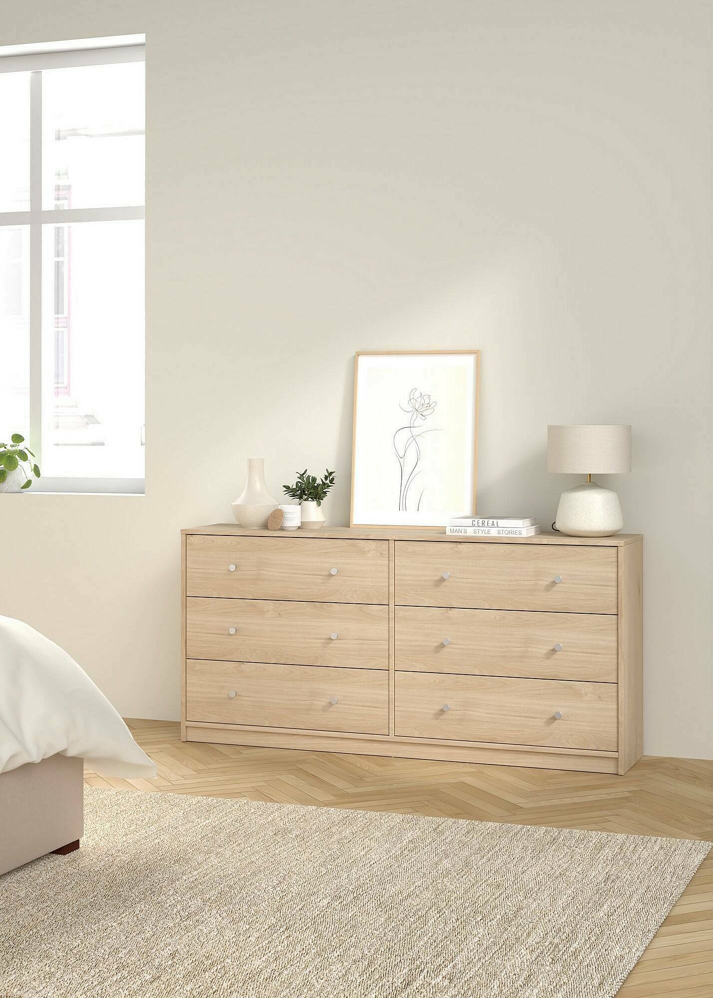 Commode avec 6 tiroirs - 120 x 40 x 85 cm - Pièds en métal + Panneaux aggloméré - pour salon, chambre - Blanc crème