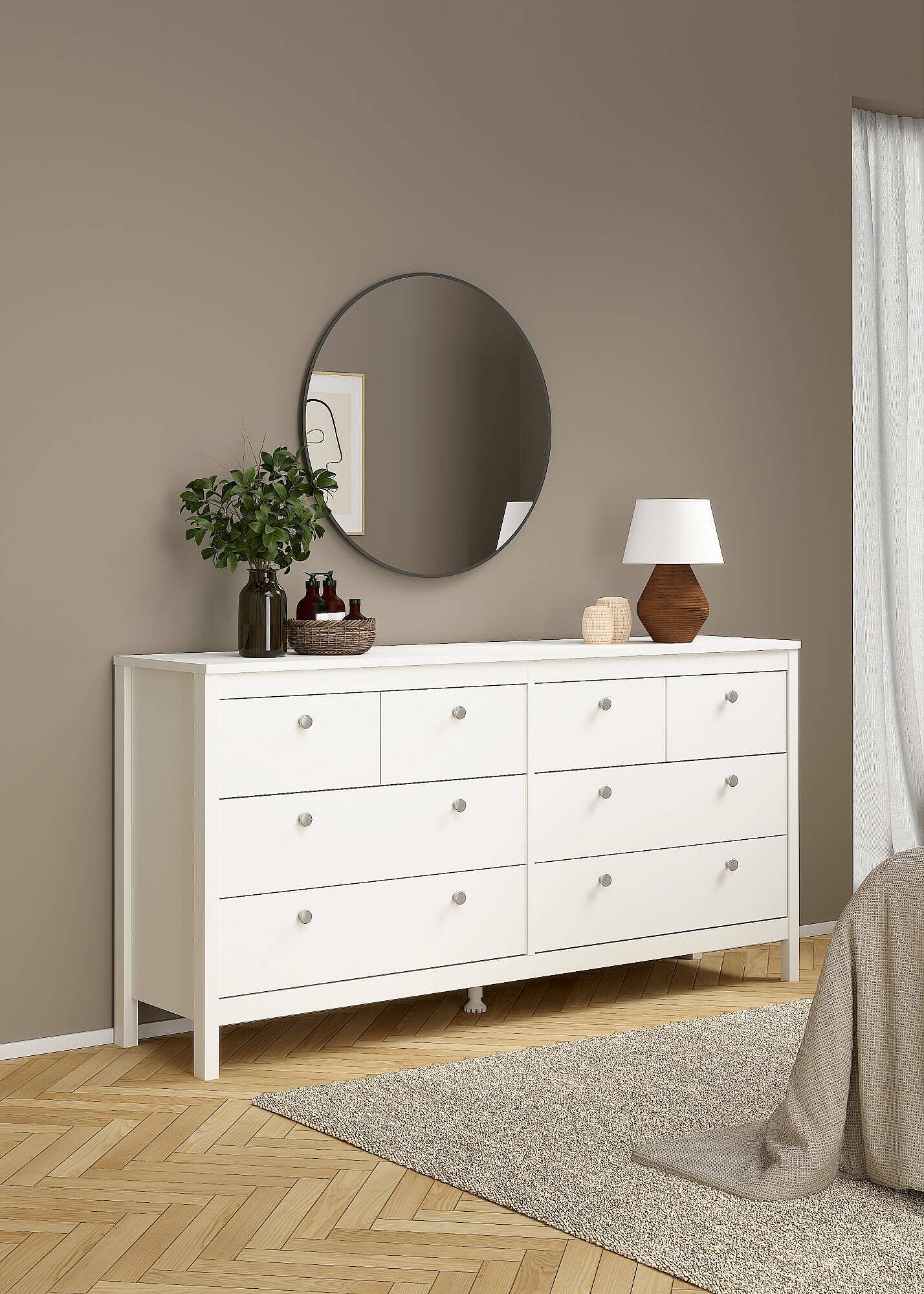 Commode Mauro, Commode 6 tiroirs, Commode de chambre, 100% Made in Italy, Blanc brillant, 155x40h82 cm