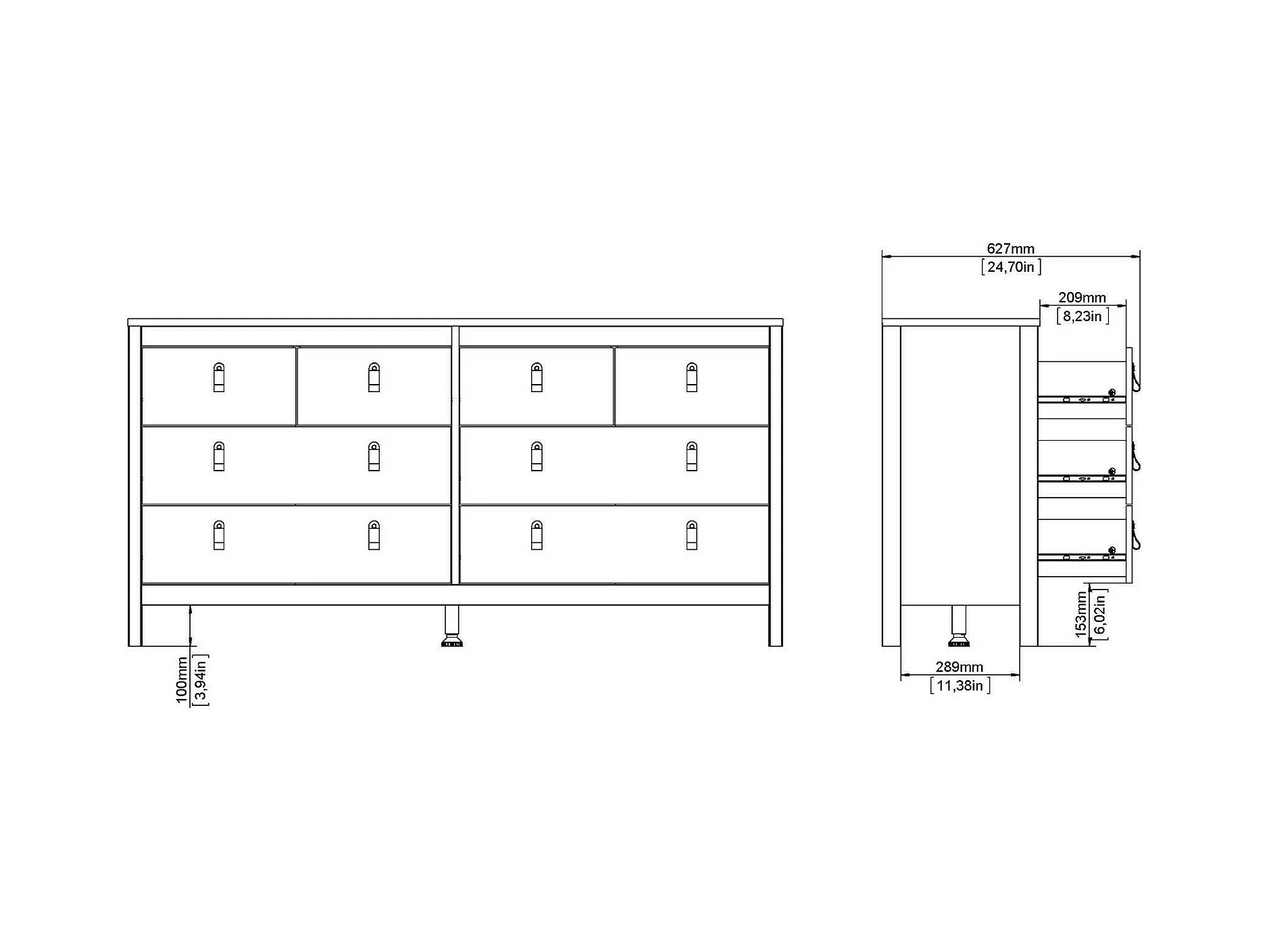 Buffet Drossitt, Buffet du salon, Commode de salon, Garde-manger de cuisine, 102x40 h95 cm, Chêne clair
