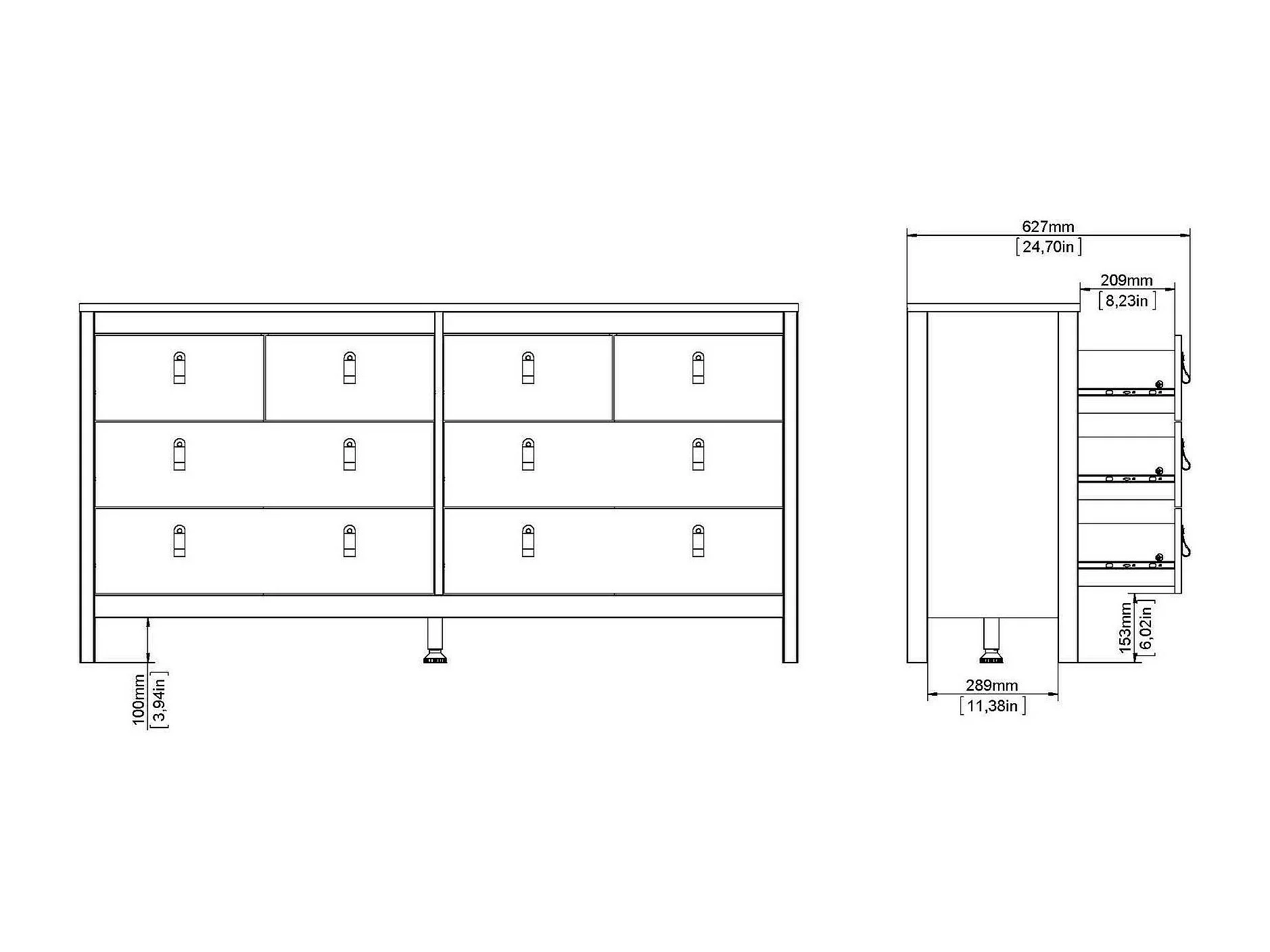Commode CHELSEA 6 tiroirs - 154 cm x 42,2 x 79,9 - chêne artisan
