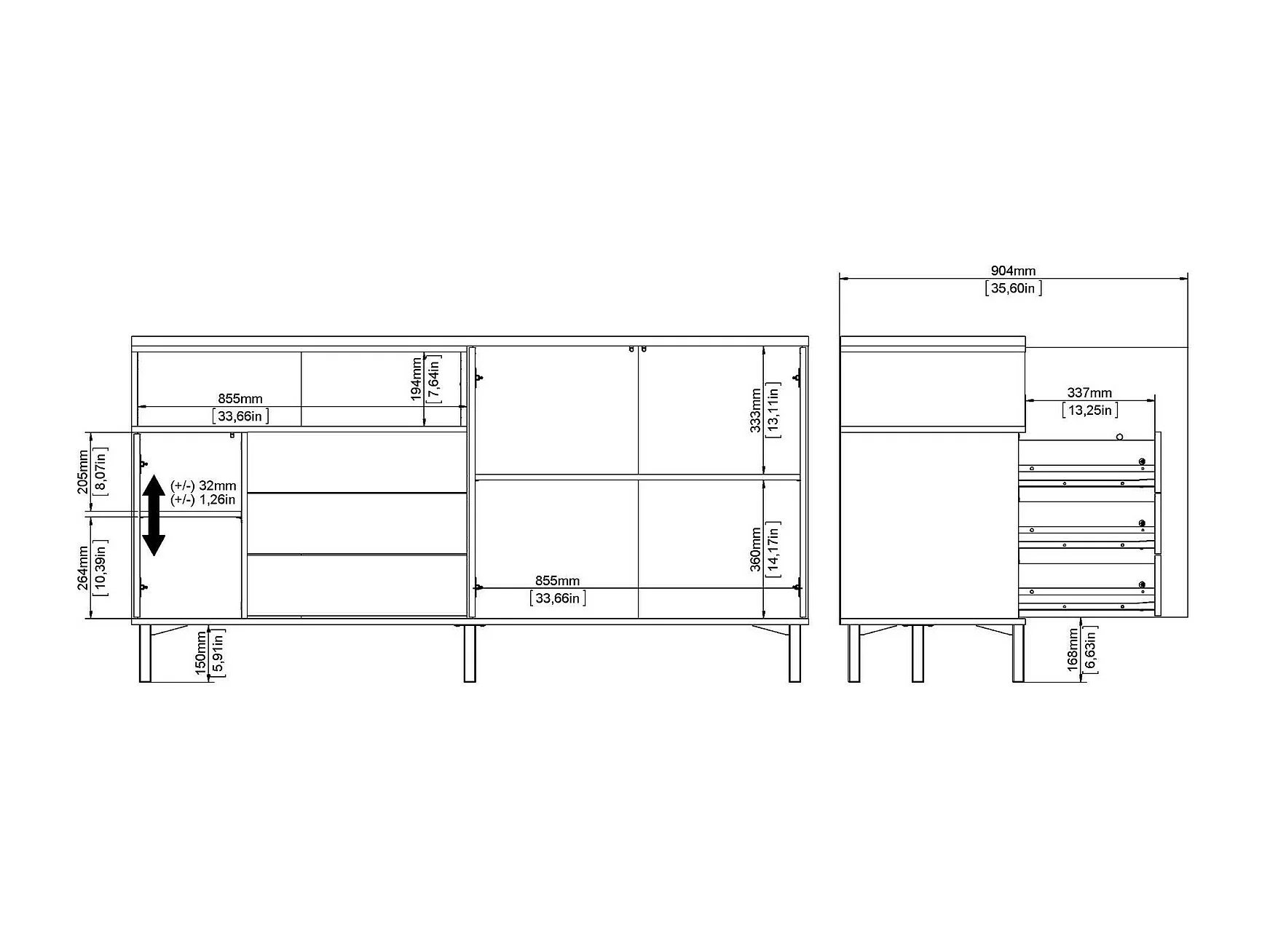 Buffet Dsardin, Buffet du salon, Commode de salon, Garde-manger de cuisine, 176x48 h90 cm, Blanc et chêne