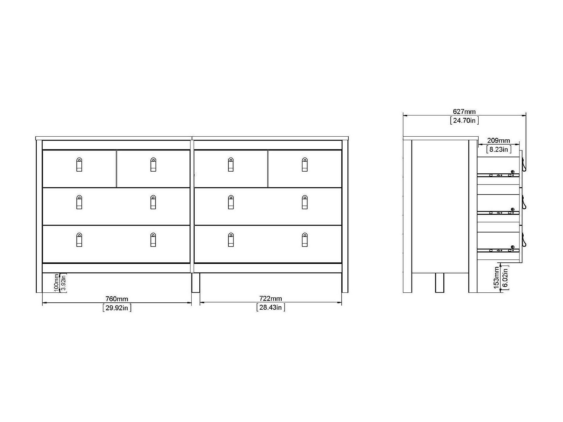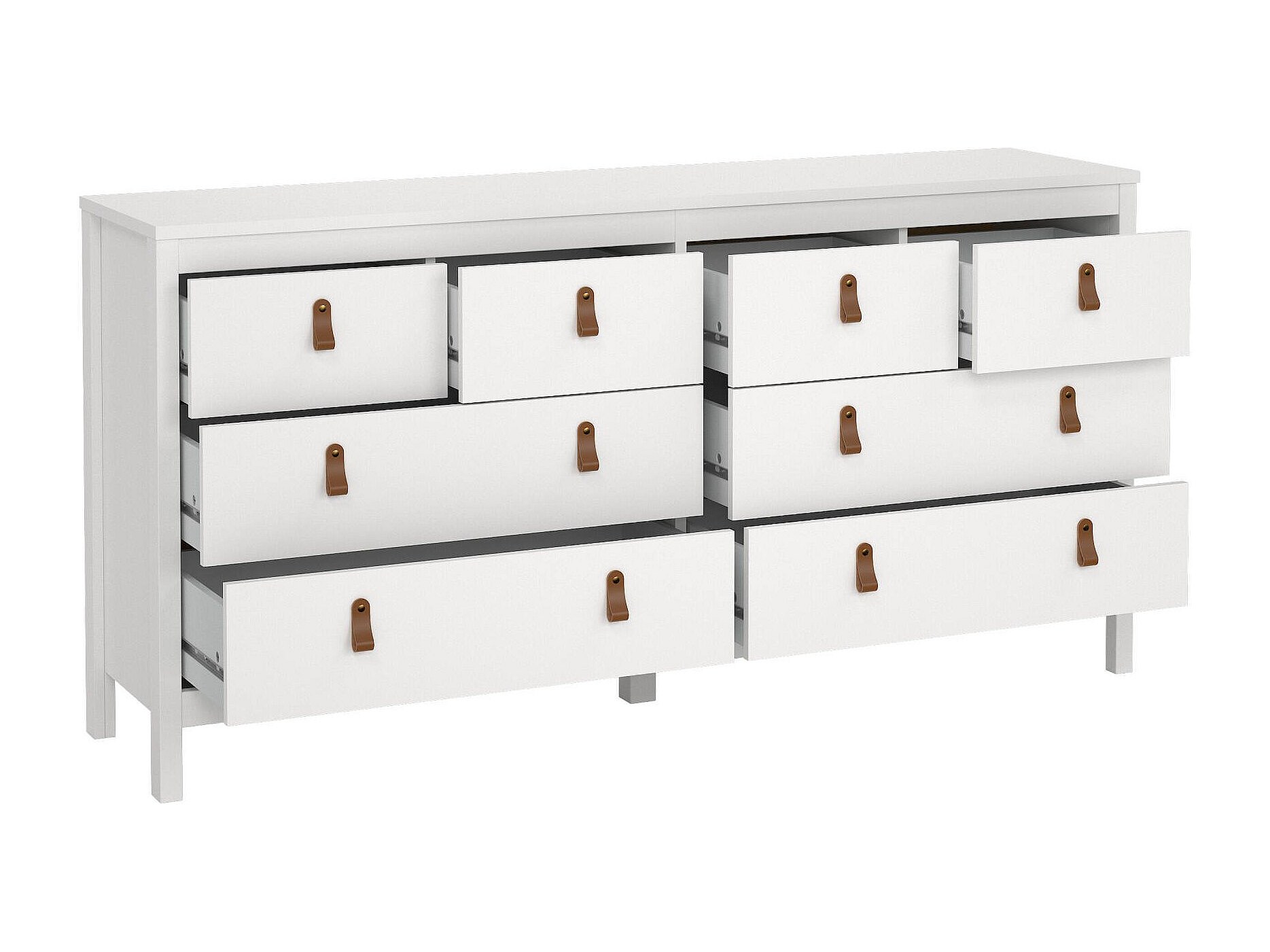 Napoli commode avec 8 tiroirs, blanc et chêne.