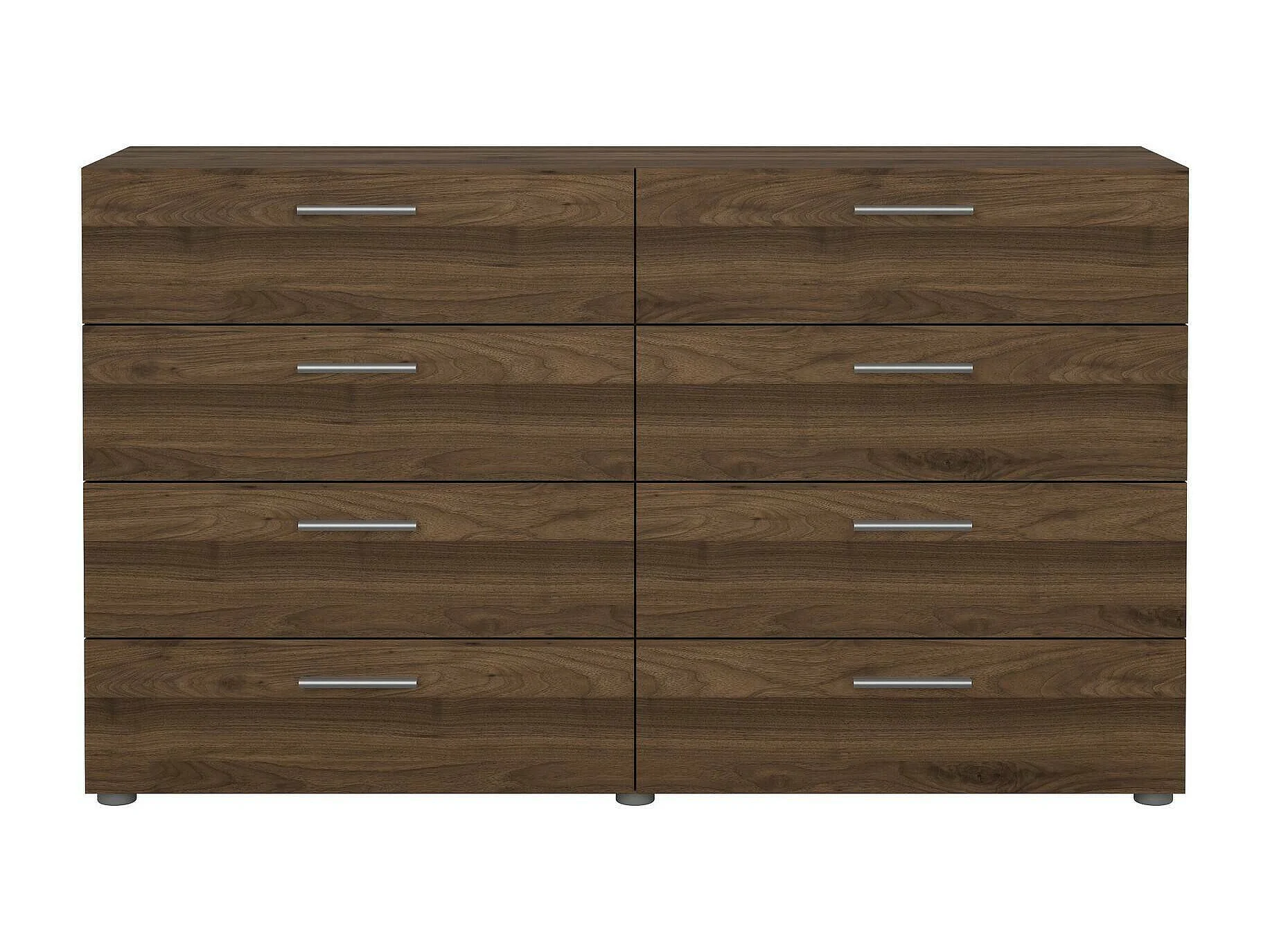 Petra Commode 8 tiroirs, finition chêne structuré et blanc brillant.