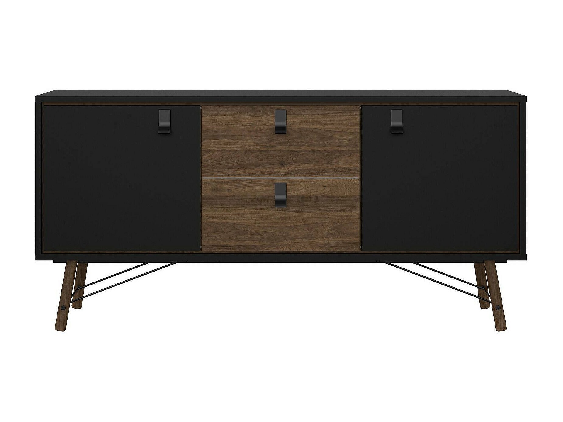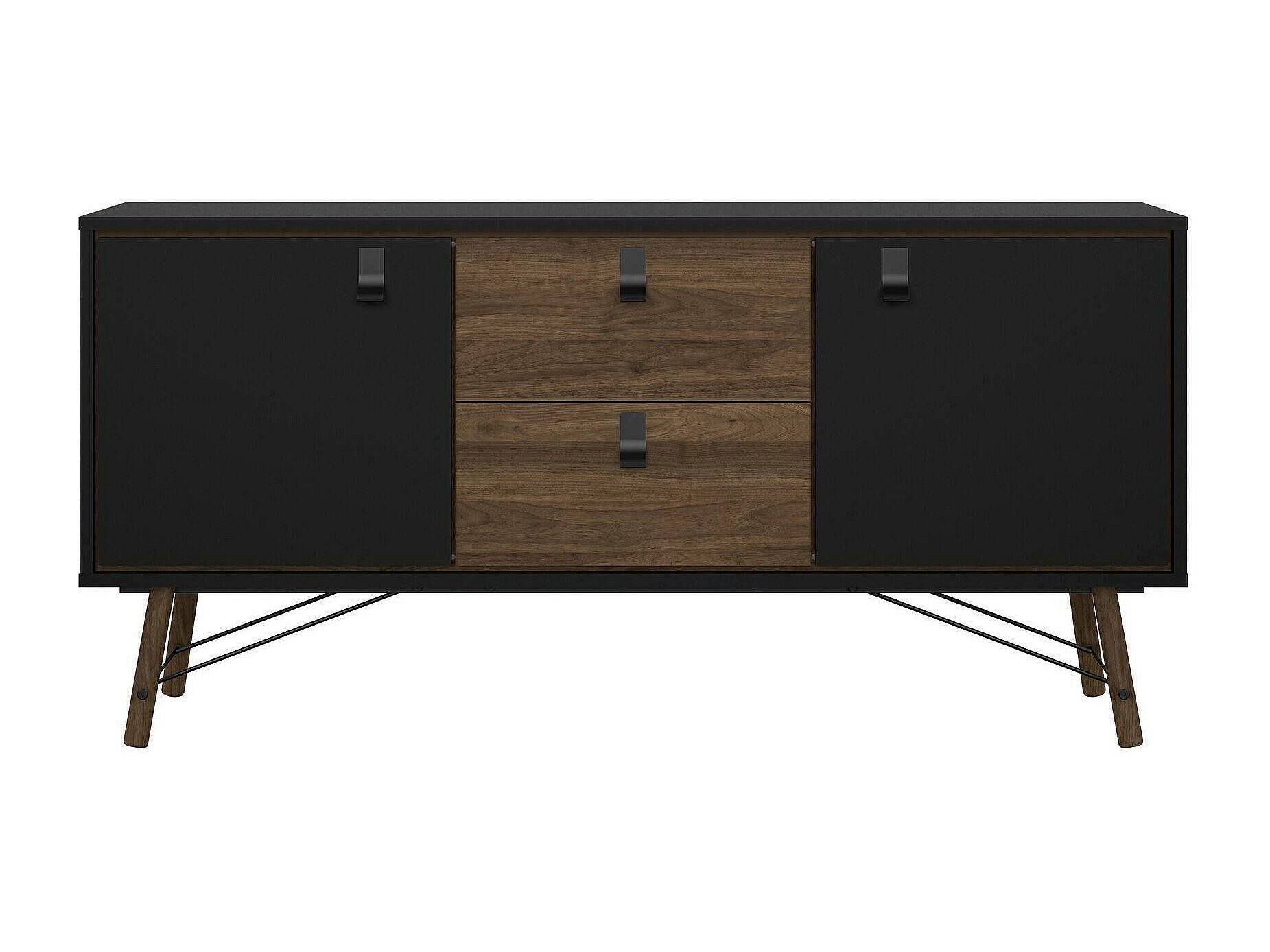 Buffet Dsavold, Buffet du salon, Commode de salon, Garde-manger de cuisine, 150x40 h72 cm, Noir et Noyer