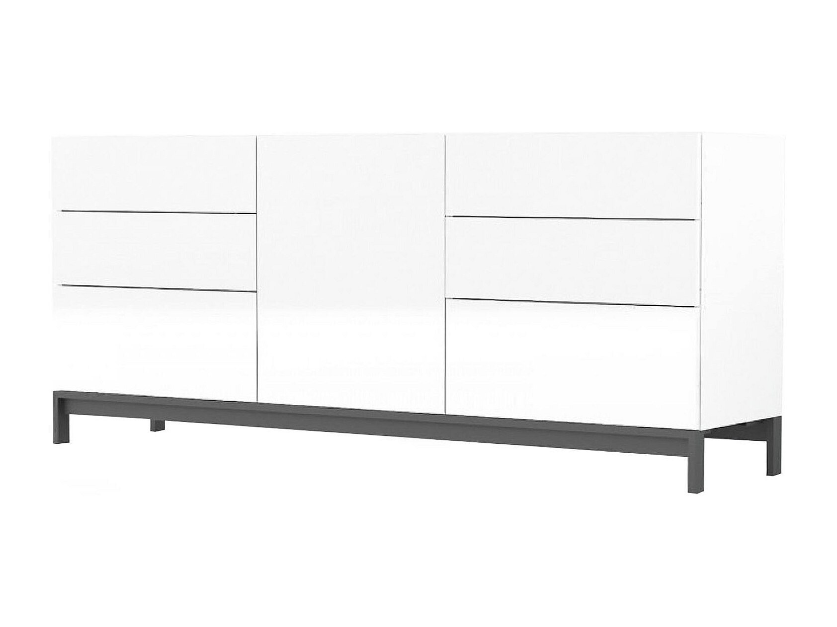 Buffet Livio, Buffet de cuisine, Buffet de salon, 100% Made in Italy, 210x40h80 cm, Blanc brillant et ardoise