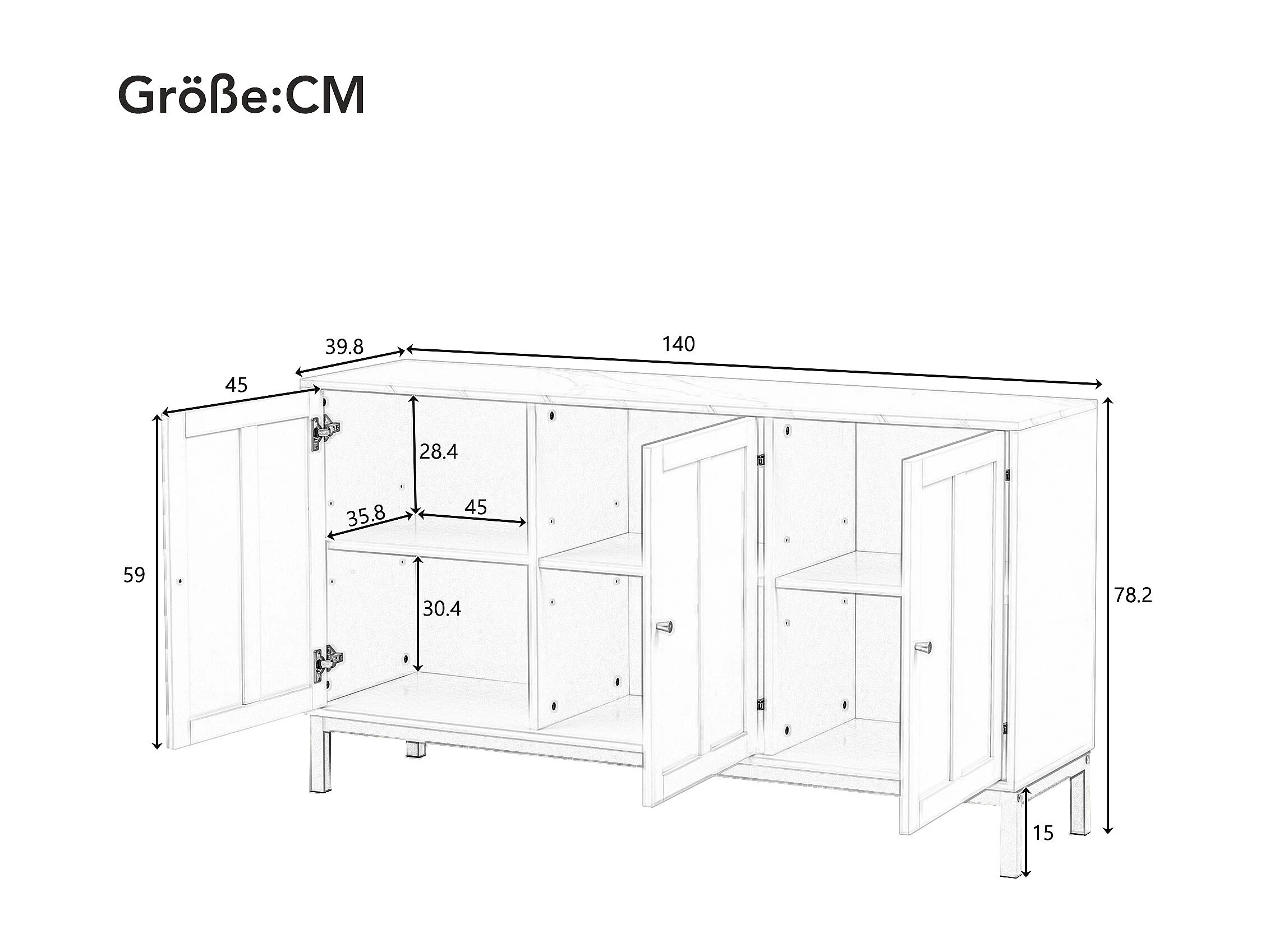 Buffet avec poignées et pieds dorés, 4 portes et 4 tiroirs, étagères amovibles, grand espace de rangement, idéal salon et salle à manger
