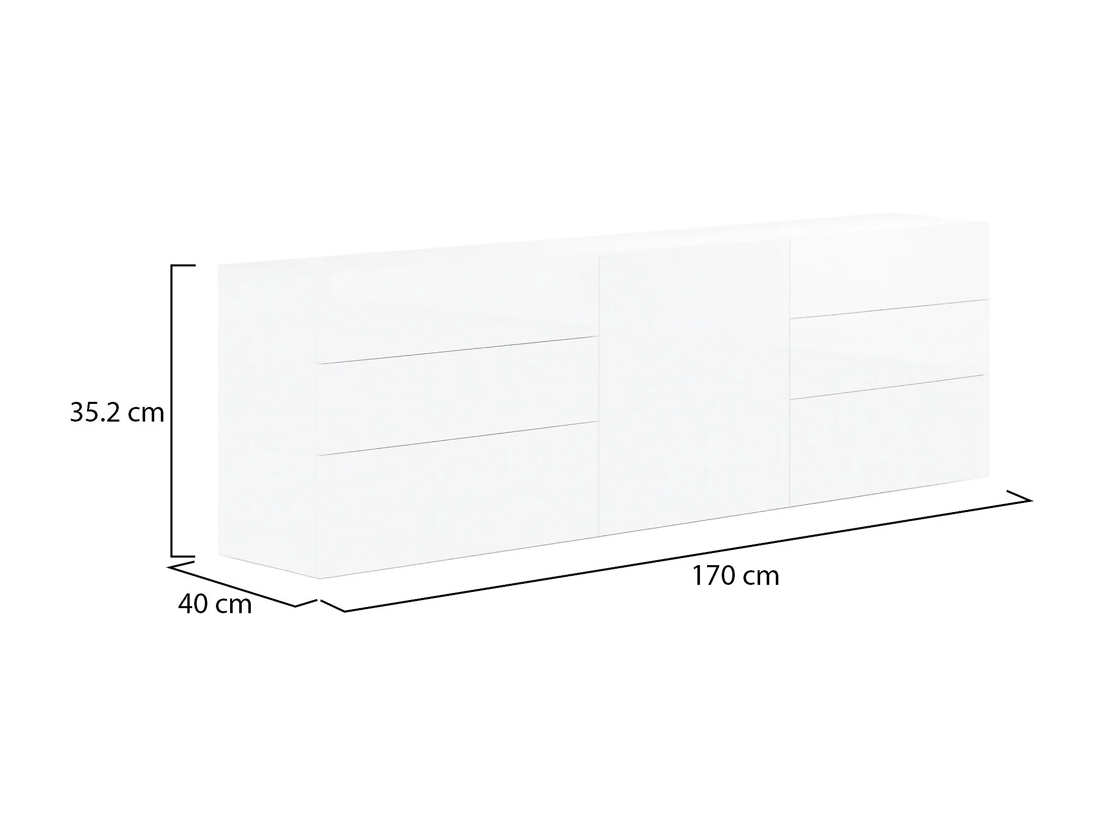 Buffet Elio, Buffet de cuisine avec 1 porte et 6 tiroirs, Buffet de salon, Buffet de cuisine, 100% Made in Italy, 170x40h35 cm, Blanc brillant