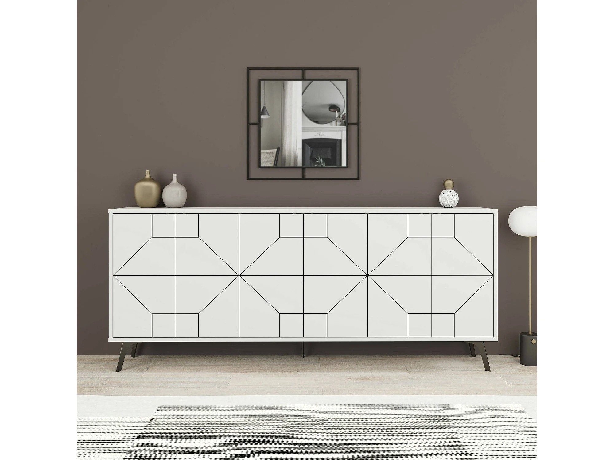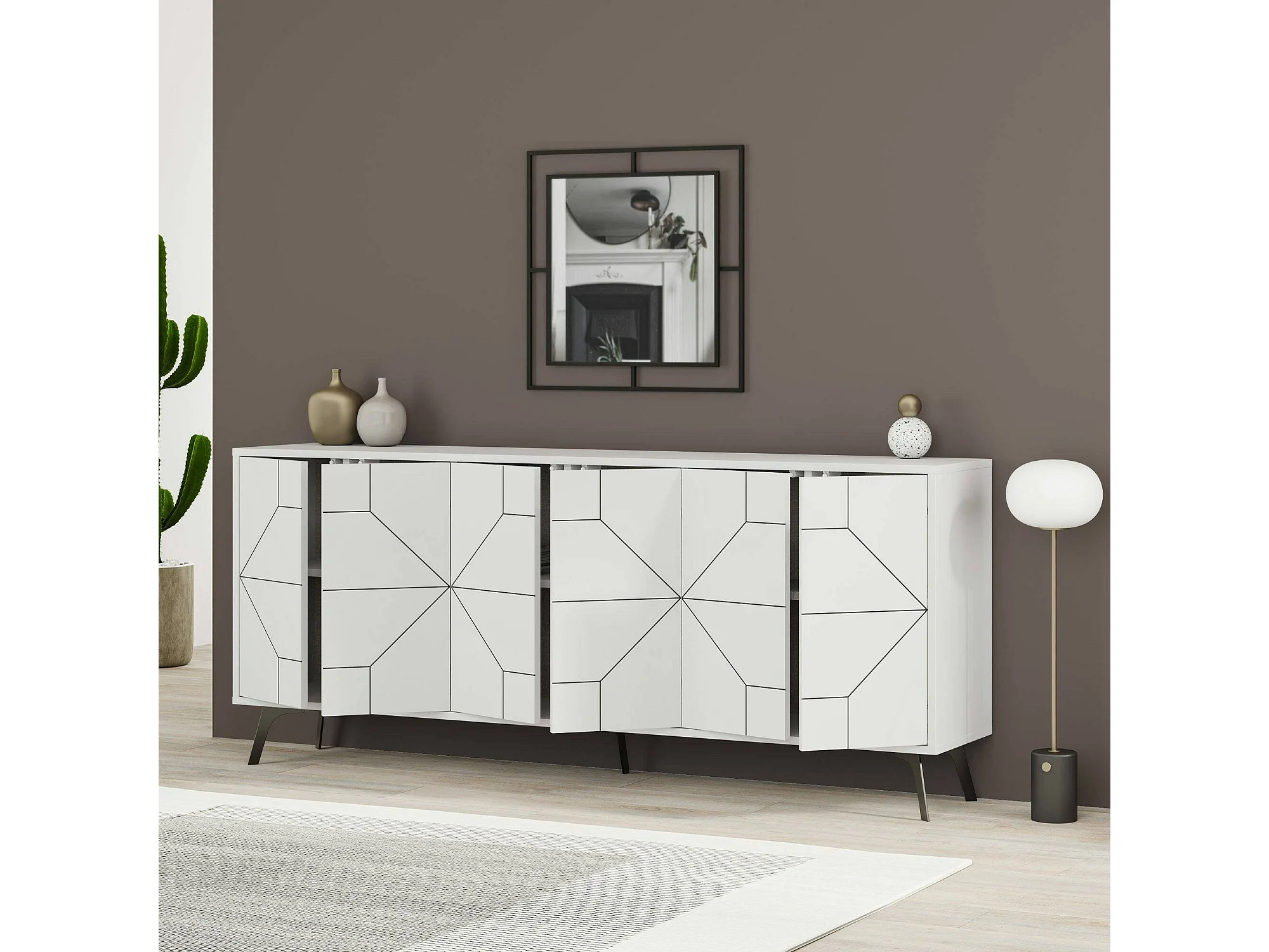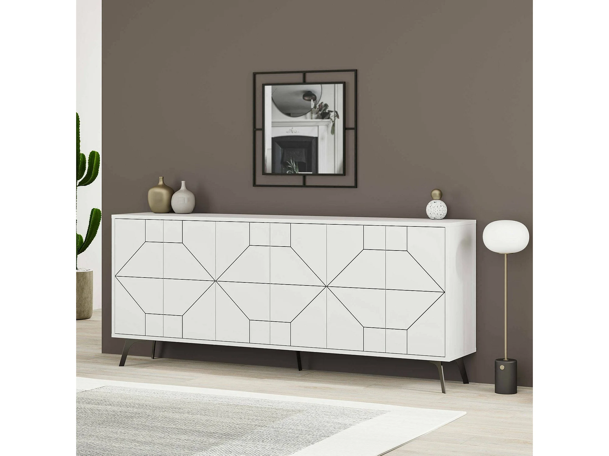 Buffet Elysium, Buffet du salon, Commode de salon, Garde-manger de cuisine, 184x35h77 cm, Blanc